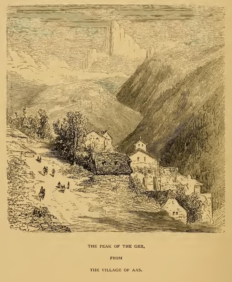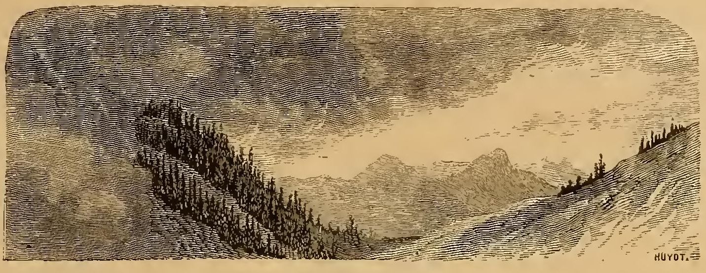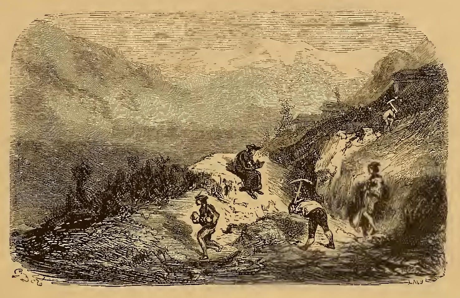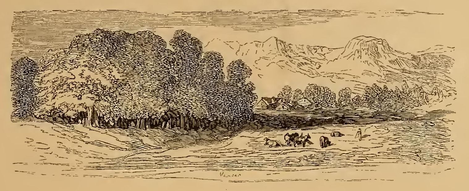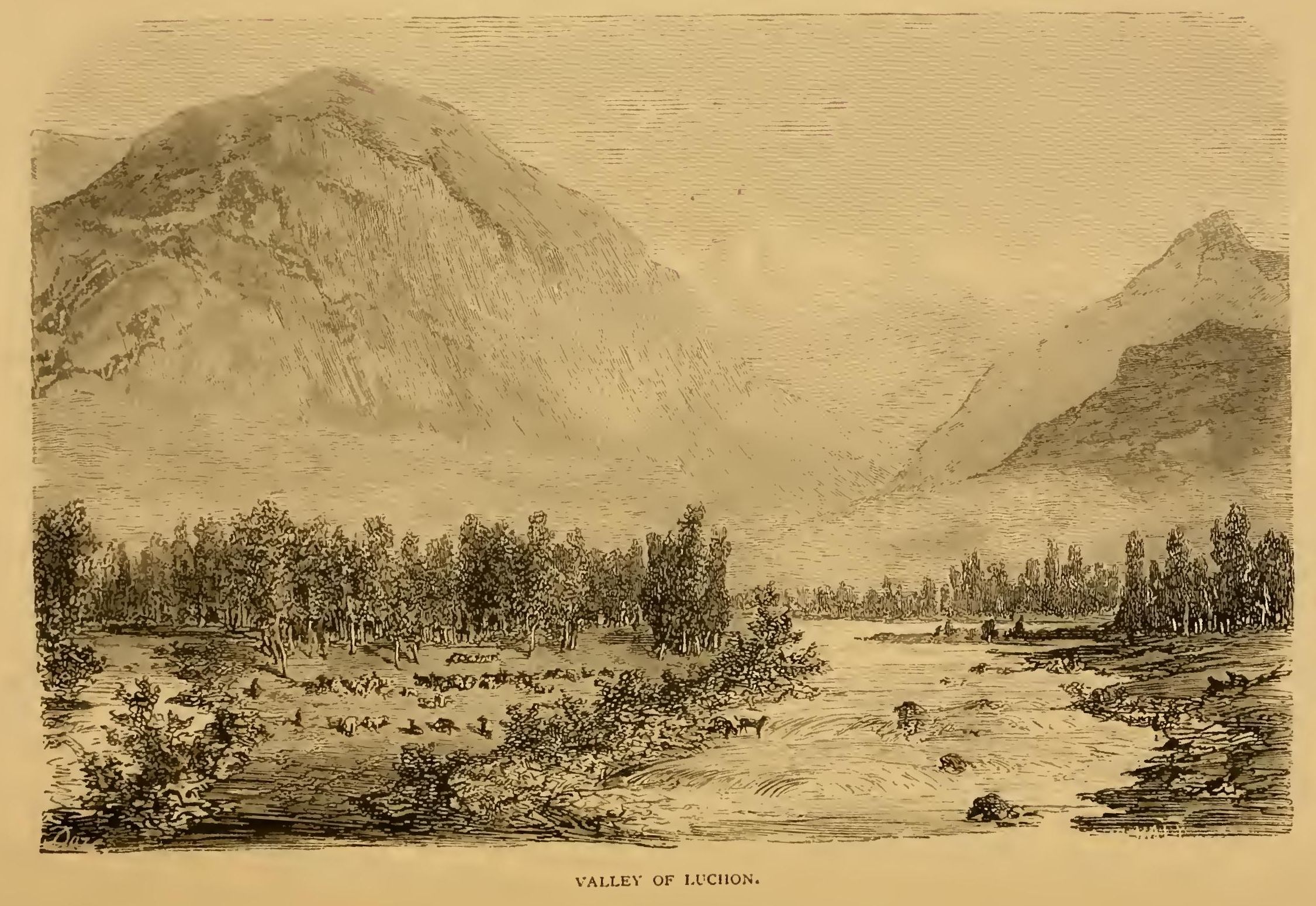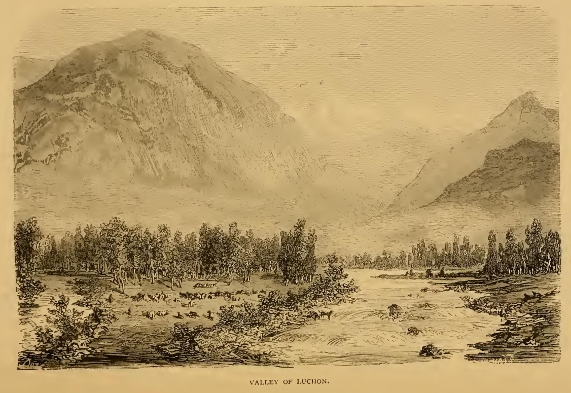 When, after a two months’ sojourn in the Pyrenees, you leave Luchon, and see the flat country near Martres, you are delighted and breathe freely: you were tired, without knowing it, of those eternal barriers that shut in the horizon; you needed space. You felt that the air and light were usurped by those monstrous protuberances, and that you were not in a land of men, but in a land of mountains. Unknown to yourself you longed for a real champaign, free and broad. That of Martres is as level as a sheet of water, populous, fertile, stocked with good plants, well cultivated, convenient for life, a realm of abundance and security. [510]There is no doubt that a field of brown earth, broadly ploughed with deep furrows, is a noble sight, and that the labor and happiness of civilized man are as pleasant to behold as the ruggedness of the untamed rocks.