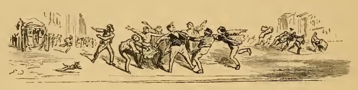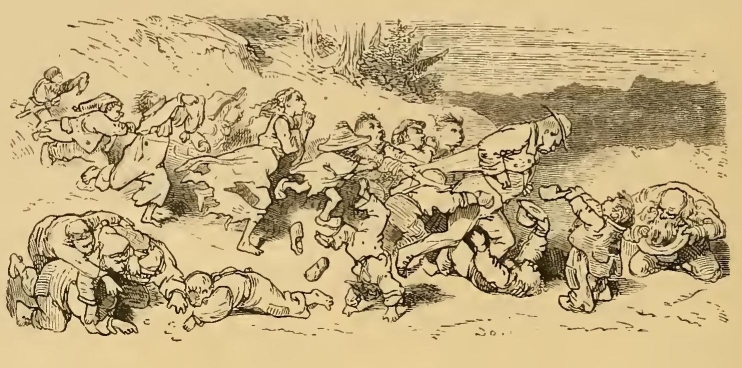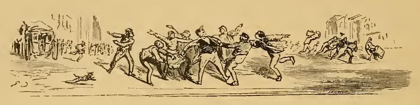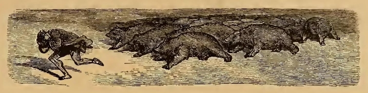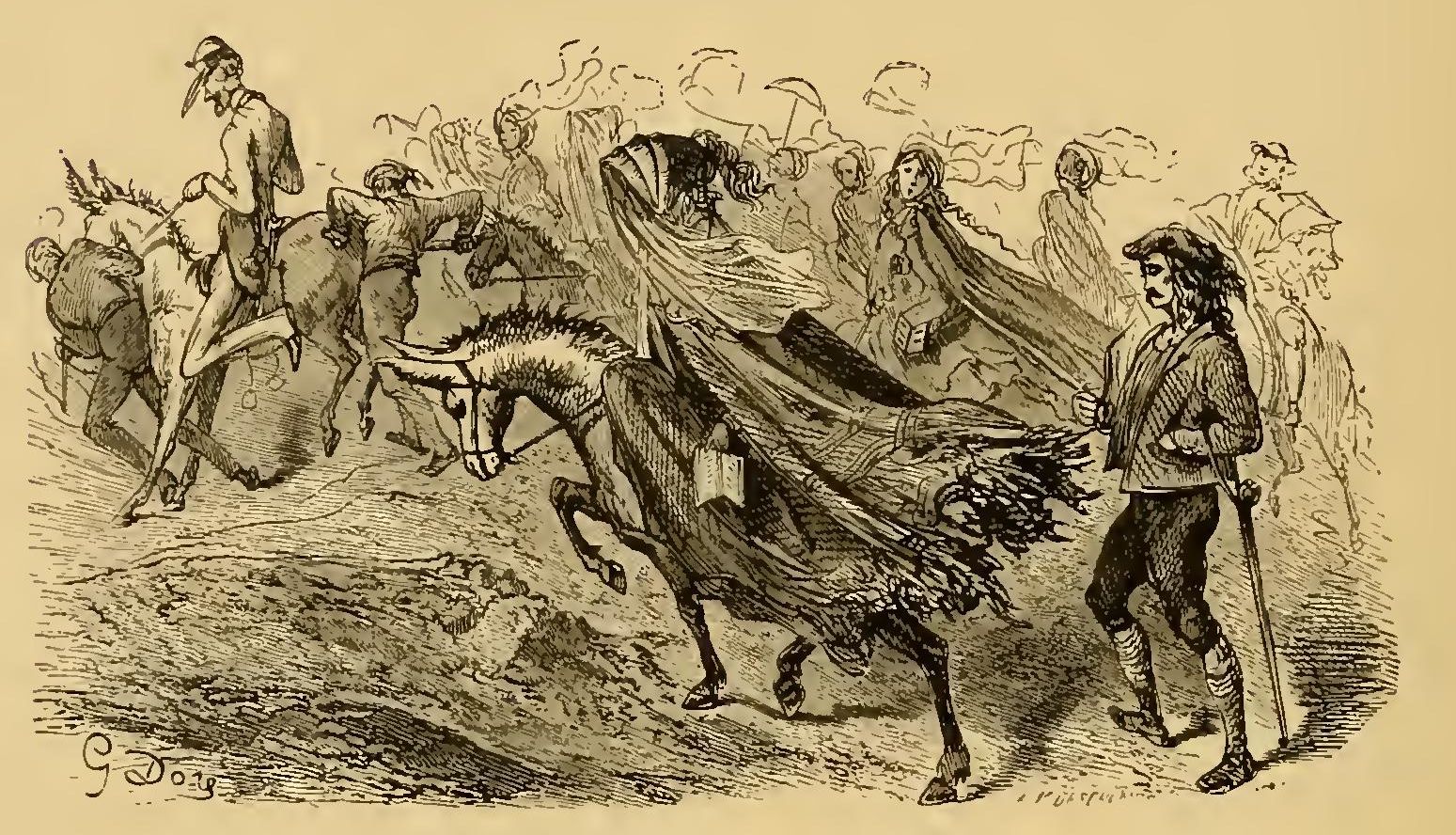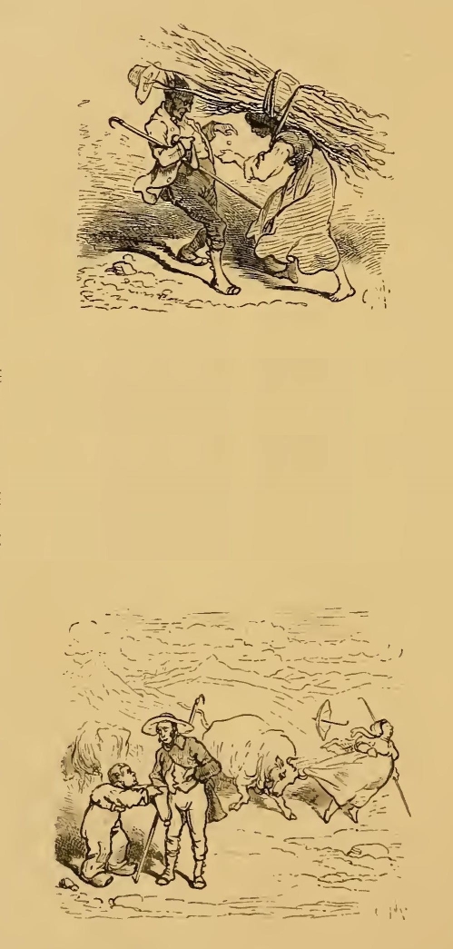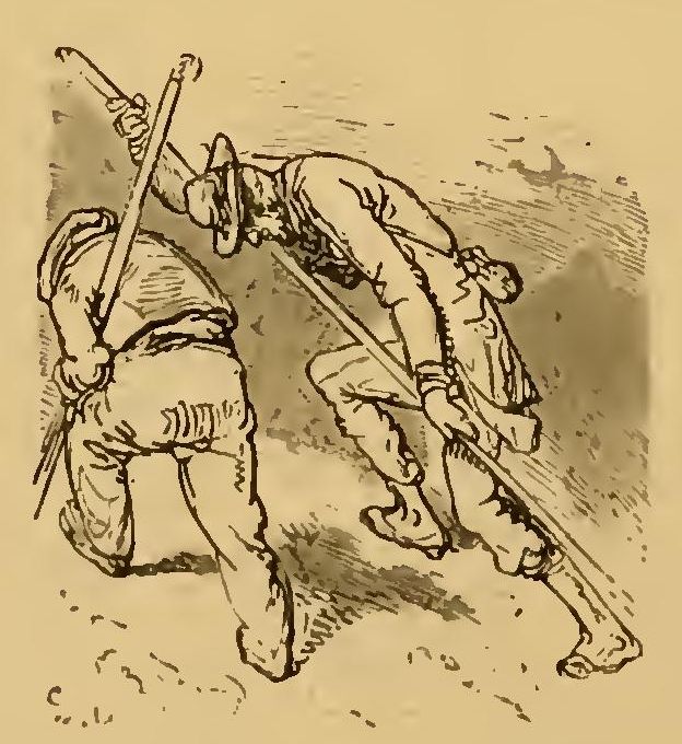But the Bayonnais, who were less numerous and less adroit, could make no stand, and at the end of half an hour there remained only a dozen of them, driven into a corner near a little cellar where were kept the jugs and bottles. In order the sooner to reduce these, the Basques gathered together the pikes, and began driving through this heap of men; [032]and the Bayonnais, as anybody will on feeling an iron point prick through his skin, stepped back and rolled together into the cellar. Just at this moment the torches went out, and the Basques, in order not to wound each other, dressed the whole armful of pikes, and harpooned at random forward into the cellar during more than a quarter of an hour, so as to make sure that no Bayonnais remained alive; and thus, when all was become tranquil, and the torches were relighted, and they looked in, they saw that the cellar resembled a pork-butcher’s chopping-block, the bodies being cut in twenty places, and separated from their heads, and the limbs being confusedly thrown together, till only salt was wanting to make a salting-tub of the place.