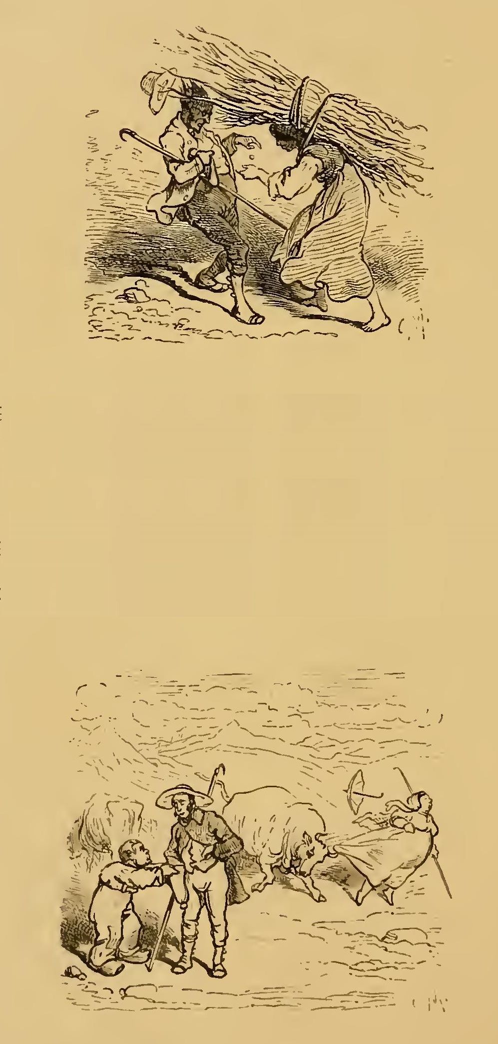 The coach starts very early in the morning and climbs a long ascent under the gray brightness of the dawn. The peasants come in troops; the women have five or six bottles of milk on the head, in a basket. Oxen, with lowered brows, drag carts as primitive and Gallic as at-Pau. The children, in brown berets, run in the dust, alongside their mothers. The village is coming to nourish the city.