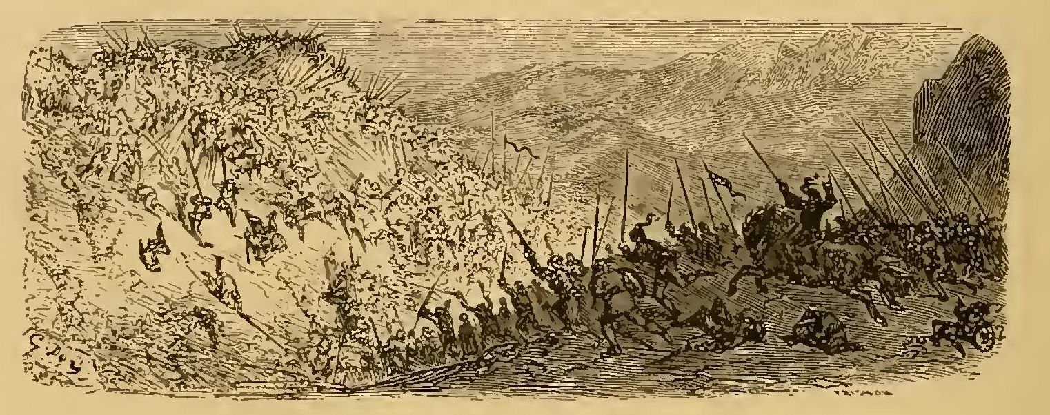 LIST OF ILLUSTRATIONS. THE PINES.....................................003 THE RIVER AFTER A STORM.......................004 THE PINES NEAR ROYAN..........................007 THE BROAD RIVER...............................009 BORDEAUX......................................010 TAIL-PIECE....................................011 LES LANDES....................................012 LES LANDES (SECOND VIEW)......................014 TAIL-PIECE....................................016 A STREET IN BAYONNE...........................018 BAYONNE HARBOR................................019 PÉ DE PUYANE..................................022 THE BURNING CASTLE............................025 HEAD-PIECE....................................035 THE PIERCED ROCK..............................036 TAIL-PIECE....................................039 THE VILLA EUGENIE.............................040 CLIFFS NEAR SAINT-JEAN-DE-LUZ.................042 COAST NEAR SAINT-JEAN-DE-LUZ..................045 TAIL-PIECE....................................046 LOUIS XIV. AND ANNE OF AUSTRIA................047 THE POLITENESS OF TO-DAY......................048 THE POLITENESS OF OTHER DAYS..................049 “JE VOUS LE RENDS.”...........................053 A SPLENDID CREATION...........................054 DAX...........................................057 CASTLE OF ORTHEZ..............................061 FROISSART.....................................062 “THAT STOUT CORNIFIC DOCTOR”..................066 COUNT DE FOIX AT SUPPER.......................068 THE COUNT DE FOIX’S HOSPITALITY...............071 A FRENCH “CONDUCTOR”..........................072 “FOR HEAVEN’S SAKE DO NOT KILL GASTON”........074 GASTON IN THE TOWER OF ORTHEZ.................076 COUNT DE FOIX.................................077 TAILPIECE.....................................078 CHAPTER-HEADING...............................079 THE VALLEY OF OSSAU...........................082 A DESTRUCTION OF SENTIMENT....................084 AVENUE OF THE CHATEAU AT PAU..................085 ARMS OF HENRY IV..............................087 COURT OF THE CHATEAU AT PAU...................088 PAU...........................................090 JEANNE D’ALBRET...............................092 A MORNING’S SPORT.............................094 IN THE STREETS Of EAUSE.......................097 SULLY.........................................100 MARGUERITE OK NAVARRE.........................104 ENTERTAINING THE LADIES.......................106 THE PARK AT PAU...............................108 PROTRACTING A REVERIE.........................109 PIC DU MIDI OSSAU.............................111 AN EXHORTATION................................113 NEAR GAN......................................114 THE VALLEY OK OSSAU...........................115 ROAD TO EAUX BONNES...........................116 THE PROMENADE.................................117 NEAR EAUX BONNES..............................118 A RAINY DAY AT EAUX BONNES....................119 TAKING THE WATERS.............................121 TAKING THE WATERS (SECOND VIEW)...............122 “MUSIC HAITI CHARMS”..........................123 A NATIVE GENIUS...............................125 DOLCE FAR NIENTE.............................126 OUR AMATEURS..................................127 THE BEECHES...................................128 THE SUMMIT OF THE GER.........................131 TAIL-PIECE....................................133 THE ART OK PLEASURE...........................134 THE “JEU DU CANARD”...........................135 PLEASURE WITHOUT THE ART......................137 “A LANDSCAPE”.................................138 EXCELSIOR.....................................139 THE VALENTIN FALLS AT DISCOO..................140 CASCADE OF THE VALENTIN.......................142 PATH TO THE GORGE OF THE SERPENT..............144 THE GAVE......................................146 A DISTANT TALE................................148 SOLITUDE......................................150 A WATER POWER.................................152 THE MIGHTY STREAM.............................155 'PAPI’........................................157 A TOO DISTANT LANDSCAPE.......................159 A VANTAGE-POINT...............................161 THE PEAKS.....................................163 ABOVE GABAS...................................166 “TO HIM WHO, IN LOVE OF NATURE”...............168 AMONG THE CLOUDS..............................169 ROUTE TO EAUX CHAUDES.........................170 ON THE ROAD TO EAUX CHAUDES...................171 “A WILD AND SUNNY NEST”.......................174 “COLD AND SAD”................................175 NEAR EAUX CHAUDES.............................177 “EGYPT BEFORE THE COMING OF WARRIORS”.........182 SOMEBODY’S JOVE...............................185 THE INHABITANTS...............................186 FIDDLERS THREE................................187 “A SORT OF ROUNDELAY”.........................189 “THEY CLUMSILY BENT THE KNEE”.................192 “FIVE OR SIX OLD WOMEN”.......................194 THE PEAK OF THE GER...........................196 MEETING A LADY................................200 A STOCK-DEALER................................200 YOUR OBEDIENT SERVANT.........................201 DISINTERESTED HOSPITALITY.....................201 AN AMATEUR SKETCH.............................203 THE DEATH OF ROLAND...........................206 “A WELL-TO-DO PEASANT”........................207 CHIVALRIC WAR.................................209 SCIENTIFIC WAR................................209 THE BATTLE OF RONCEVAUX.......................212 “WHEN FIGHTING IS TO BE DONE”.................214 HENRY OF BEARN................................215 “AT THE HEAD OF THE ARMY”.....................217 “VERY DARING”.................................219 MLLE. DE SÉGUR................................220 GASSION’S BOB-TAIL............................222 ON THE WAY TO LUZ.......................