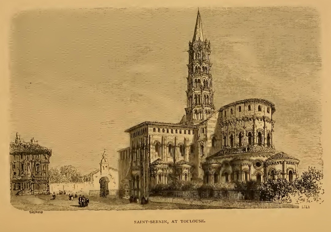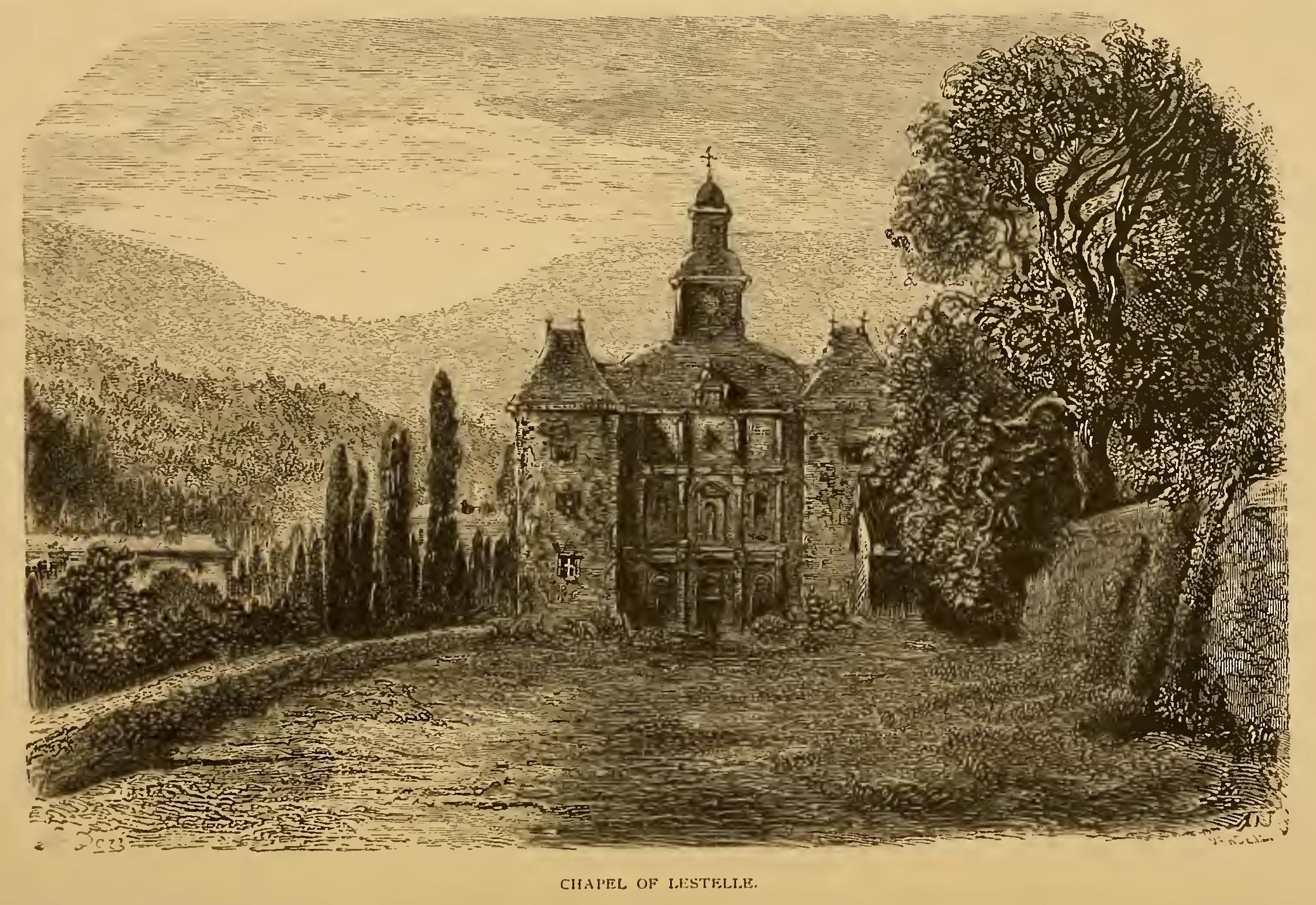 Escaladieu shows at the wayside the remains of an ancient abbey. The chapel is still standing and preserves fragments of gothic sculpture. A bridge is at the side, shaded by tall trees. The pretty river Arros runs, with moiré reflexes and guipures of silver, over a bed of dark pebbles. No one could choose a situation better than the monks: they were the artists of the time.