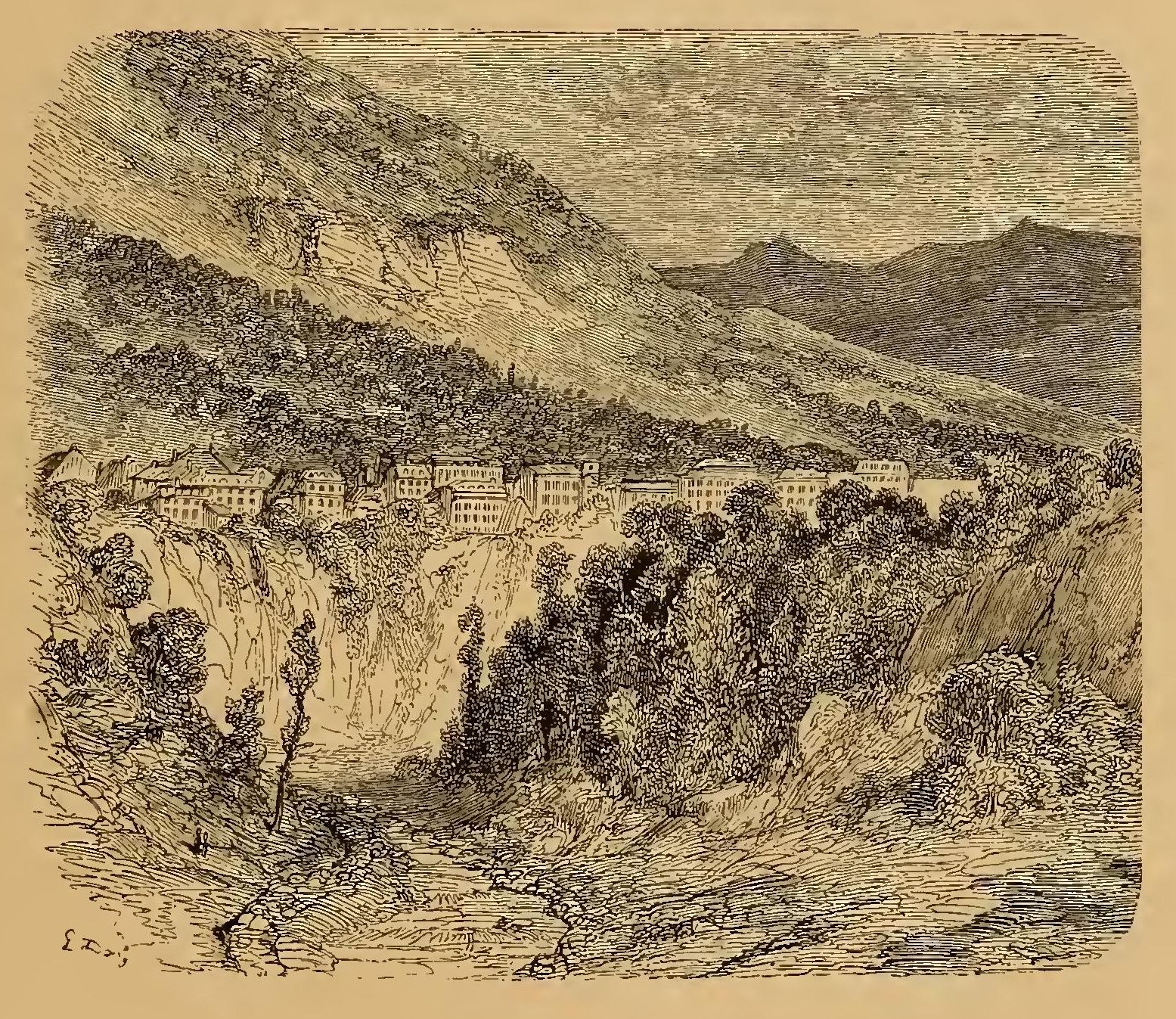 The street is a broad alley, planted with large trees, and lined with rather handsome hotels. It was opened by the intendant d’Ètigny, who, for this misdeed, was near being stoned. It was necessary to call in a company of dragoons to force the Luchonnais to endure the prosperity of their country.