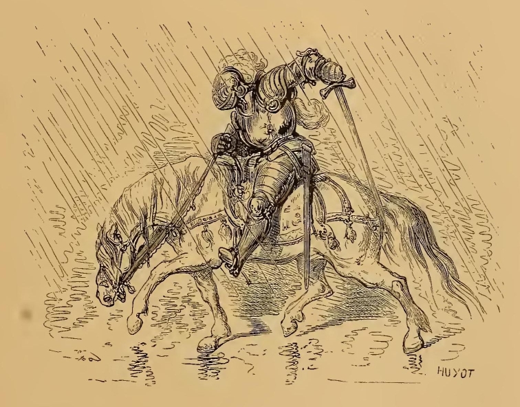 “‘Get about your business each of you to his own country, without entering any fort that holds out against us; for if you do so, and I get hold of you, I will deliver you up to Jocelin, who will shave you without a razor.’ ‘My lord,’ answered Raymonet, ‘if we thus depart we must carry away what belongs to us, and what we have gained by arms and with great risk.’ The duke paused awhile, and then said, ‘I consent that you take with you whatever you can carry before you in trunks and on sumpter horses, but not otherwise; and if you have any prisoners, they must be given up to us.’ ‘I agree,’ said Raymonet. Such was the treaty, as you hear me relate it; and all who were in the castle departed, after surrendering it to the Duke of Anjou, and carrying all they could with them. They returned to their own country, or elsewhere, in search of adventures.”