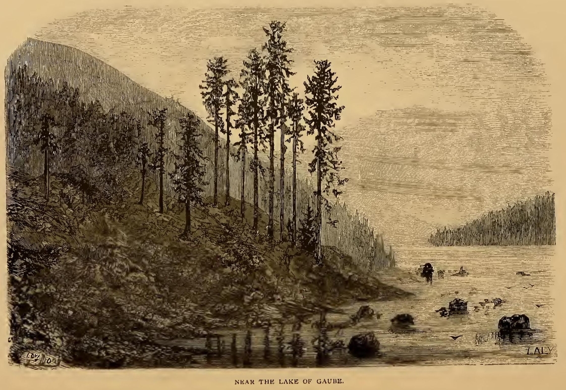 Toward evening we descended into the hollow where the goats were passing. A spring was running there, caught in the hollowed trunks of trees which answered for watering-troughs to the herds. It is a delicious pleasure after a day’s tramp to bathe hands and lips in the cold fountain. Its sound on this solitary plateau was charming. The water trickled through the wood, among the stones, and everywhere that it glided over the blackened earth the sun covered it with splendor. Lines of reeds marked its track to the brink of the pool. Herdsman and animals had gone down; it was the sole inhabitant of this abandoned field. Was it not singular to meet with a marsh at the height of five thousand feet?