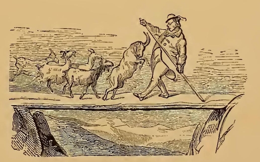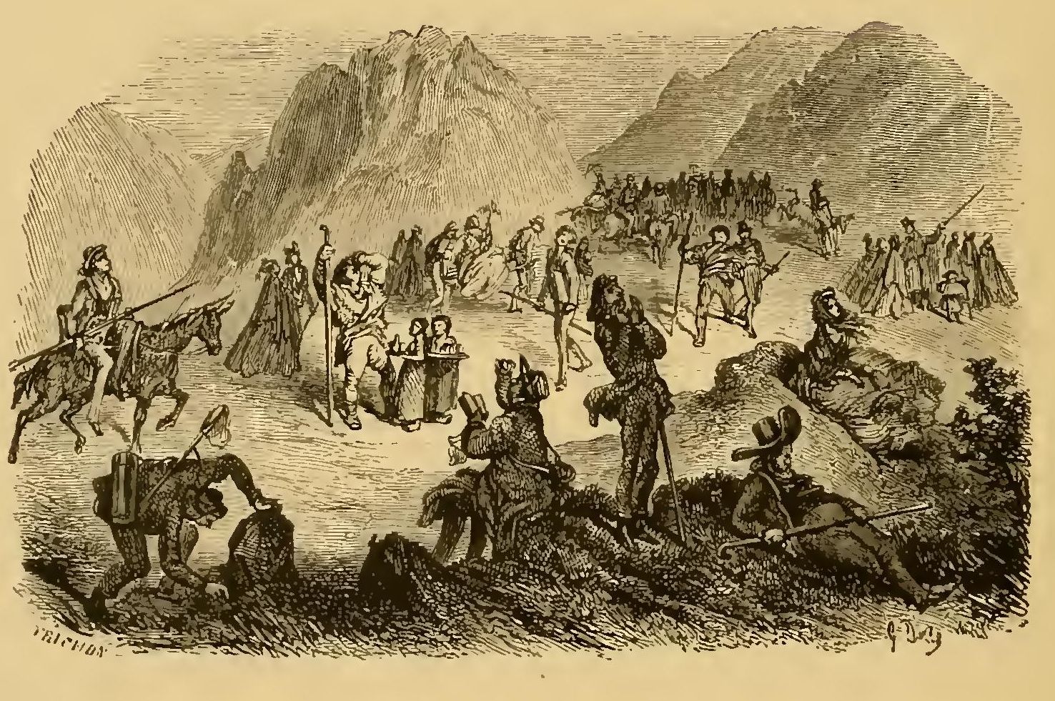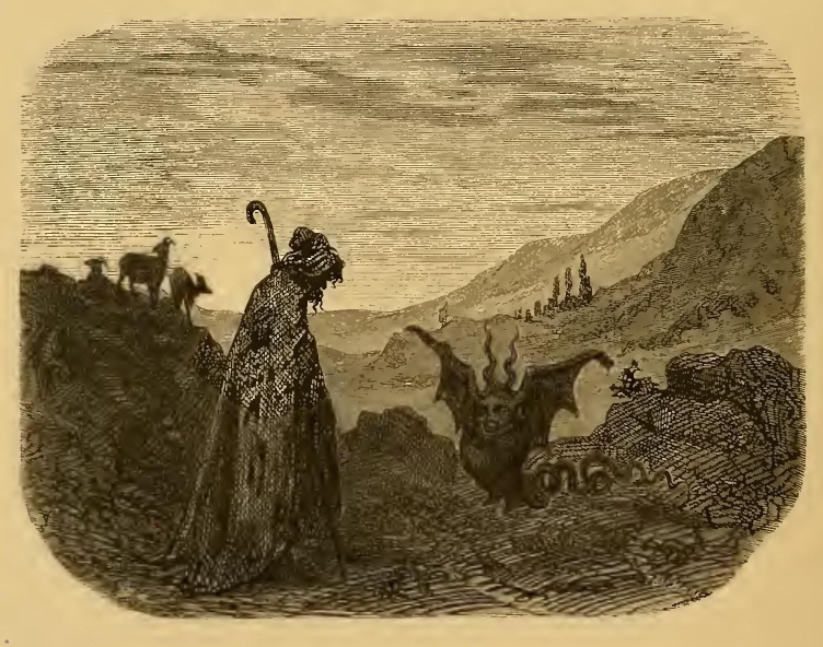 “At sight of this apparition, fear caused us to make the sign of the cross twice over, and go three paces backward. But curiosity prevailed over fear, and we resolved, although with some little palpitation of heart, to await the extraordinary old man, whose approach was thoroughly courteous, and who spoke to us very civilly as follows: