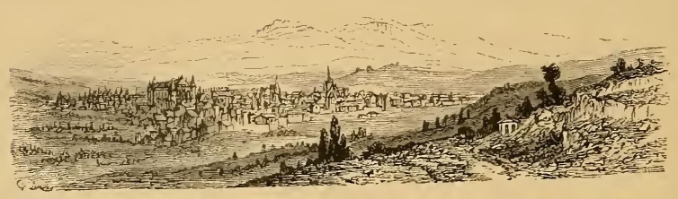 A melancholy city, with narrow and flinty streets. The town hall, called Capicole, has but one narrow entrance, commonplace halls, a pronounced and elegant façade in the taste of the decorations for public festivals. In order that no one may doubt its antiquity, they have inscribed on it the word Capitolium. The cathedral, dedicated to St. Stephen, is remarkable only for one pleasant memory: