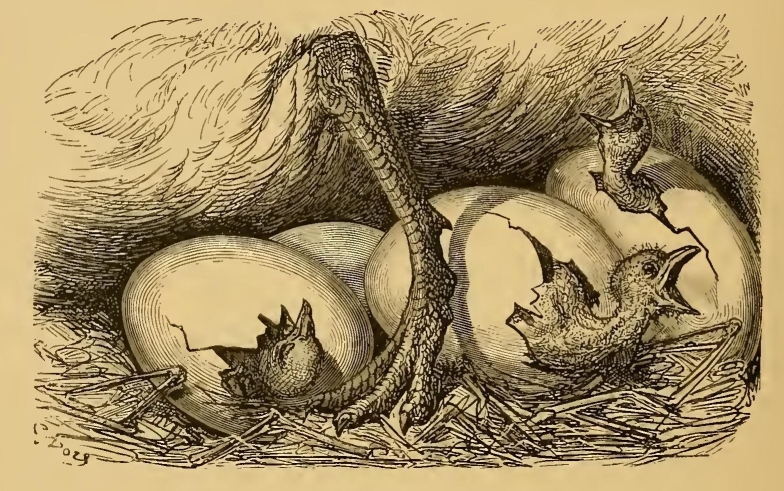 The white and the yolk, pressed into lumps, have [467]formed these blocks of stone, these houses and the whole solid earth. Some parts have remained soft and form the surface that men plough; the rest runs in water and makes the pools, the rivers; each spring-time there runs a little that is new.