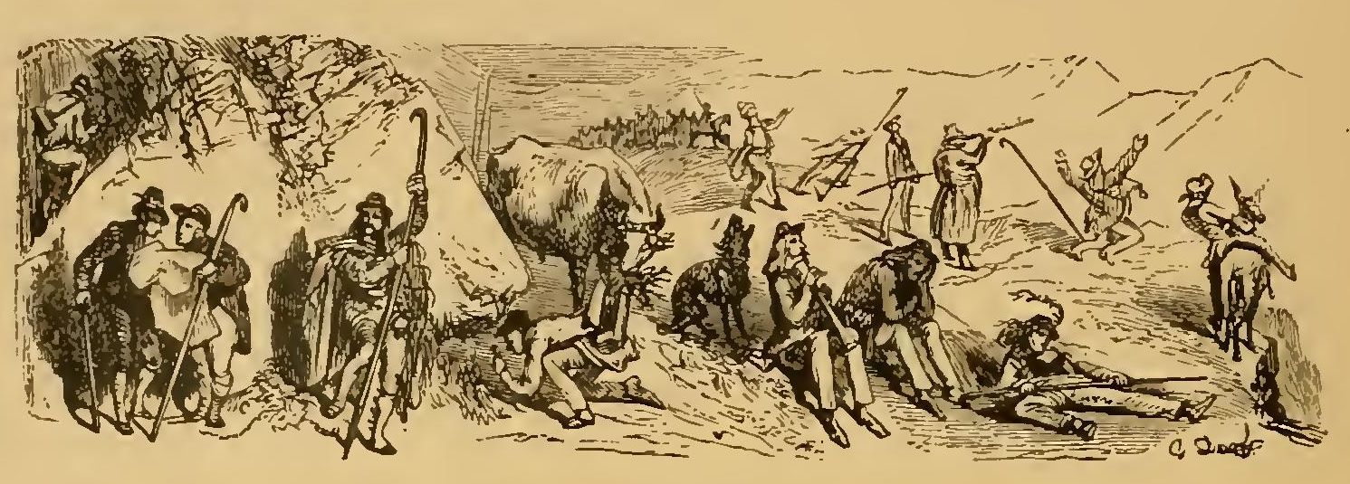 * Alertes comme des izards—The isard, or y’sard, is the chamois-antelope of the Pyrenees, often called a chamois.— Translator.