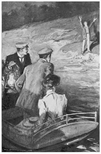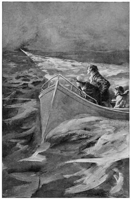 I stood looking lazily out of the window. A large[300] yacht lay just offshore, her white sides glistening in the morning sun. There was a touch of spring in the winter air. Suddenly, before my horror-stricken eyes, the yacht changed to a confused mass of boards which rose and fell on the tide. I heard a cry from Tom and Dorothy. “The man!”