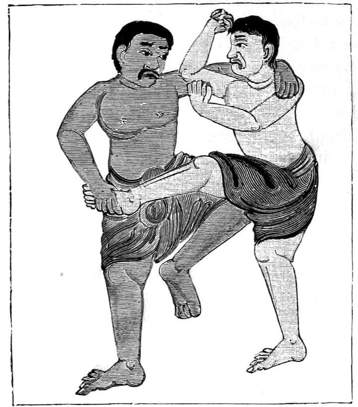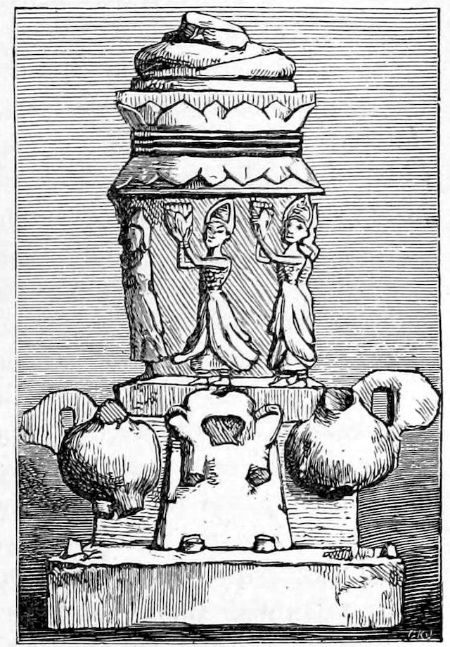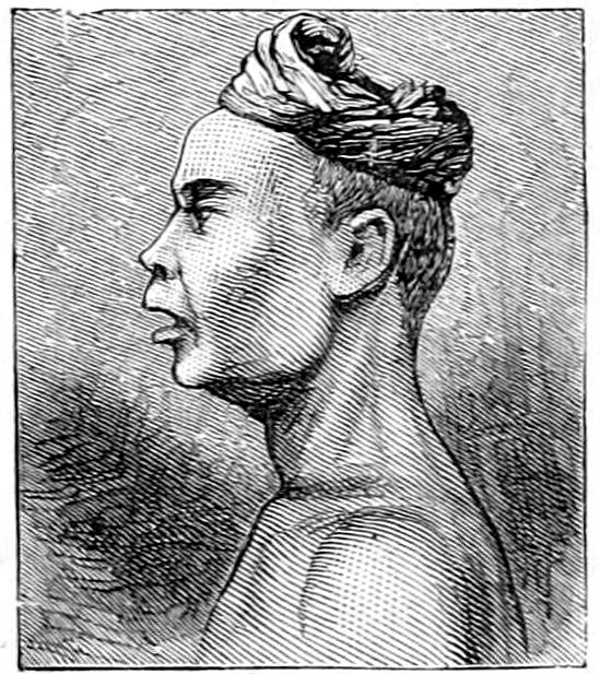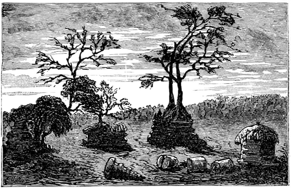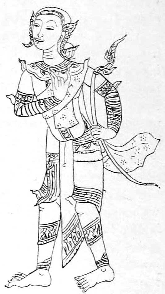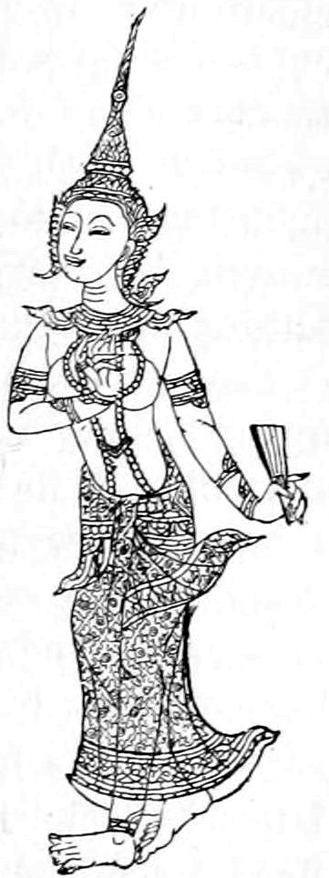 From B.C. 125 there are many accounts of embassies passing between China and Cambodia, and the country seems rapidly to have reached a height of prosperity and Eastern splendour. In the third century Chinese ambassadors mention palaces, towers, and theatres having been erected for the reception and amusement of the guests, and meeting merchants in the ports from countries as far west as the Roman Empire. The people were described by the Chinese as an active and robust small black race, with long hair knotted on the top of the head; the rich wearing only a silk loin-cloth, and the poor one of cotton. The women had head-coverings, and decked themselves with beautifully wrought silver jewellery set with precious stones. The men excelled in making jewellery, gold and silver vases, furniture, and domestic utensils—and were honest, and hated theft above all things. They worshipped Hindoo gods, and offered up human sacrifices.