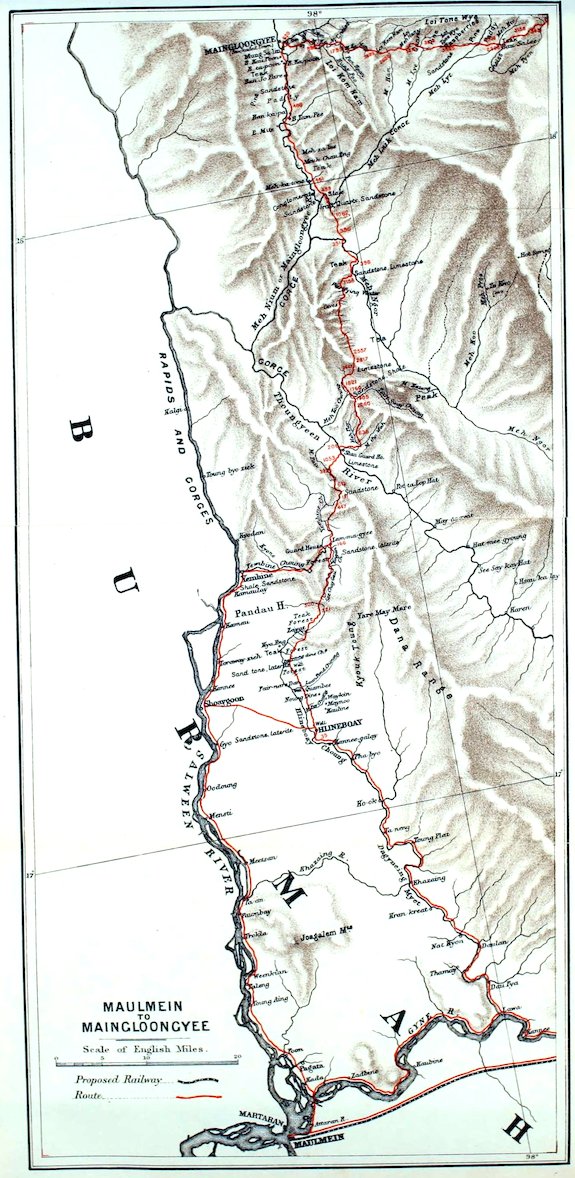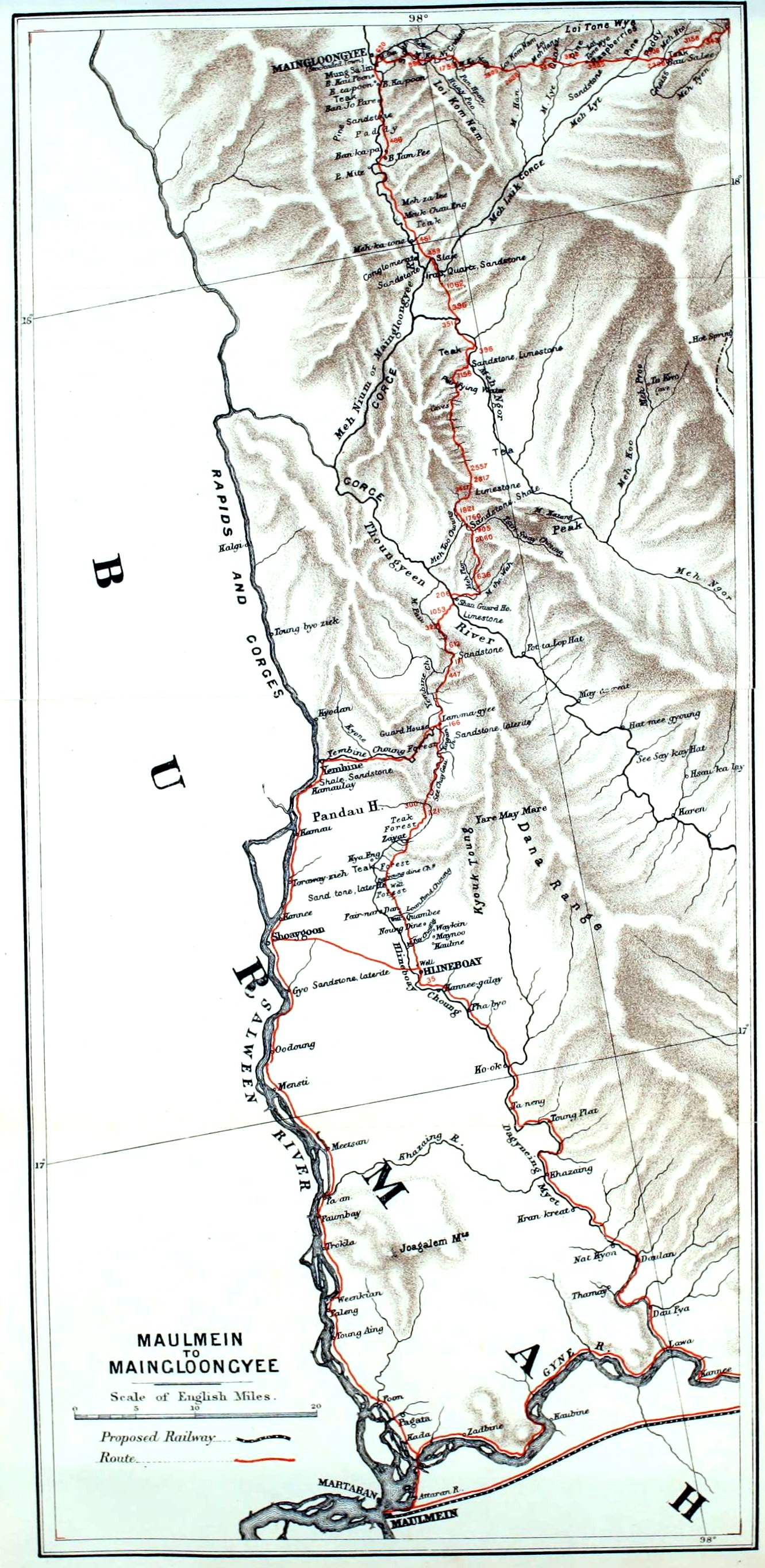 Whilst the coast of Burmah was under native dominion, our traders had to content themselves with travelling along the great rivers; and it was not until 1829, three years after we had annexed the Burmese provinces of Tenasserim and Arakan, that steps were taken by us to establish overland trade with Northern Siam, the Shan States, and China. In that year Lord William Bentinck, the Governor-General of India, ordered a mission to proceed, under Dr Richardson, from Maulmain to the Siamese Shan States, to ensure friendly relations and trade in that direction; and in 1837, Lord Auckland, then Governor-General, despatched Captain (late General) MacLeod, viâ Zimmé and Kiang Hung to China, with the view of opening up trade with that country. Notwithstanding the favourable reports of these and subsequent missions, and the frequent petitions of our mercantile community asking for the connection of Burmah with China by railway, no action has been taken by the Indian Government in the sixty years that have elapsed since Dr Richardson’s mission, for improving the overland routes leading from Burmah to the great undeveloped markets which immediately border our possessions on the east. Burmah might as well have remained for these sixty years in native hands, for all the good that its acquisition has been to the furtherance of our trade with the neighbouring regions.