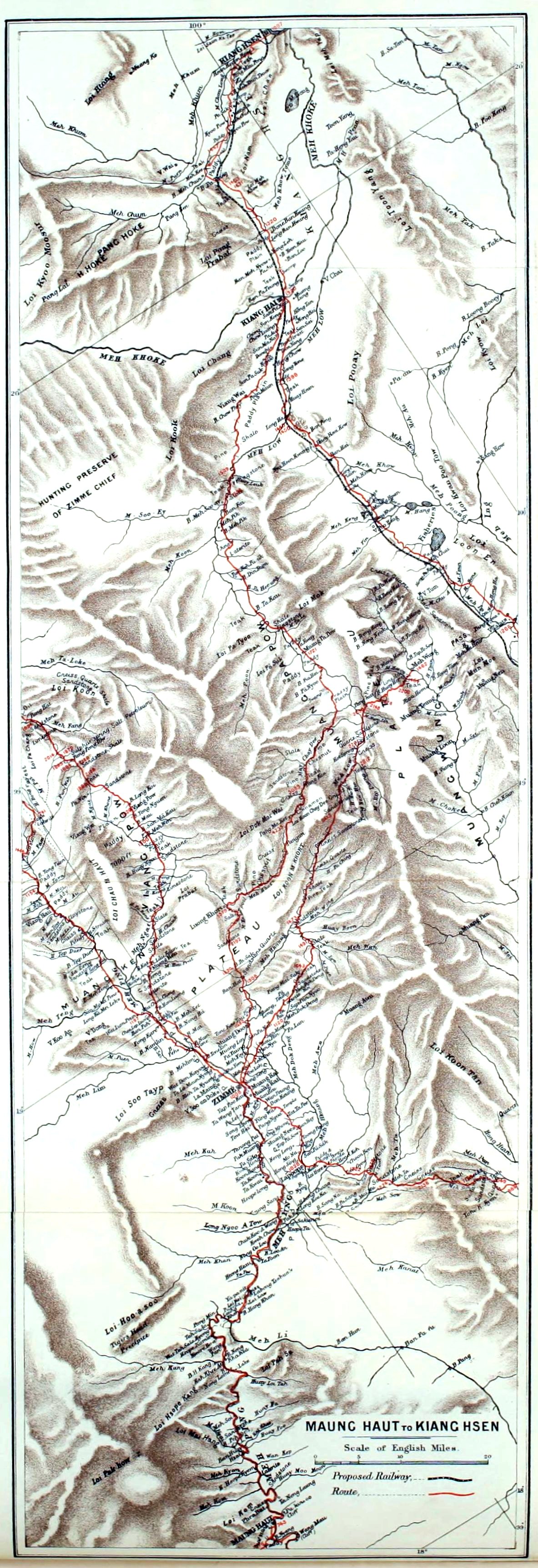 When I retired from Government service at the end of 1879, the French were again in the field. They had annexed the south-eastern corner of Indo-China, had seized Cambodia from the Siamese, were determined to wrest Tonquin from China, which they have since succeeded in doing, and had openly avowed their intention to eject British trade from Eastern Indo-China, and to do all they possibly ixcould to attract the trade of South-western, Southern, and Central China to French ports in Tonquin, where prohibitive duties could be, and have since been, placed upon British goods. It was under these circumstances that Mr Colquhoun and I took up the question, placed the necessity of connecting India with Burmah, Siam, and China before the public, and with the aid of the mercantile community determined to carry out a series of exploration-surveys to prove whether or not Burmah could be connected with these countries by railway at a reasonable expense, and to select the best route, financially and commercially, for the undertaking. The present volume deals with my exploration-surveys in Siam and the Shan States.