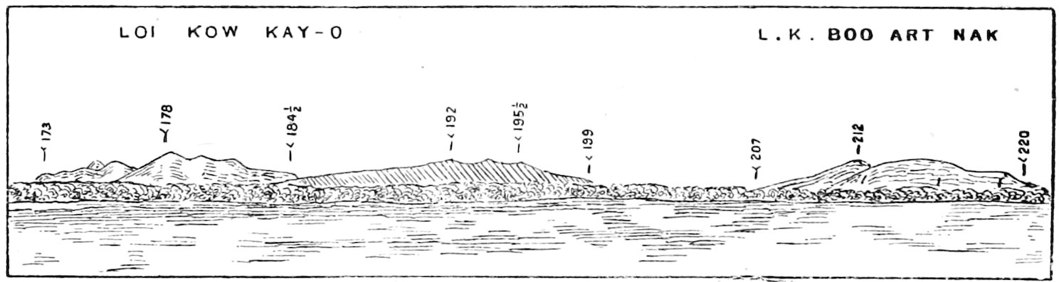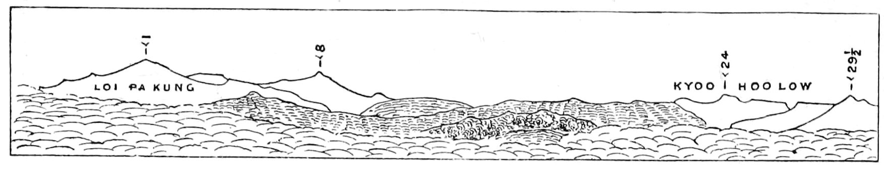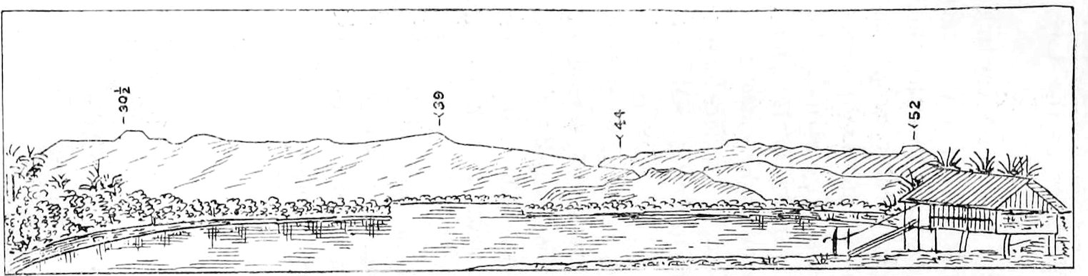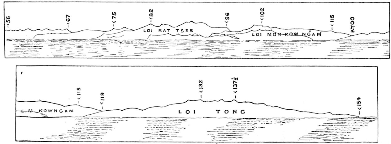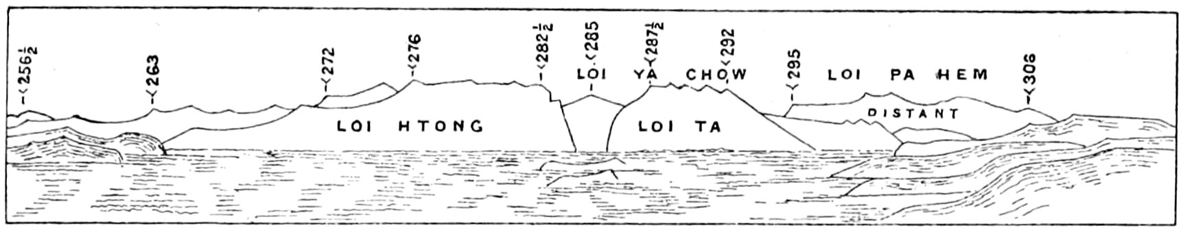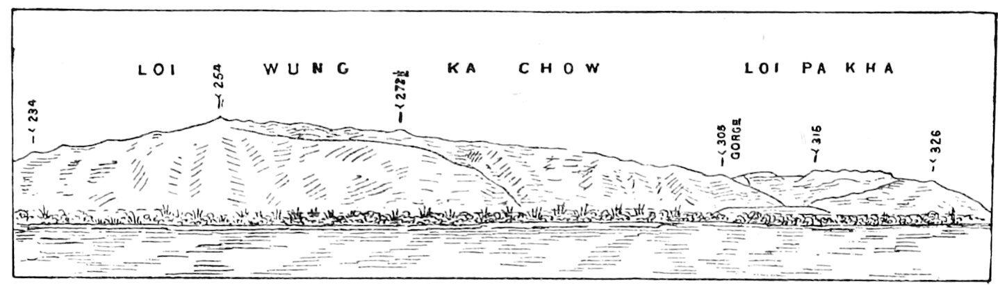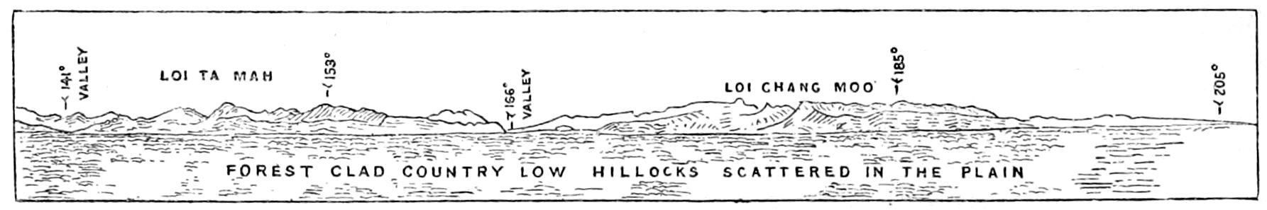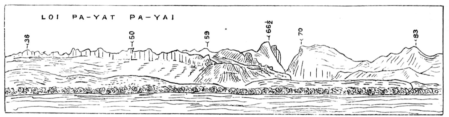| Path for a railway—Lawa Sivas—Legends of Poo-Sa and Ya-Sa, and of Me-lang-ta the Lawa king—Story of a Yak—Descent from the Bau plateau—A courageous lady—Weird country—Ruby-mines—Reach Muang Haut—Cabbages—Tobacco-cutting—A bobbery—Fable of the peacock and the crow—Sketching the country—Conversing by signs—Interviewing the head-man—Boat-hire on the Meh Nam—Cost of carriage—Rainfall—Produce of fields—A Shan temple—Method of making images—Bargain for boats—Temperature in sun and shade, | 56 |
