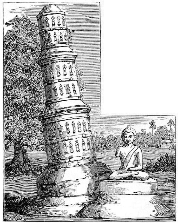 To the north of the Mon race, in the district of the Middle Irawadi, the country was occupied from an early date by Burmese tribes of Tibetan origin, who were gradually welded together by warlike Kshatriya princes, who invaded the country from Northern India. According to the Tagaung Raza Weng, their first capital in Burmah was founded at Tagaung by Abhi Raja, one of the Sakya Rajas. This prince came from Kapilavastu with an army, and, B.C. 923, built the city. One of his sons founded a dynasty in Arakan, and a grandson established another at Kalê in the Kubo valley. The xiiidestruction of the first monarchy at Tagaung was due to the irruption of tribes, probably Shans, from the East. This is said to have happened in the sixth century B.C.