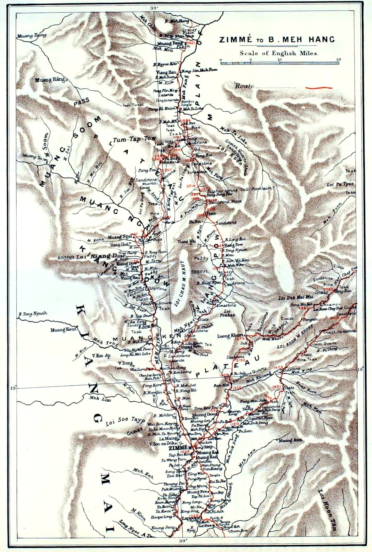 | Kiang Dow—Invasions of Burmese Shans—Precipitous hills—Muang Hang under the Burmese—Viang Chai—Catch a Kamait—Entering monastic life—Inquisitive people—Reach Muang Ngai—View up the river—A Shan play—Visit the governor—Leave Muang Ngai—Hot springs—Loi Pa-Yat Pa-Yai—A storm in the hills—Drainage flowing in three directions—Underground streams—Difficult pass—Sinkage of ground—A sacred cave—Legend of Tum Tap Tow—Visit the cave—An unpleasant night—Large game—Threatened with beheading—Legend of the hare-lip—Building a house—Chinese forts—Trichinosis—Reach Muang Fang, | 334 |
