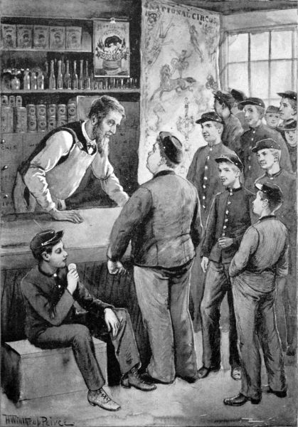 But the doubt as to his whereabouts was[144] soon to be dispelled. It was not long after taps that night, that those of the boys who were not yet asleep heard an unusual commotion downstairs. There were hurrying footsteps, loud voices, once a noise as of a slight scuffle; then all was quiet again.