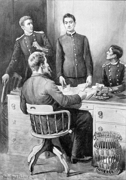 It was after supper that Brightly took[141] down his military coat, and severed the shoulder-straps from it, and the honor-grade chevrons from the sleeves. Then he took these, and his sword and sash, and went downstairs. He crossed through the private hall to Colonel Silsbee’s office door, knocked, and was bidden to enter. The principal was there alone. Brightly laid the insignia of his rank on the table before Colonel Silsbee.