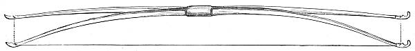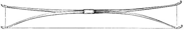 Of the various implements of archery, the bow demands the first consideration. It has at one period or another formed one of the chief weapons of war and the chase in almost every nation, and is, indeed, at the present day in use for both these purposes in various parts of the world. It has differed as much in form as in material, having been made curved, angular, and straight; of wood, metal, horn, cane, whalebone, of wood and horn, or of wood and the entrails and sinews of animals and fish combined: sometimes of the rudest workmanship, sometimes finished with the highest perfection of art.
