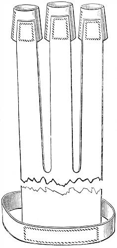 [28] Arrows are either selfs or footed; the former being made of a single piece of wood (these are now seldom in use, except for children), and the latter have a piece of different and harder wood joined on to them at the pile end. 'A shaft,' says old Roger Ascham,' hath three principal parts—the stele, the feather, and the head.' The stele, or wooden body of the arrow, used to be, and still is occasionally, made of different sorts of wood; but for target use, and indeed for any other description of modern shooting, all may be now discarded save one—red deal, which when clean, straight of grain, and well seasoned, whether for selfs or footed shafts, is incomparably superior to all others. For the footing any hard wood will do; and if this be solid for one inch below the pile it will be amply sufficient. Lance and Washaba are perhaps the best woods for this purpose; the latter is the toughest, but the former Mr. Ford preferred, as he thought the darkness of the Washaba had a tendency to attract the eye. The darker woods, however, are now mostly in use. This footing has three recommendations: the first, that it enables the arrow to fly more steadily and get through the wind better; the second, that, being of a substance harder than deal, it is not so easily worn by the friction it unavoidably meets with on entering the target or the ground; and the third, that this same hardness saves the point from being broken off should it happen to strike against any hard substance—such, for instance, as a stone in the ground or the iron leg of a target-stand. Before the shooting is commenced, and after it is finished, the arrows should be rubbed with a piece of oiled flannel. This will prevent the paint of the target from adhering to them. If in spite of this precaution any paint should adhere to them, sandpaper should on no account be used to clean them: this is most objectionable, as it will wear away the wood of the footing. Turpentine should be applied, or the blunt back of a knife.