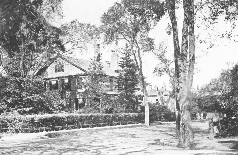 From the colleges, past the unenclosed common, a road ran in the direction of Watertown. It skirted the graveyard, next to which was Christ Church, the ecclesiastical home of the occupants of Tory Row, and shortly turned again by an elm already old when Washington took command, under its shade, of the first American army. Along the line of what is now known as Mason Street, it passed into the thoroughfare upon which were strung the houses of Tory Row; a lane entered it at this point, down which one could have walked to the house of the vacillating Thomas Brattle, occupied during the siege of Boston by Quartermaster-General Mifflin; the main road, now known as Brattle Street, but in Lowell’s youth still called the Old Road, keeping on toward Watertown, passed between the estates of the two Vassalls, Henry and John, Colonel John Vassal{3}l’s house becoming in the siege of Boston the headquarters of Washington, and wreathing its sword later in the myrtle boughs of Longfellow. Then, at what is now the corner of Brattle and Sparks streets, stood the Lechmere house, afterward Jonathan Sewall’s, and occupied for a while by the Baron Riedesel, when he was a prisoner of war after the defeat of Burgoyne, in whose army he commanded the Hessian forces.