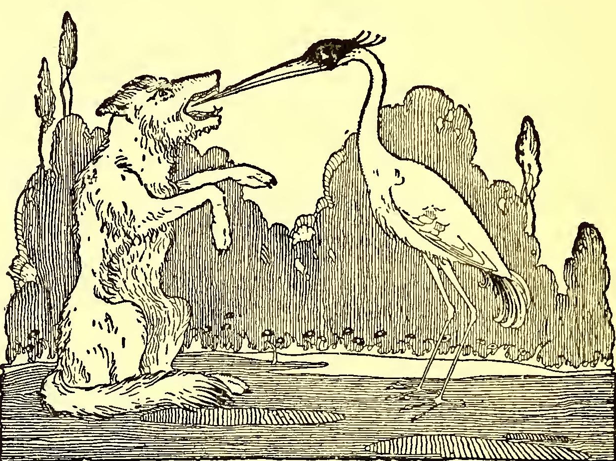 A Wolf once had a bone stuck in his throat, and offered to pay the Crane well if she would thrust her long bill down and draw the bone out.