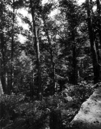 In that dustiest room of a great library where “pub. docs.” are stored, I unearthed a government report on forestry that gave, at last, a clear idea of the lay of the land. And here was news. We are wont to think of the South as a low country with sultry climate; yet its mountain chains stretch uninterruptedly southwestward from Virginia to Alabama, 650 miles in an air line. They spread over parts of eight contiguous States, and cover an area somewhat larger than England and Scotland, or about the same as that of the Alps. In short, the greatest mountain system of eastern America is massed in our Southland. In its upper zone one sleeps under blankets the year round.