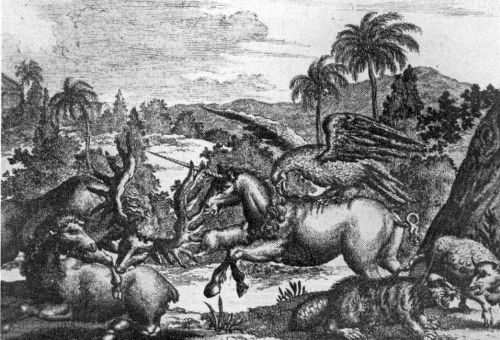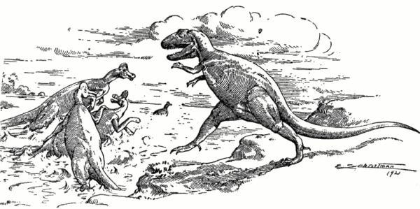 | Giant Lizards on the Red Deer. Drawing by E. S. Christman. | ||