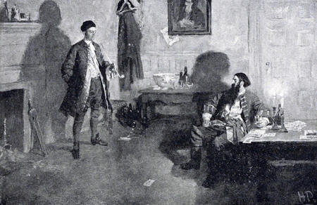 The lieutenant was listening very silently and intently as he walked along. “Why, what a thing do you tell me?” he cried out. “Of course, if that villain Hands knew aught like this conspiracy of Mr. Richard Parker’s he has reason enough to believe that Colonel Parker won’t choose to have it known. I always misliked Dick Parker; but what a prodigious rascal he must be! ’Tis incredible that one born a gentleman could be such a villain as that. But I tell you what it is, Master Jack, this is a mightily serious secret that you have. You’d best keep it tight locked in your own bosom and say naught of it to any living soul.”