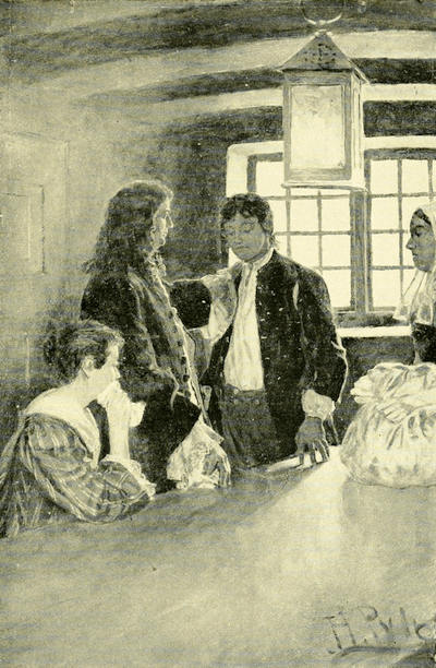 “Well,” said Jack, “‘twas said down there at Bath Town,—that is, by those who came to see the pirate at his house,—’twas said that—that Mr. Richard Parker knew about Miss Nelly’s having been taken away. I don’t know anything about it myself, but that was what they all said. I know that Blackbeard writ three or four letters to Mr. Parker while the young lady was there, and I heard them say again and again that Mr. Parker knew that she had been taken away from home and whither she had been taken, and that he was concerned in it.”