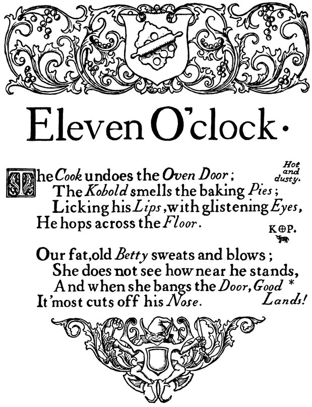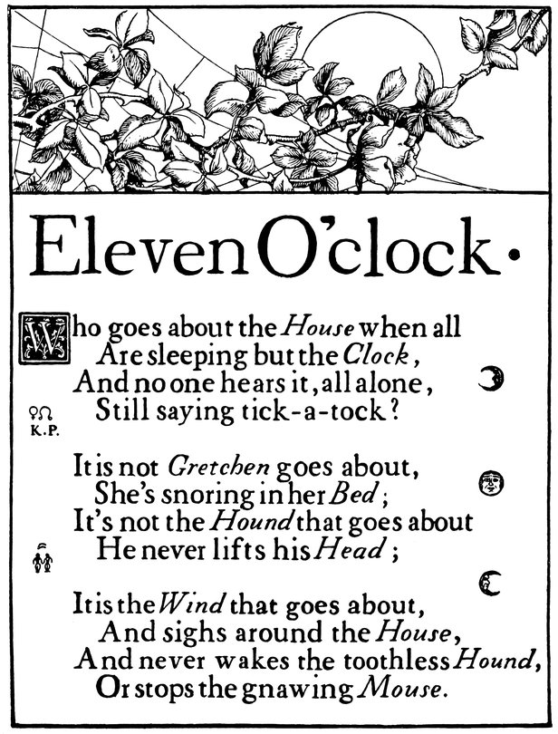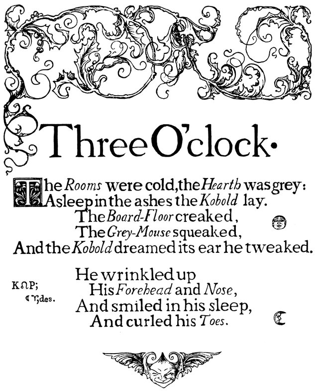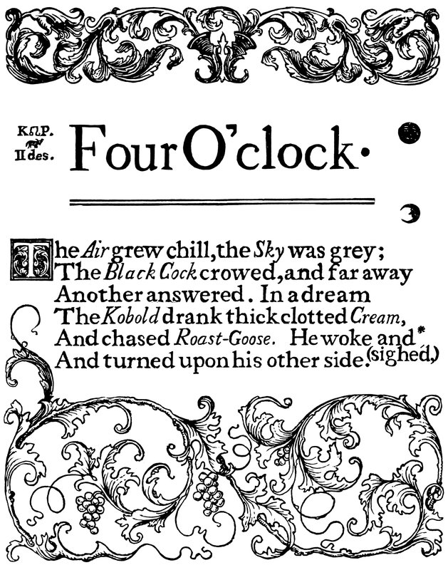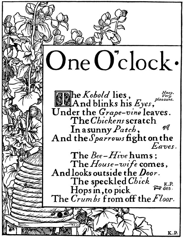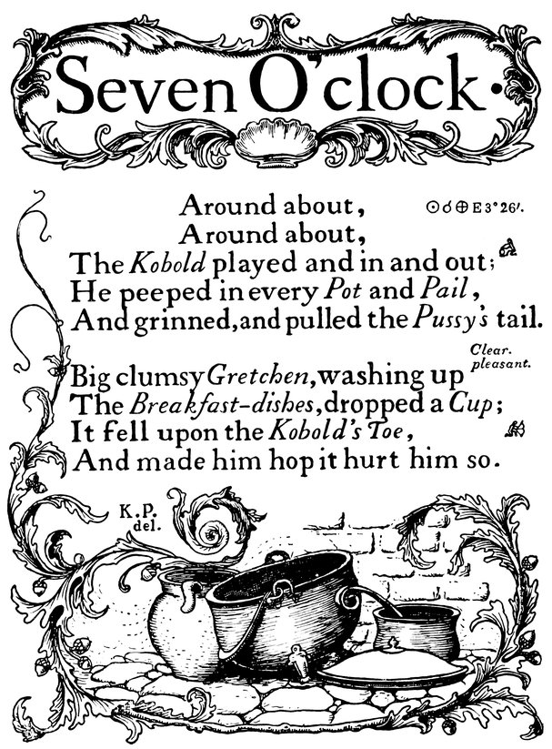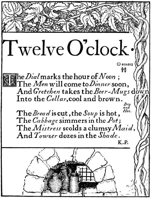 Down I sat and watched it, for every time it struck it played a pretty song, and when the song was ended—click! click!—out stepped the drollest little puppet-figures and went through with a dance, and I saw it all (with my dream-cap upon my head).