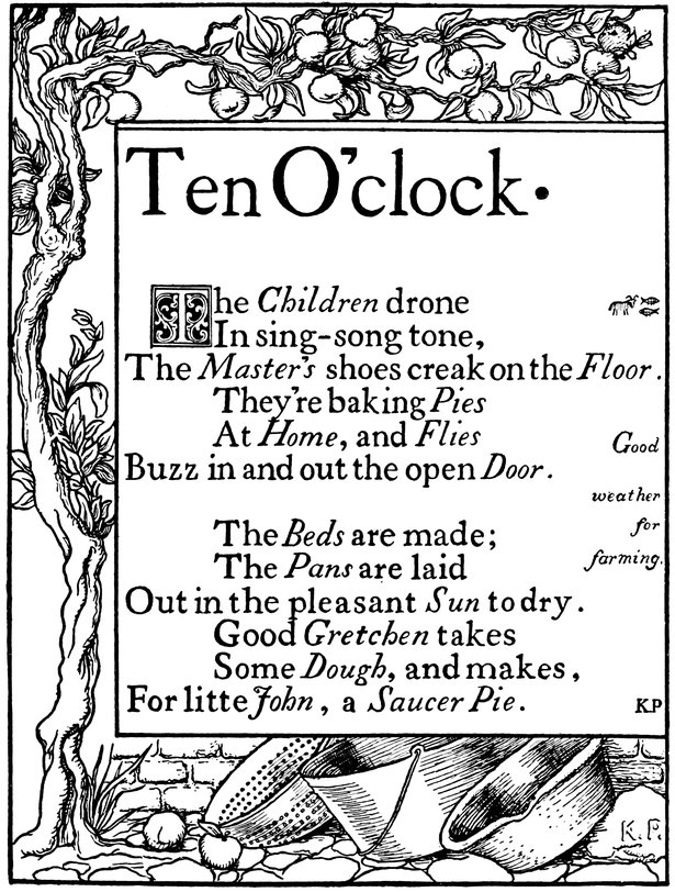 That was where Father Time lived; and who should sit in the sun at the door, spinning away for dear life, but Time’s Grandmother herself; and if you would like to know how old she is you will have to climb to the top of the church steeple and ask the wind as he sits upon the weather-cock, humming the tune of Over-yonder song to himself.