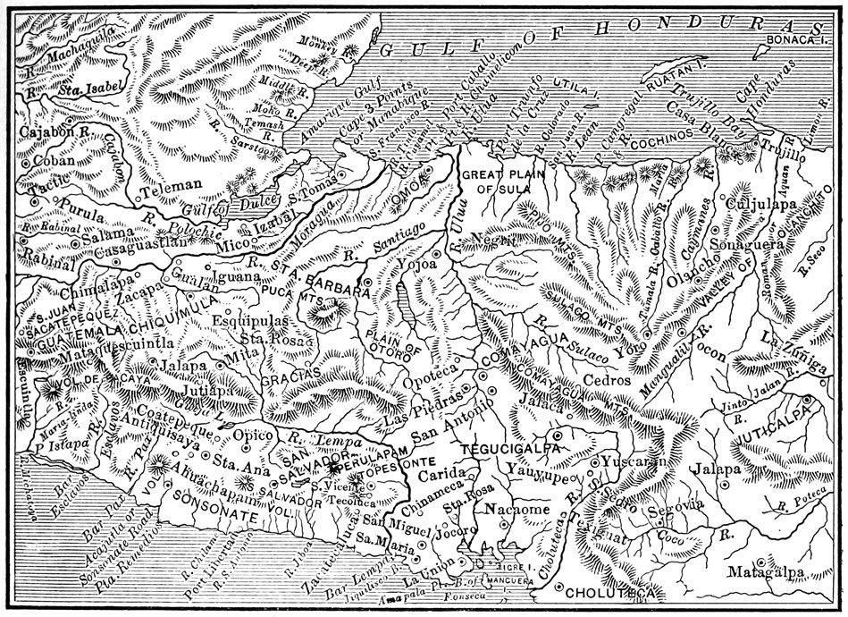 | President Ferrera—Revolutionary Movements—Political Executions—Presidency of Juan Lindo—New Constitution—Lindo Overthrown—Belize—Honduras' Troubles with Great Britain—British Occupation of Tiger Island—Bombardment of Omoa—Bay Islands—President Cabañas—War with Guatemala—Guardiola's Assassination—Provisional Rules of Castellanos and Montes—Alliance with Barrios—Unsuccessful War with Guatemala and Nicaragua—Montes Deposed—Establishment of the Republic—José M. Medina Chosen President—Amendment of the Constitution | 309 |