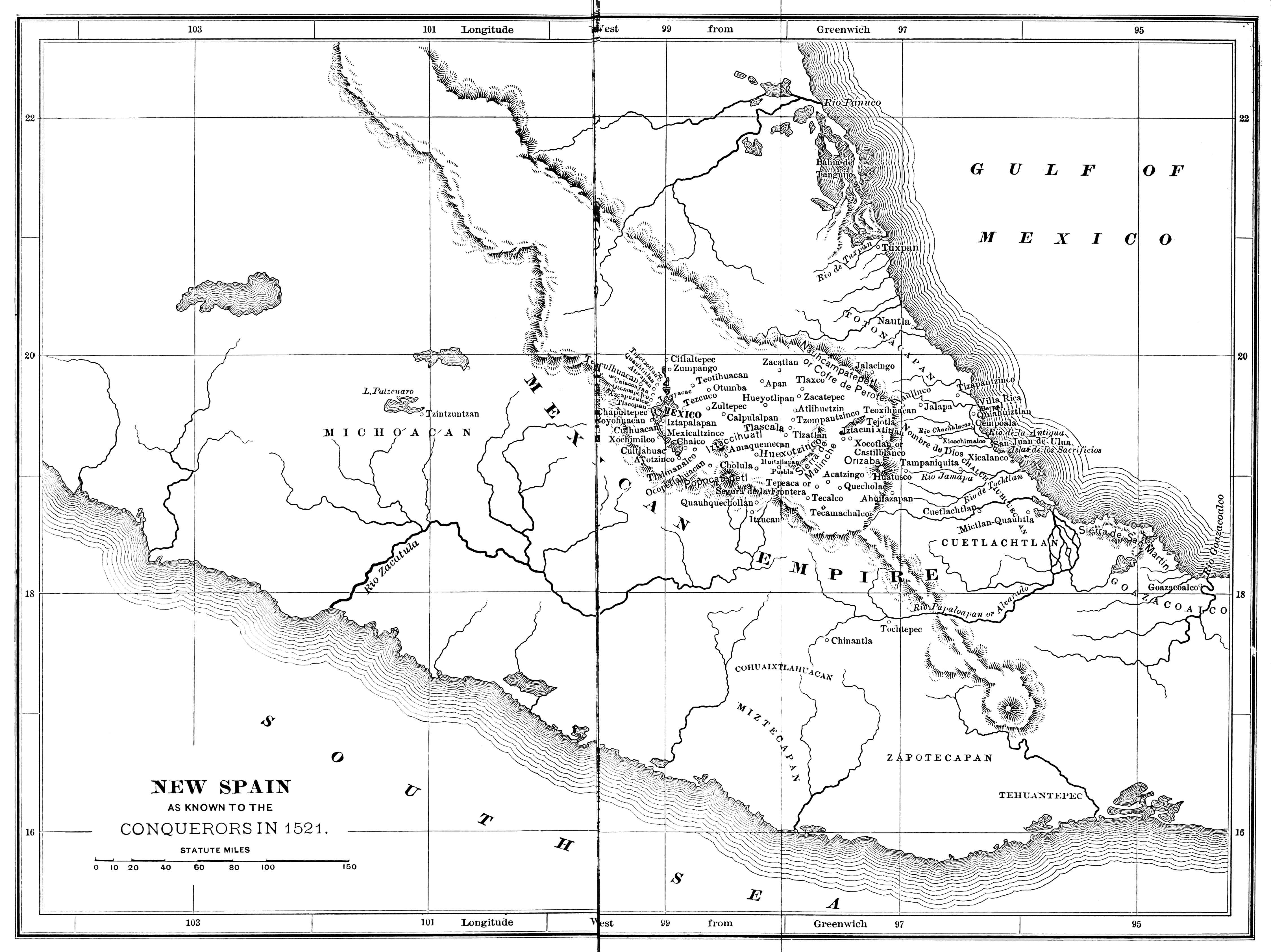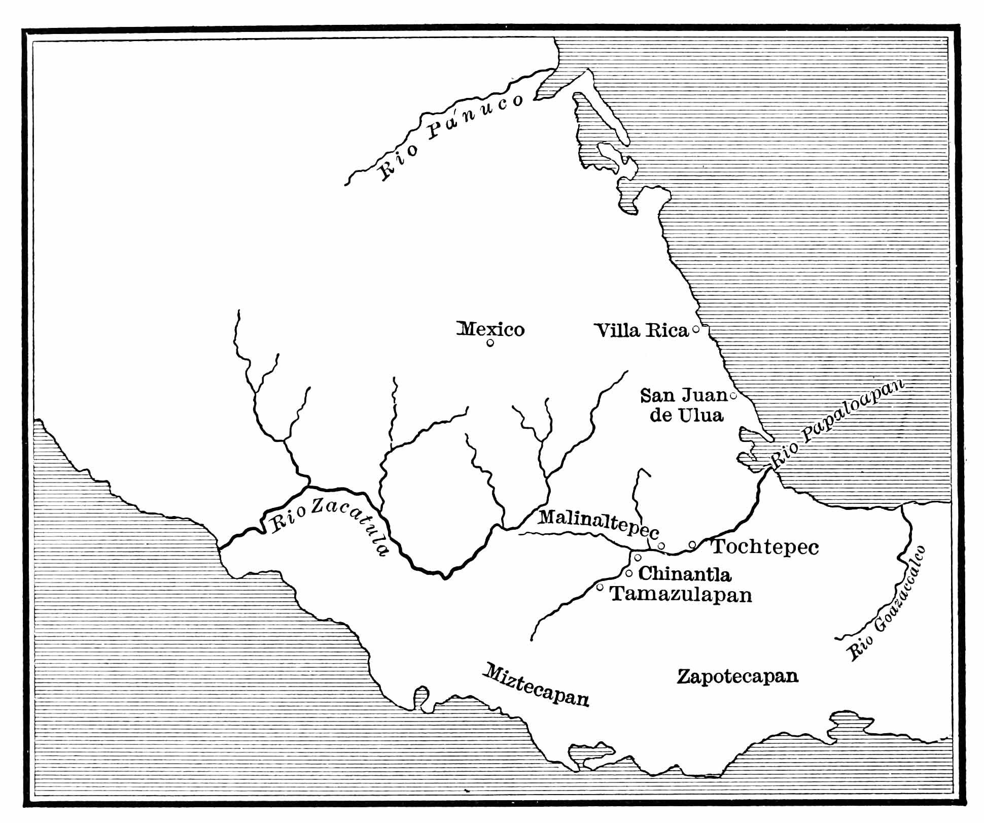 | Velazquez Plans a New Expedition—Gives the Command to his Nephew, Juan de Grijalva—Who Embarks at Santiago and Strikes the Continent at Cozumel Island—Coasts Southward to Ascension Bay—Then Turns and Doubles Cape Catoche—Naming of New Spain—Fight at Champoton—Arrival at Laguna de Términos—Alaminos, the Pilot, is Satisfied that Yucatan is an Island—They Coast Westward and Discover the Rivers San Pedro y San Pablo and Tabasco—Notable Interview at this Place between the Europeans and the Americans—The Culhua Country—They Pass La Rambla, Tonalá, the Rio Goazacoalco, the Mountain of San Martin, the Rivers of Alvarado and Banderas, and Come to the Islands of Sacrificios and San Juan de Ulua | 15 |