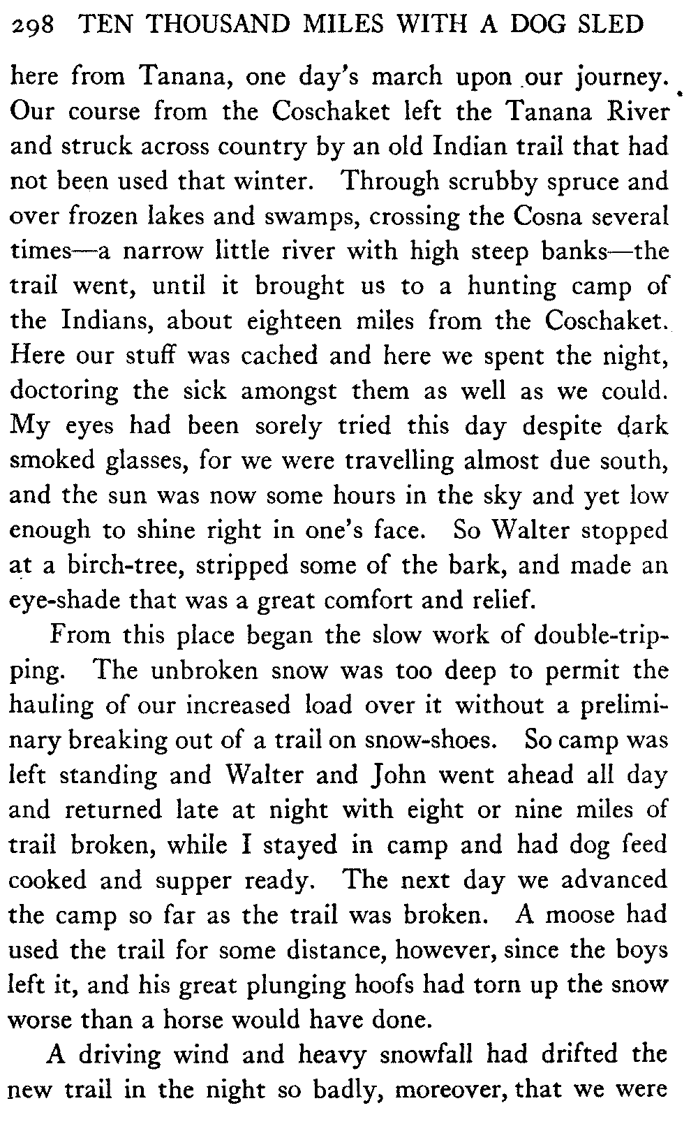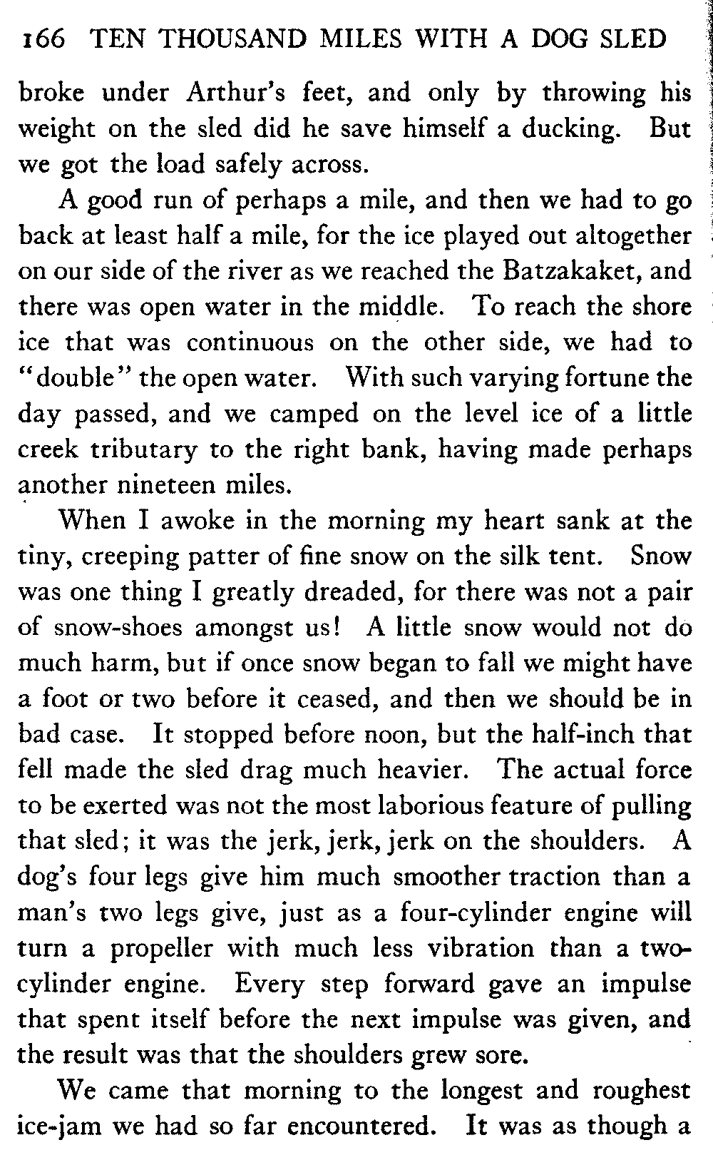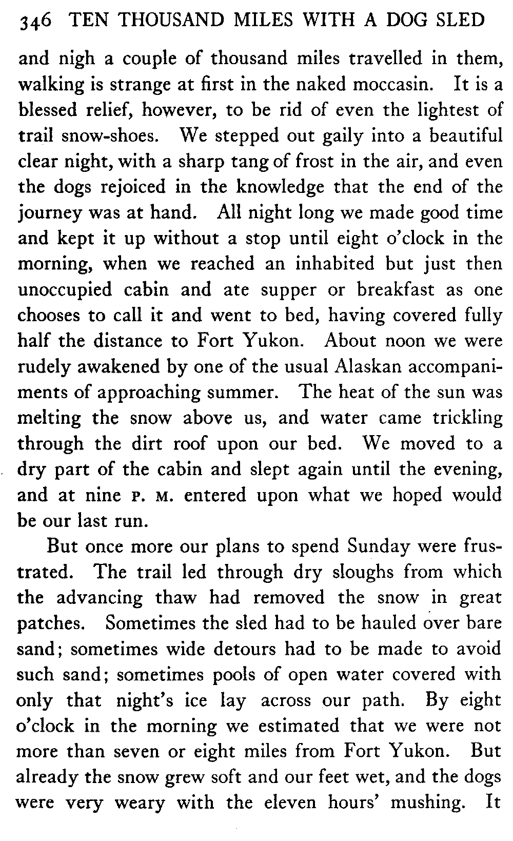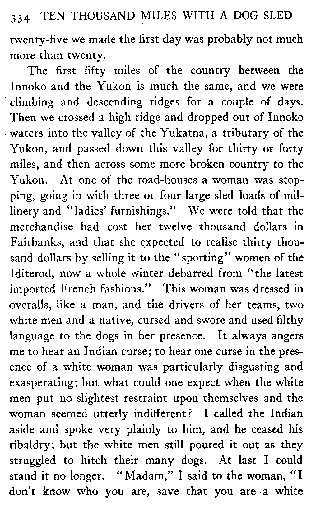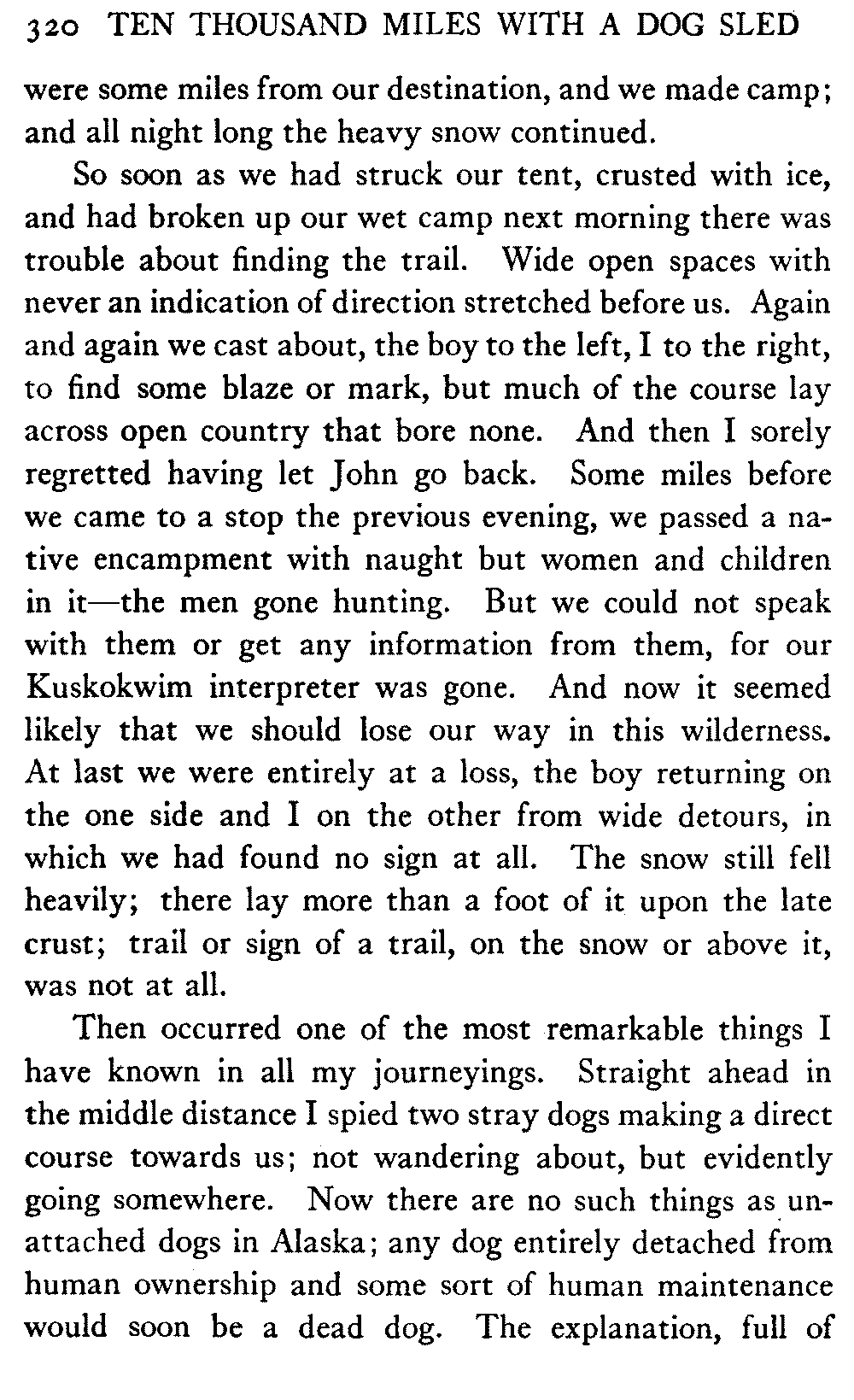 This volume deals with a series of journeys taken with a dog team over the winter trails in the interior of Alaska. The title might have claimed fourteen or fifteen thousand miles instead of ten, for the book was projected and the title adopted some years ago, and the journeys have continued. But ten thousand is a good round titular number, and is none the worse for being well within the mark.