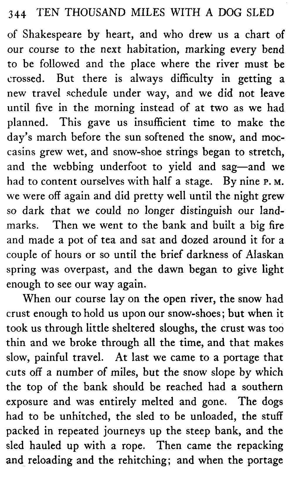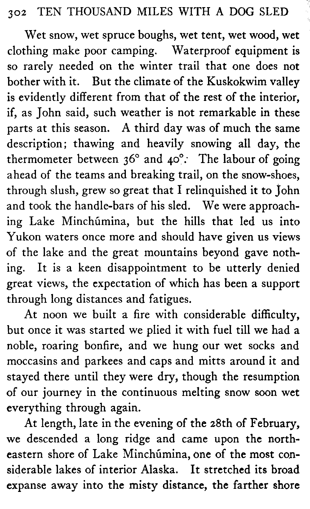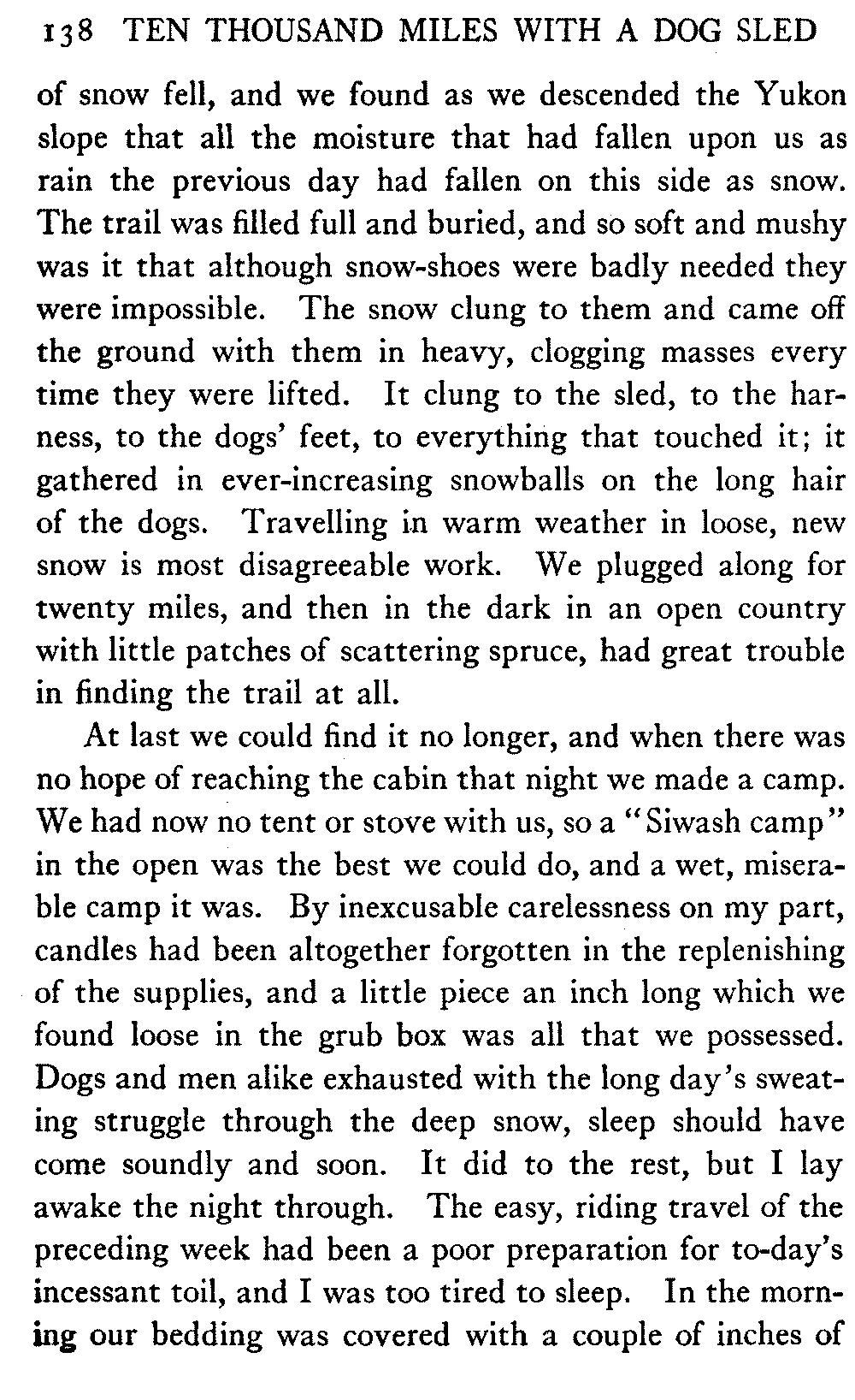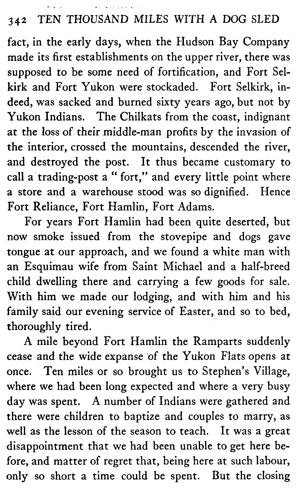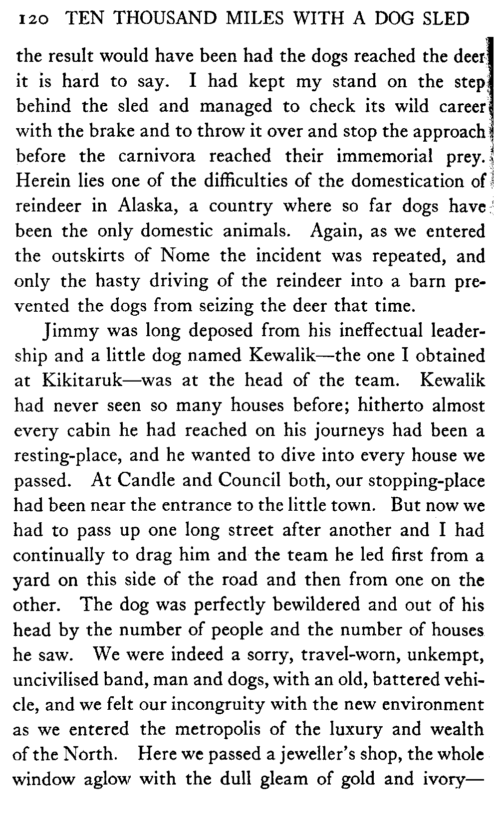 This volume deals with a series of journeys taken with a dog team over the winter trails in the interior of Alaska. The title might have claimed fourteen or fifteen thousand miles instead of ten, for the book was projected and the title adopted some years ago, and the journeys have continued. But ten thousand is a good round titular number, and is none the worse for being well within the mark.
