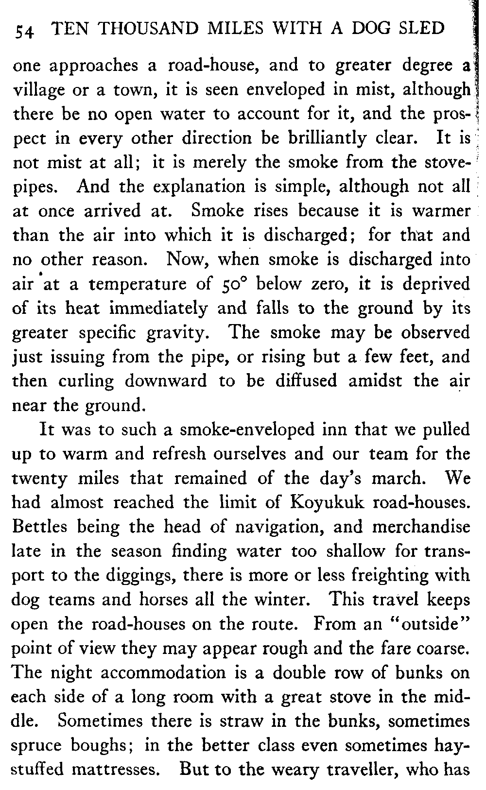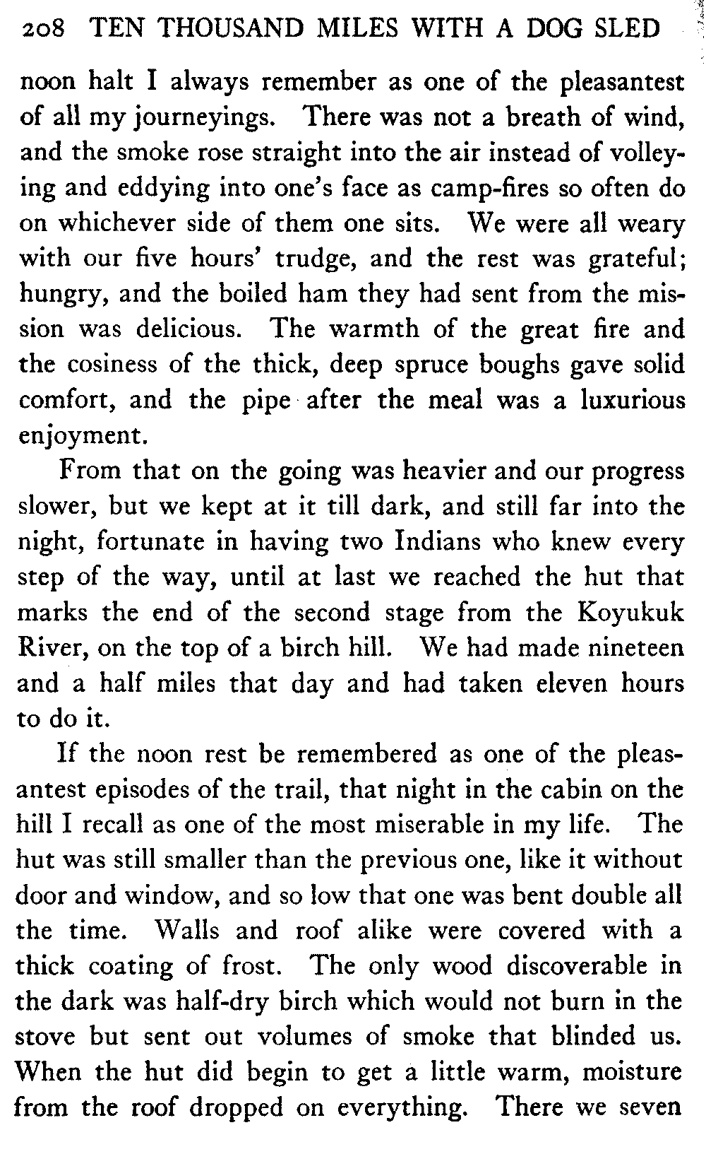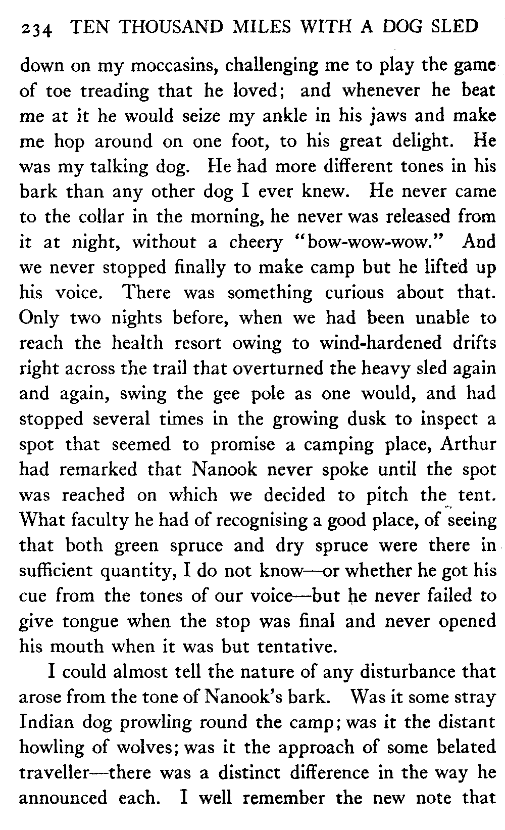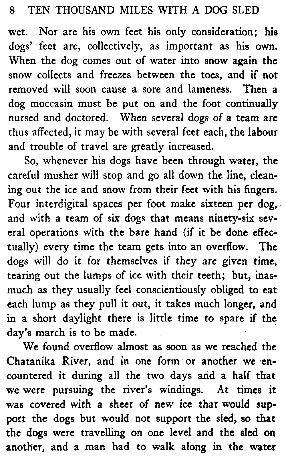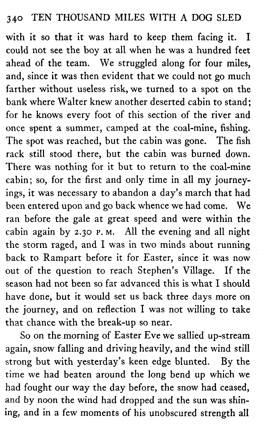This volume deals with a series of journeys taken with a dog team over the winter trails in the interior of Alaska. The title might have claimed fourteen or fifteen thousand miles instead of ten, for the book was projected and the title adopted some years ago, and the journeys have continued. But ten thousand is a good round titular number, and is none the worse for being well within the mark.