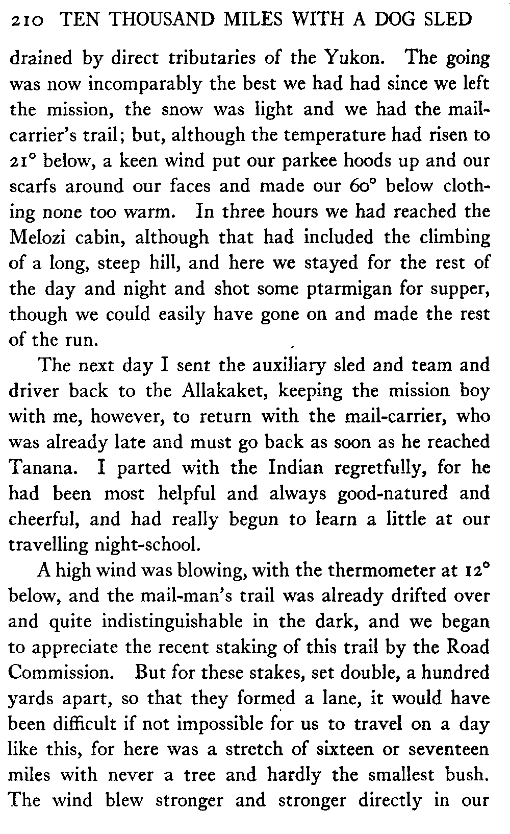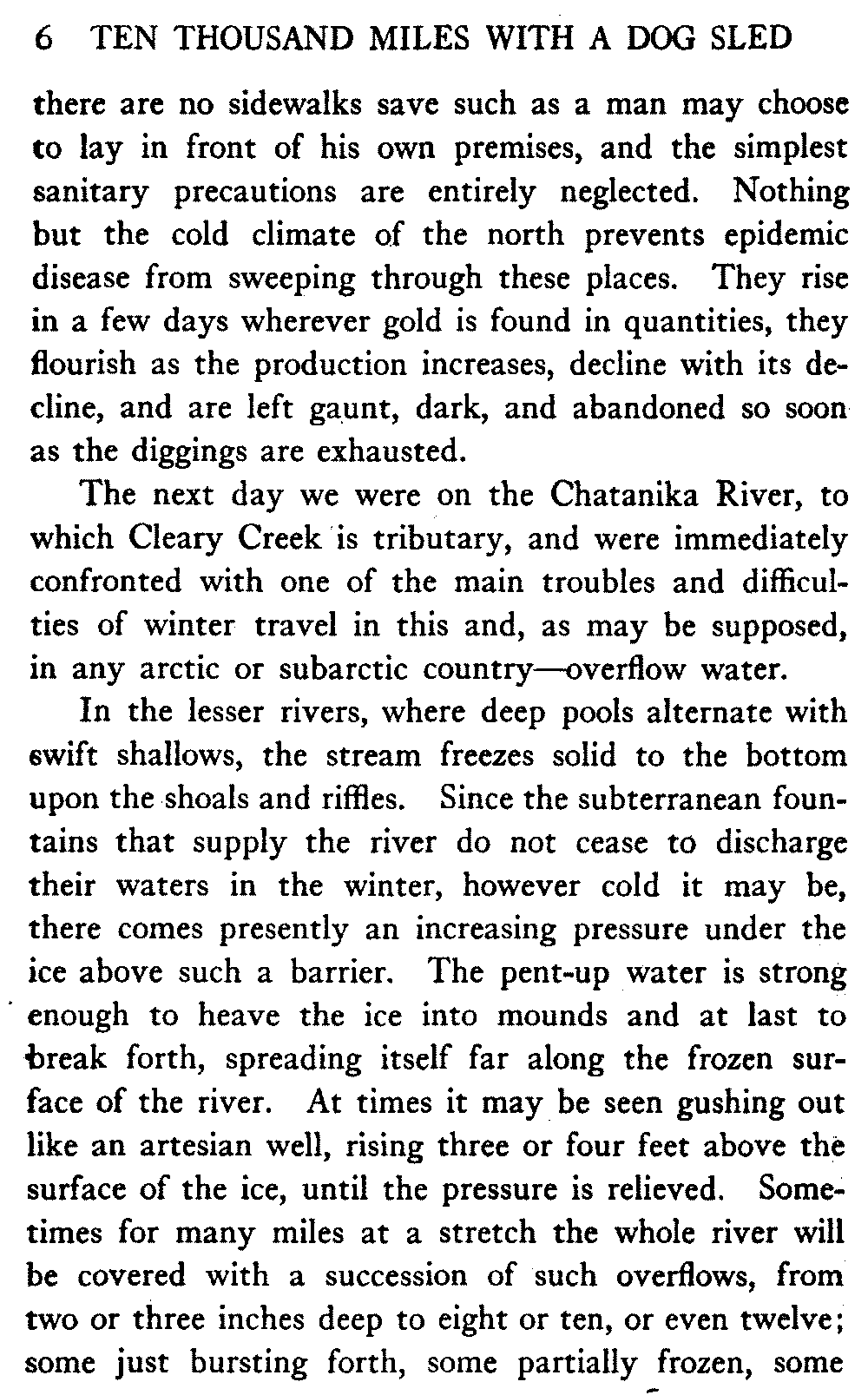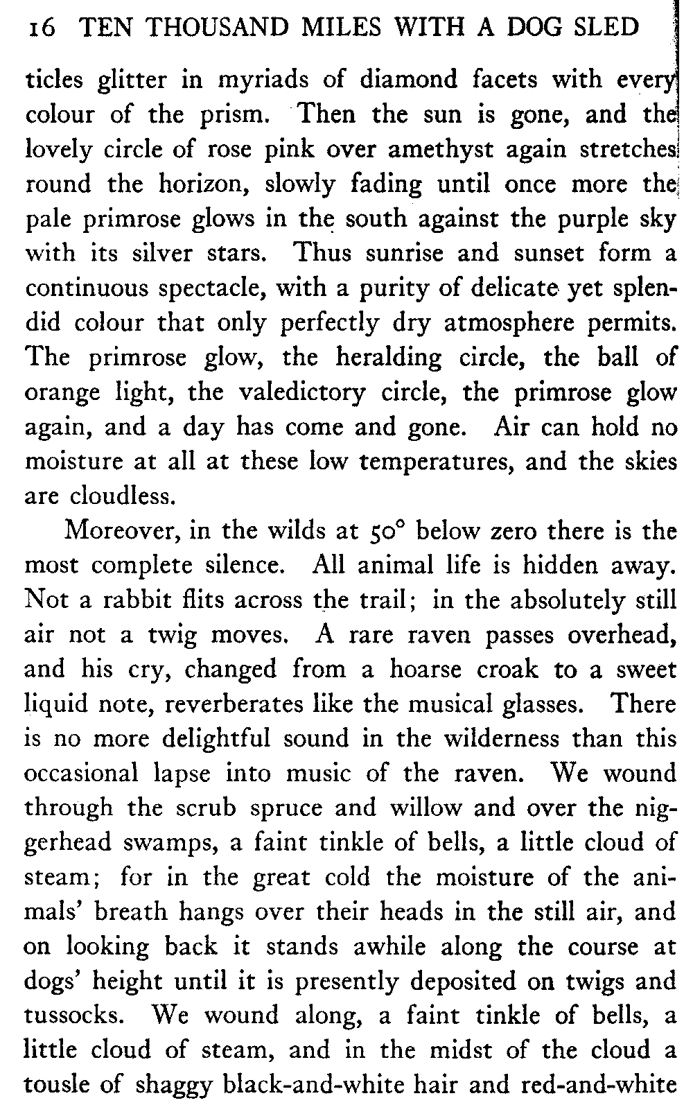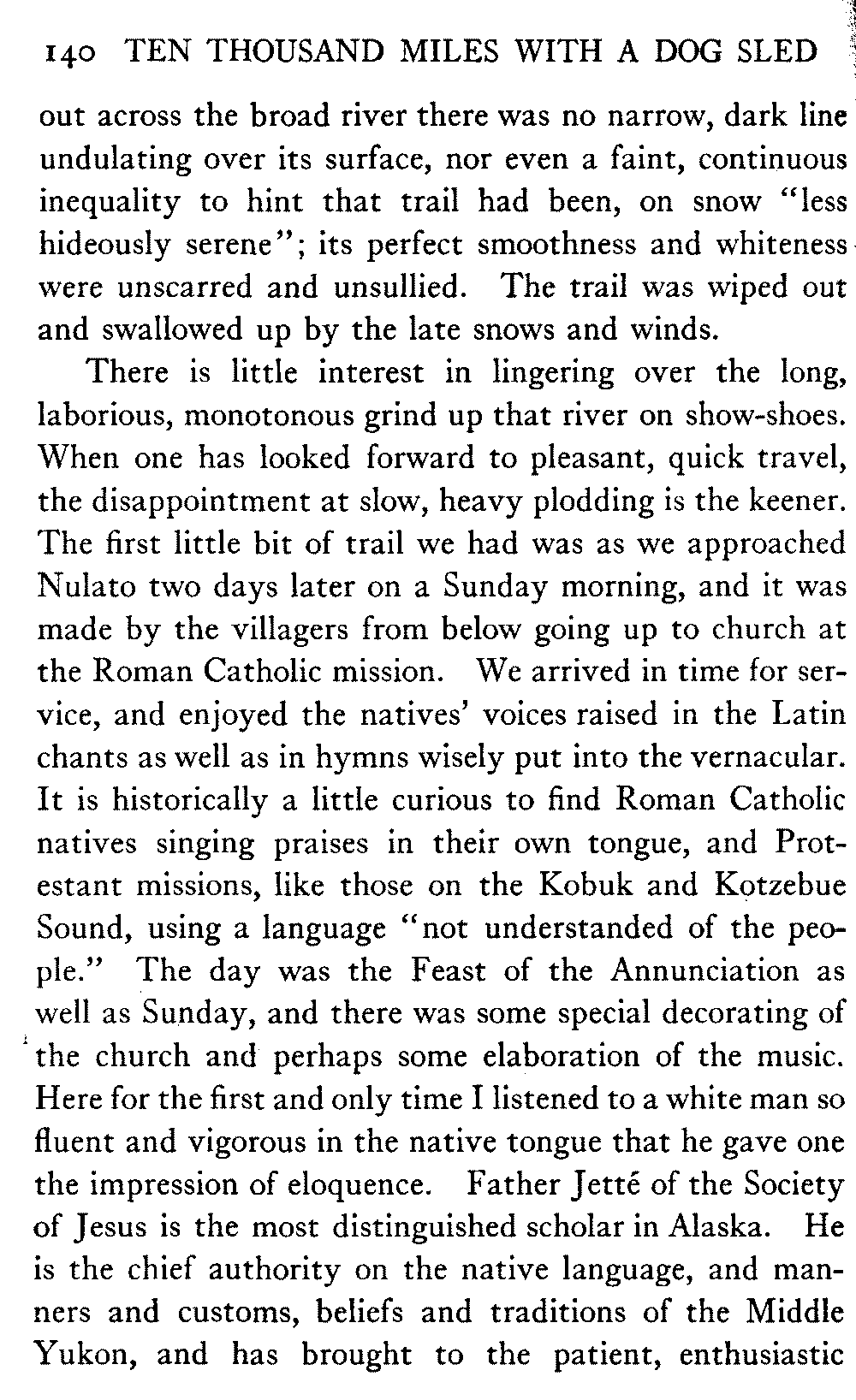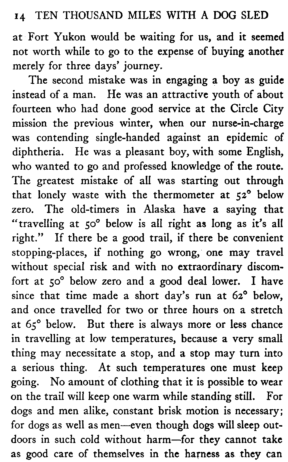 This volume deals with a series of journeys taken with a dog team over the winter trails in the interior of Alaska. The title might have claimed fourteen or fifteen thousand miles instead of ten, for the book was projected and the title adopted some years ago, and the journeys have continued. But ten thousand is a good round titular number, and is none the worse for being well within the mark.