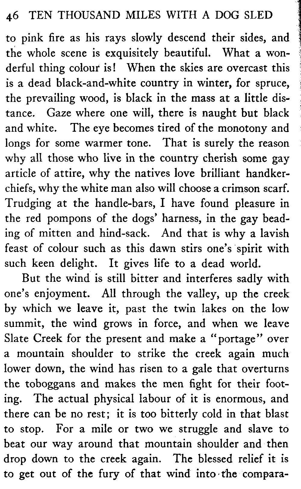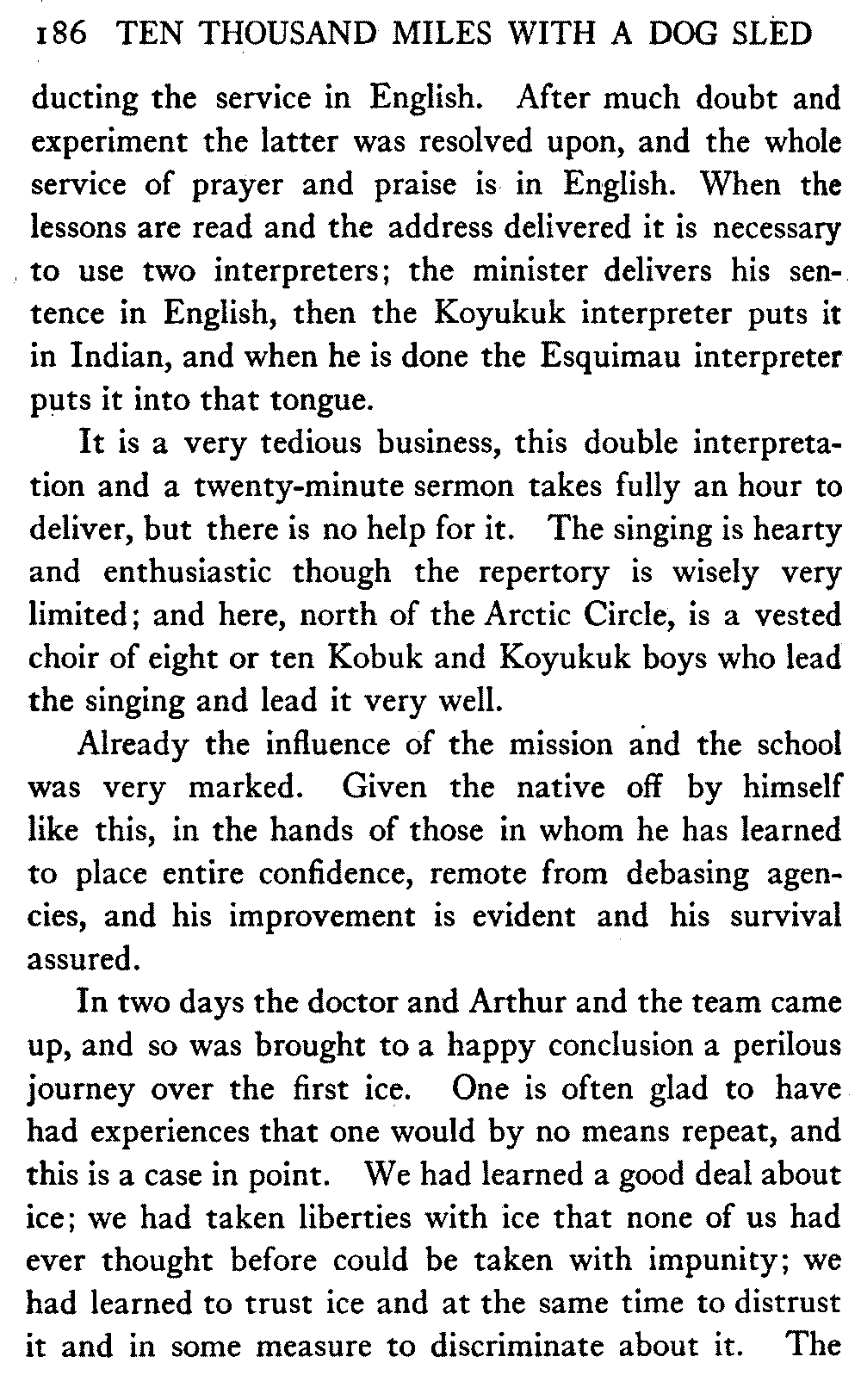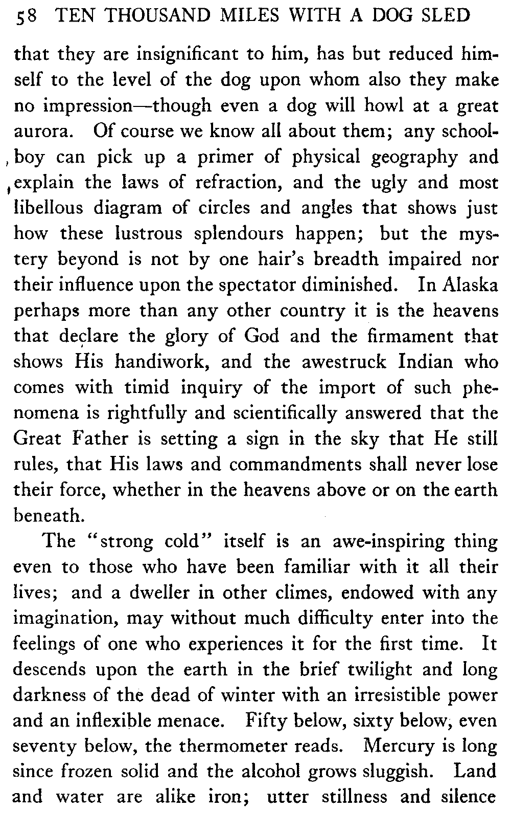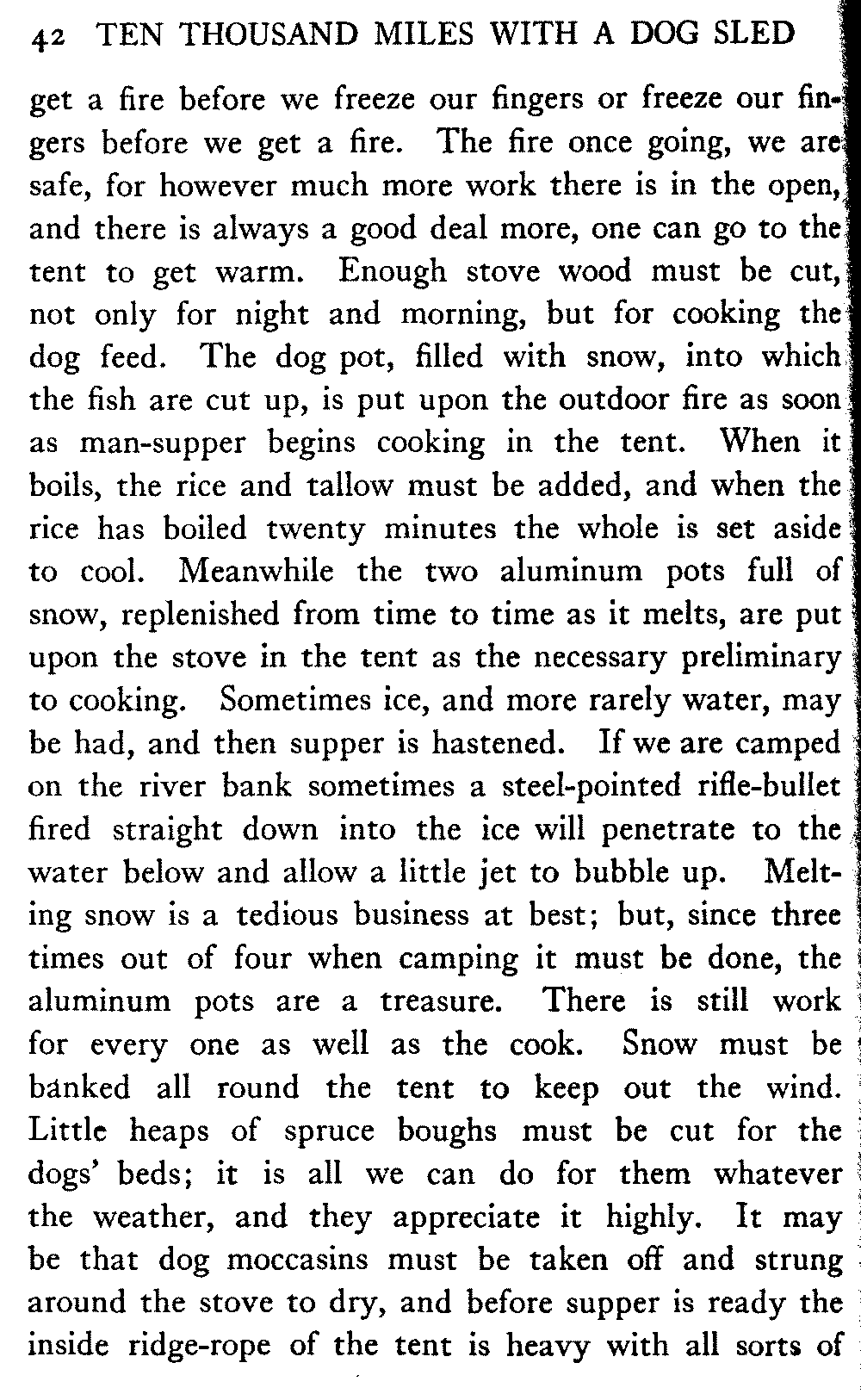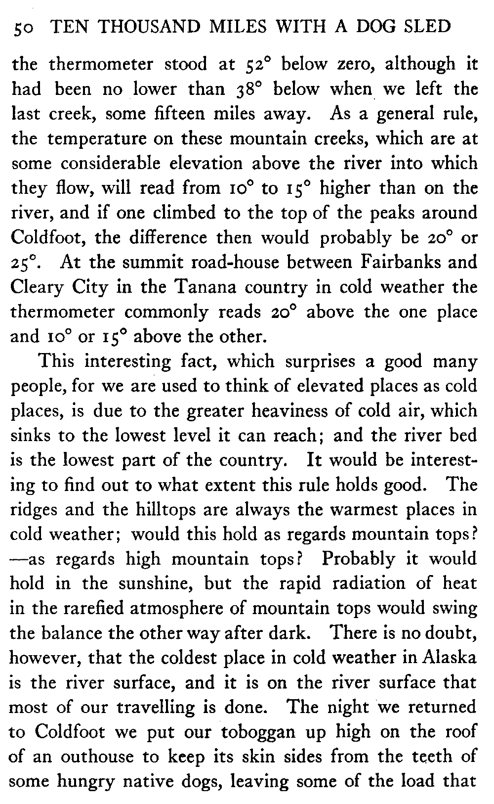 This volume deals with a series of journeys taken with a dog team over the winter trails in the interior of Alaska. The title might have claimed fourteen or fifteen thousand miles instead of ten, for the book was projected and the title adopted some years ago, and the journeys have continued. But ten thousand is a good round titular number, and is none the worse for being well within the mark.