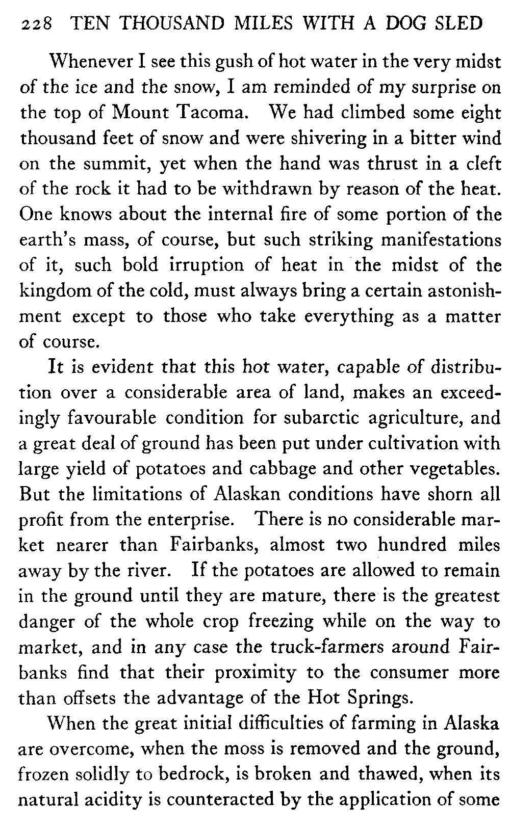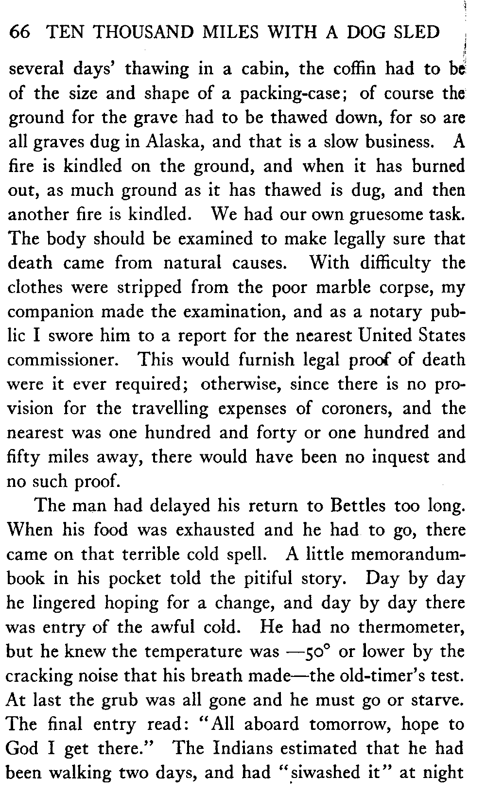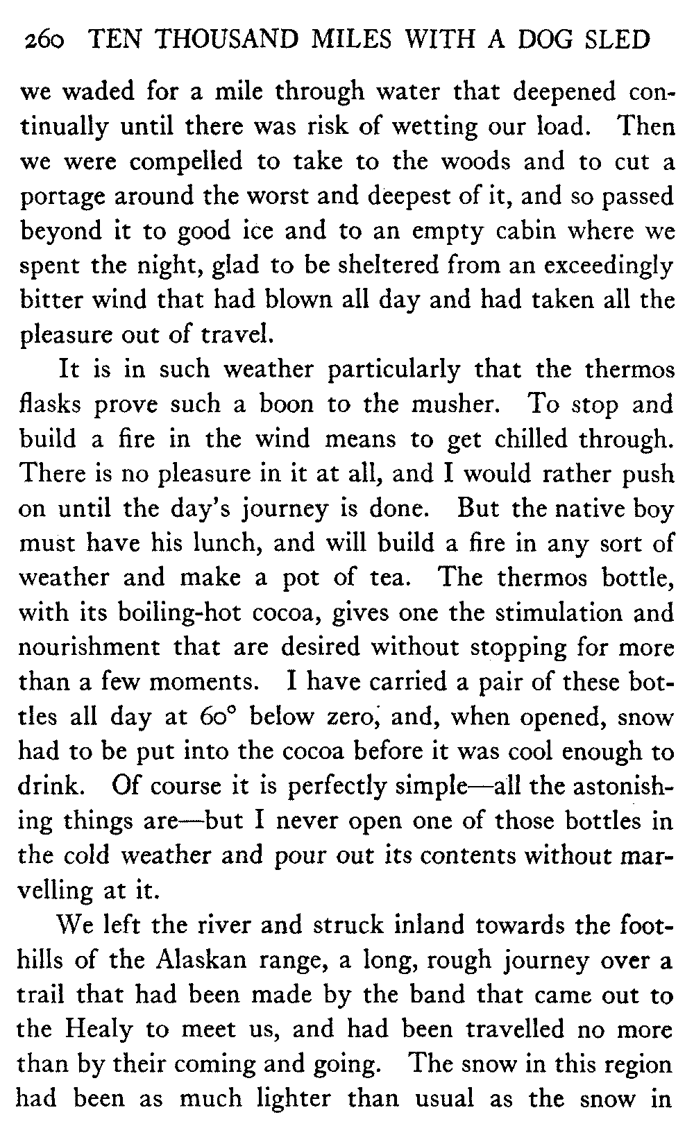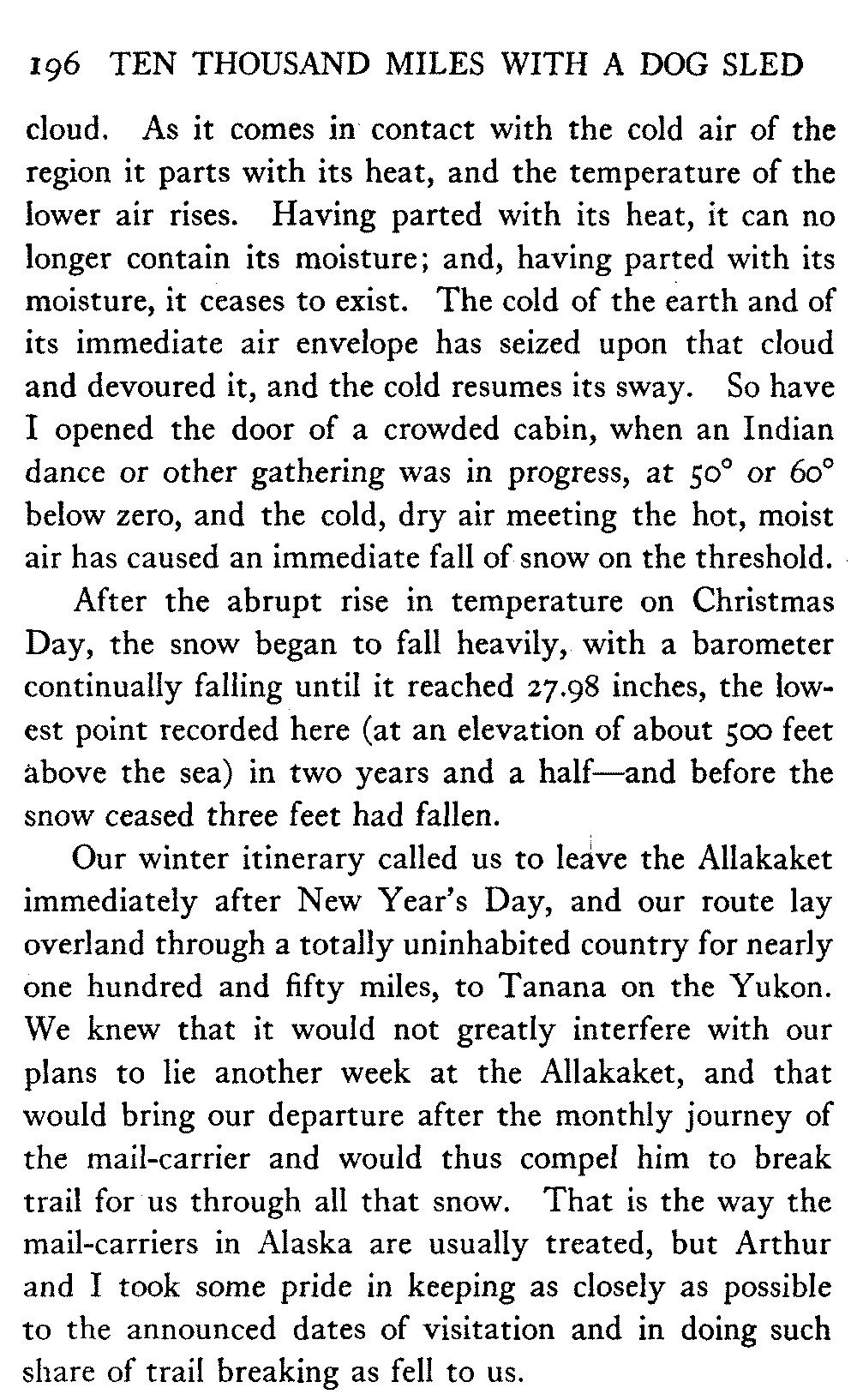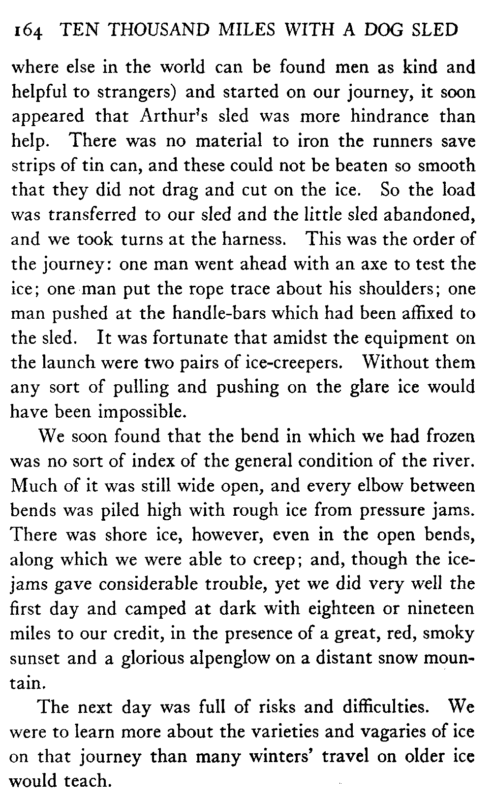 This volume deals with a series of journeys taken with a dog team over the winter trails in the interior of Alaska. The title might have claimed fourteen or fifteen thousand miles instead of ten, for the book was projected and the title adopted some years ago, and the journeys have continued. But ten thousand is a good round titular number, and is none the worse for being well within the mark.