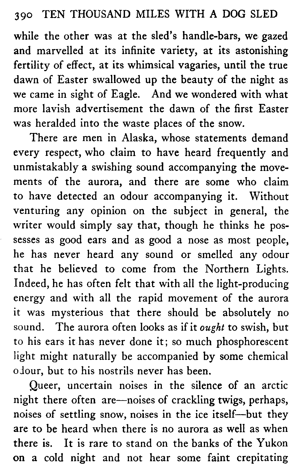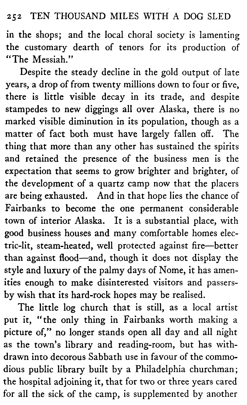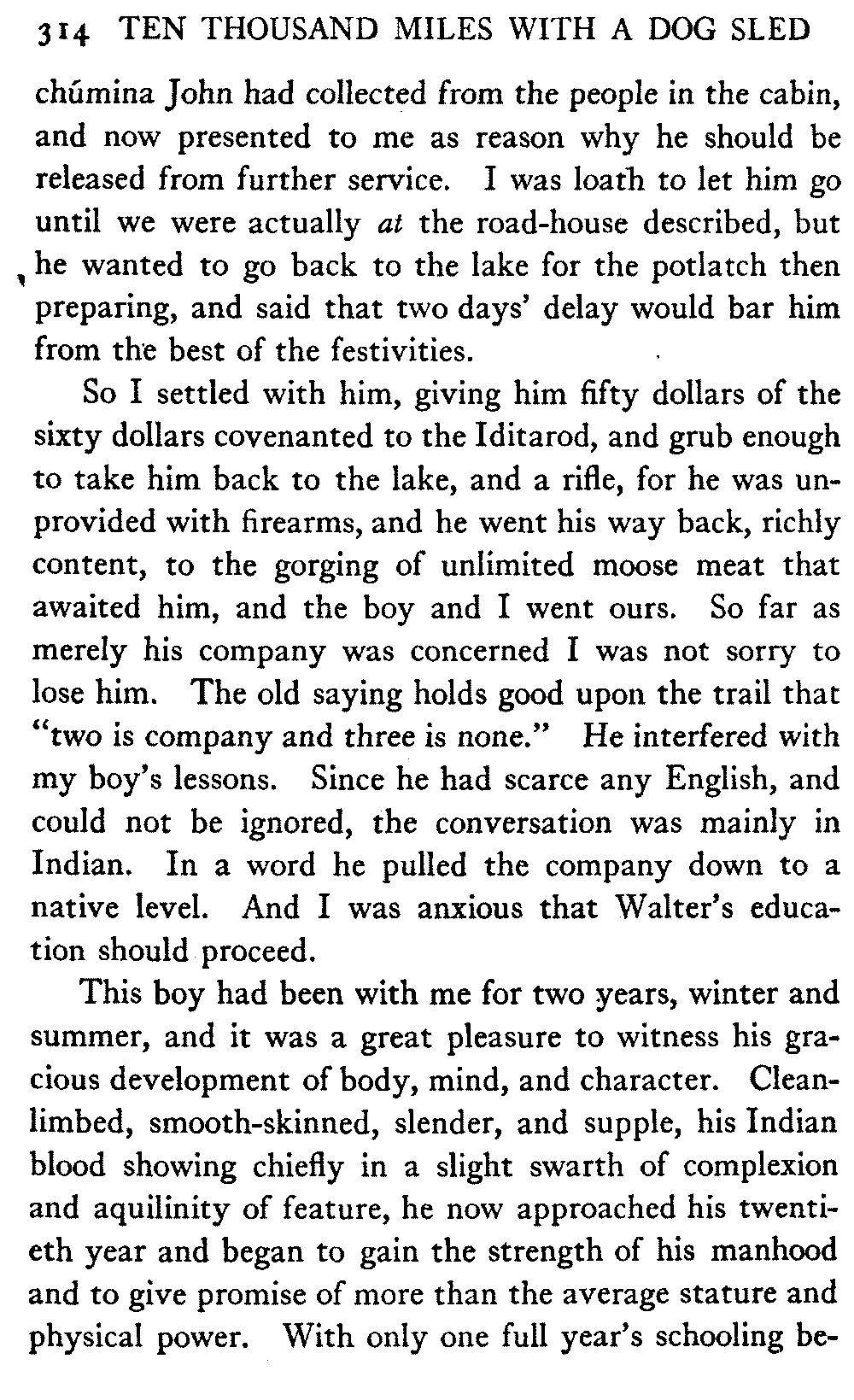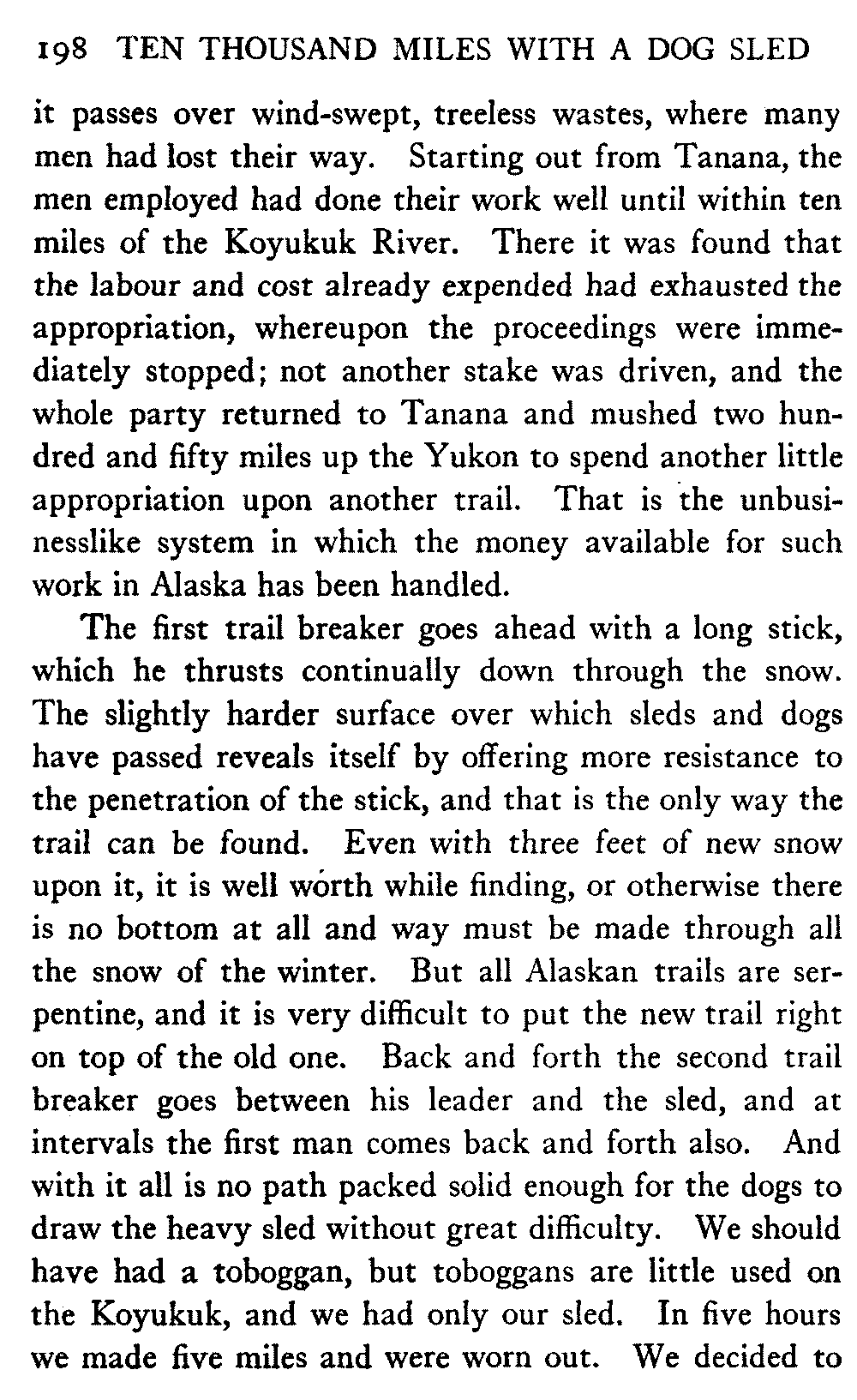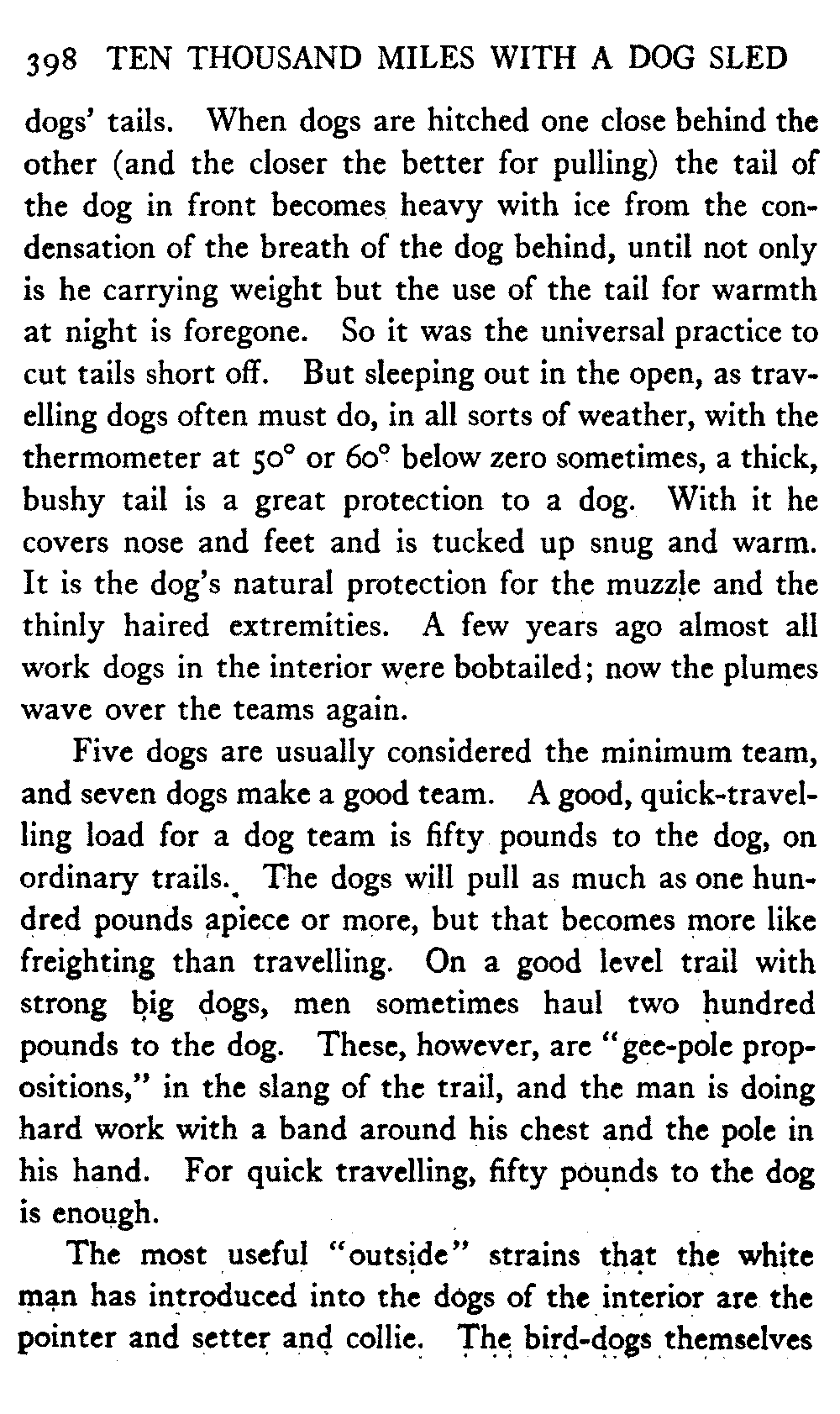 This volume deals with a series of journeys taken with a dog team over the winter trails in the interior of Alaska. The title might have claimed fourteen or fifteen thousand miles instead of ten, for the book was projected and the title adopted some years ago, and the journeys have continued. But ten thousand is a good round titular number, and is none the worse for being well within the mark.