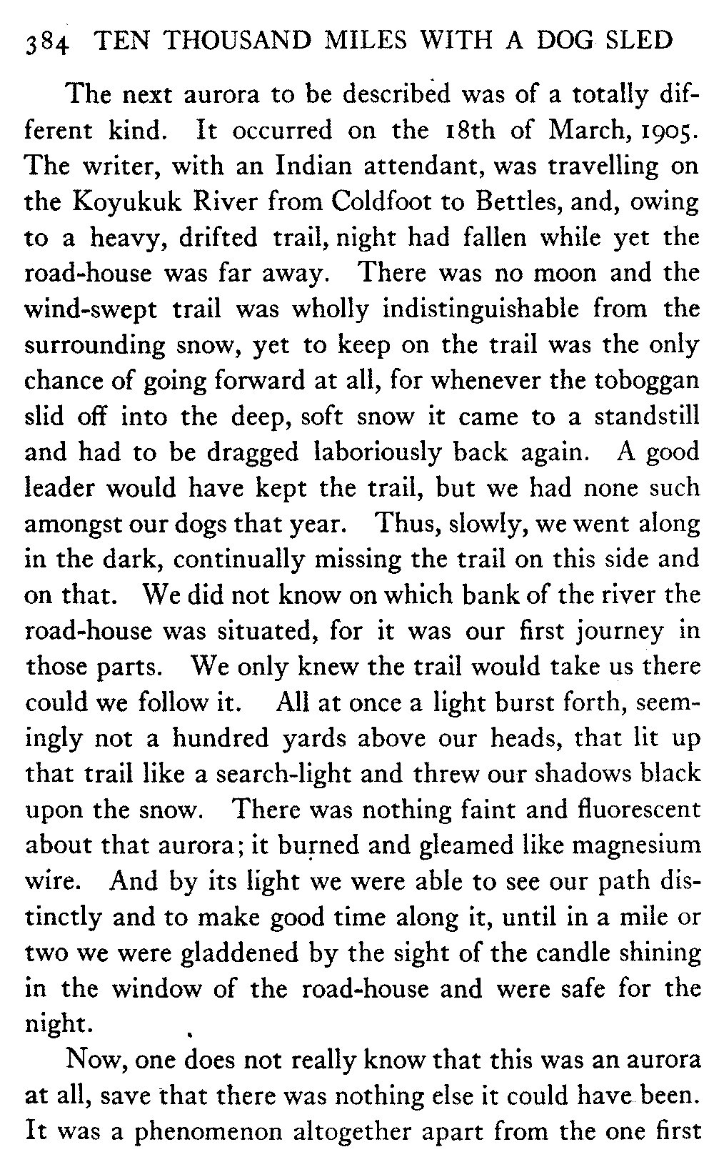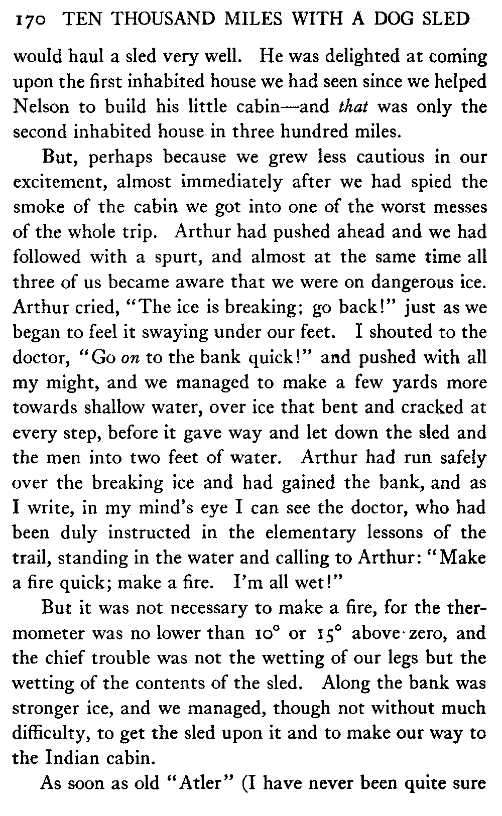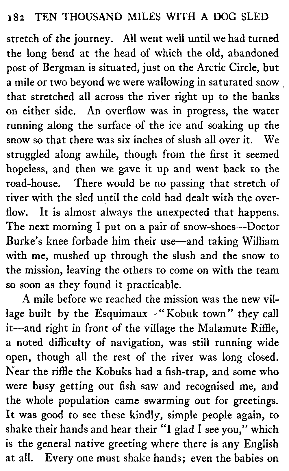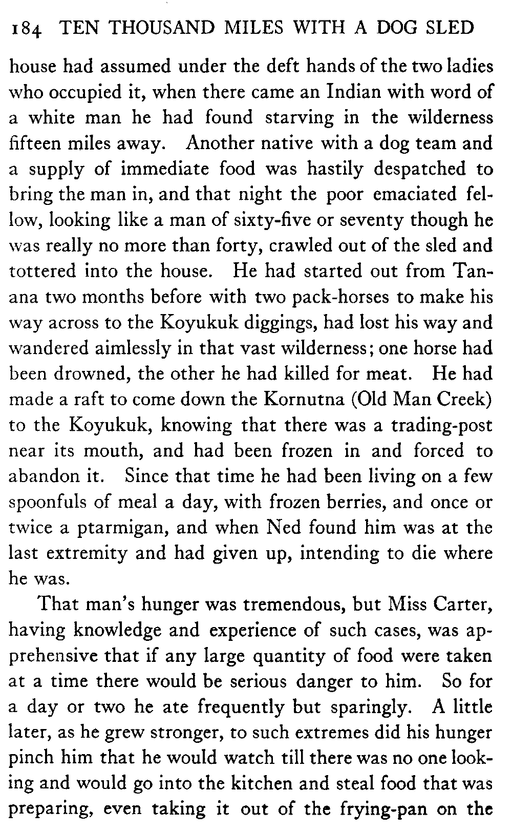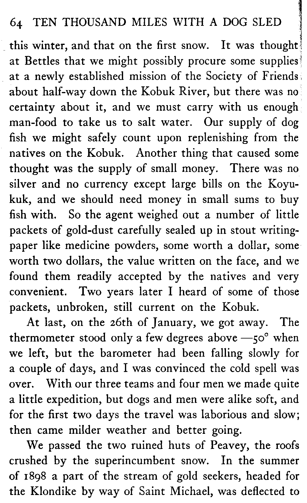This volume deals with a series of journeys taken with a dog team over the winter trails in the interior of Alaska. The title might have claimed fourteen or fifteen thousand miles instead of ten, for the book was projected and the title adopted some years ago, and the journeys have continued. But ten thousand is a good round titular number, and is none the worse for being well within the mark.