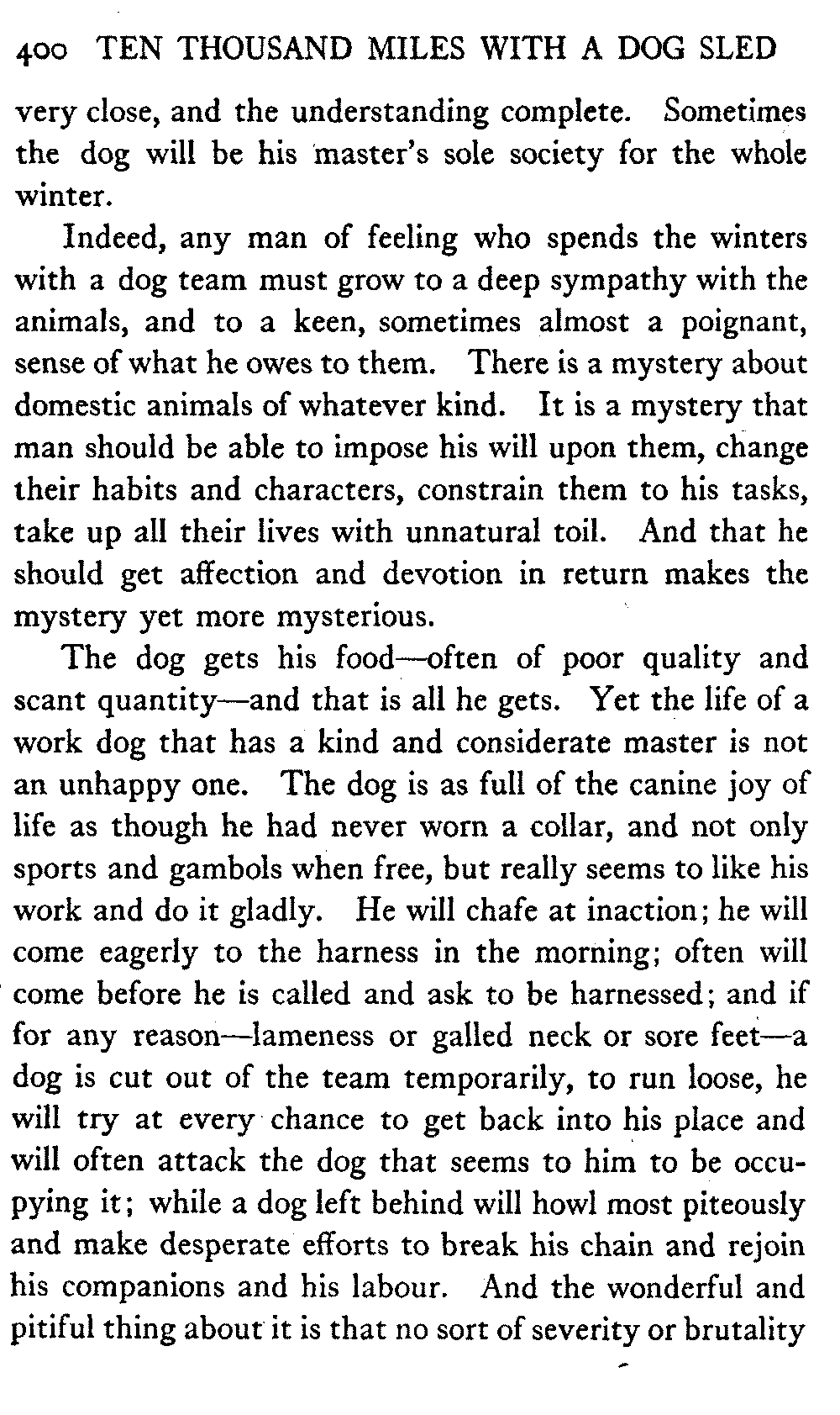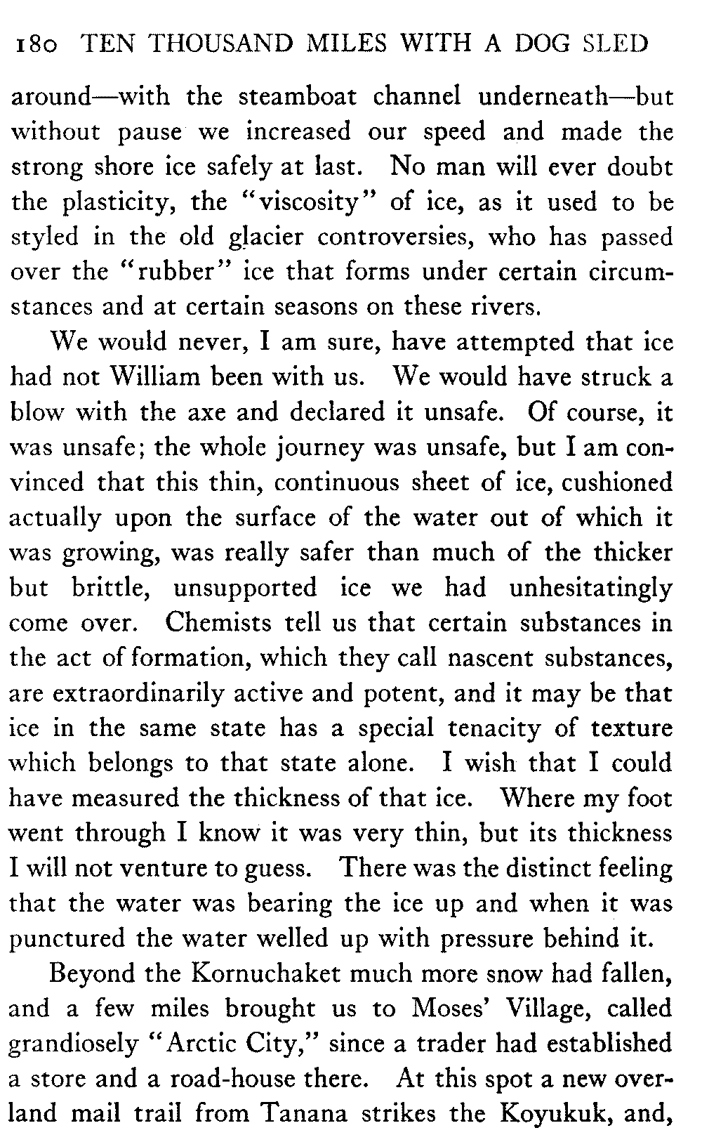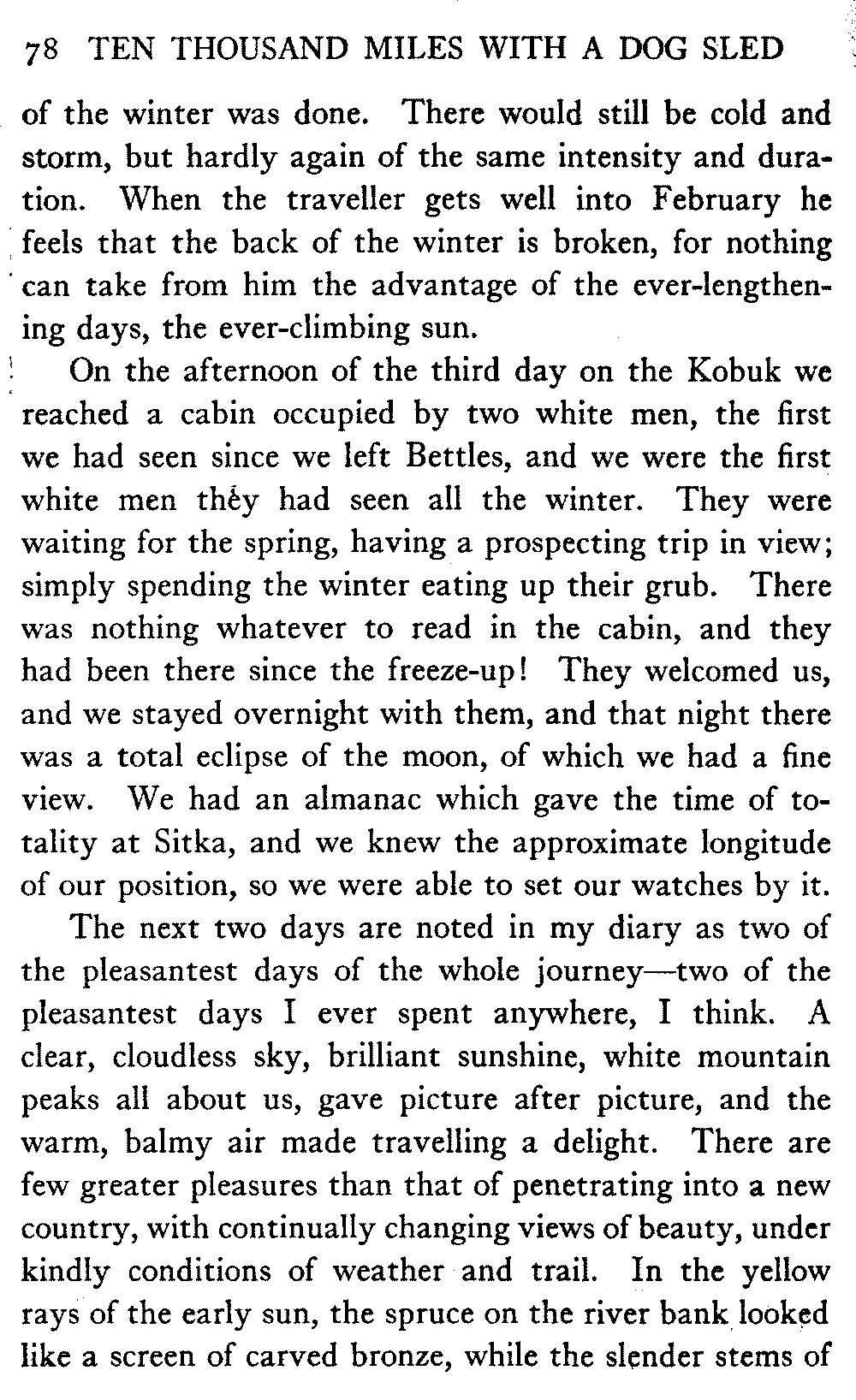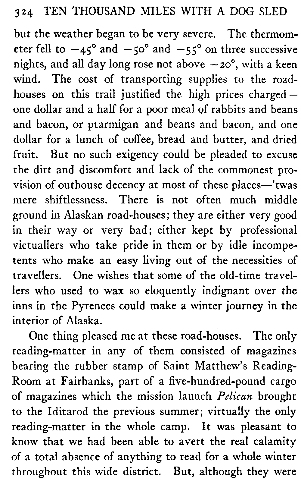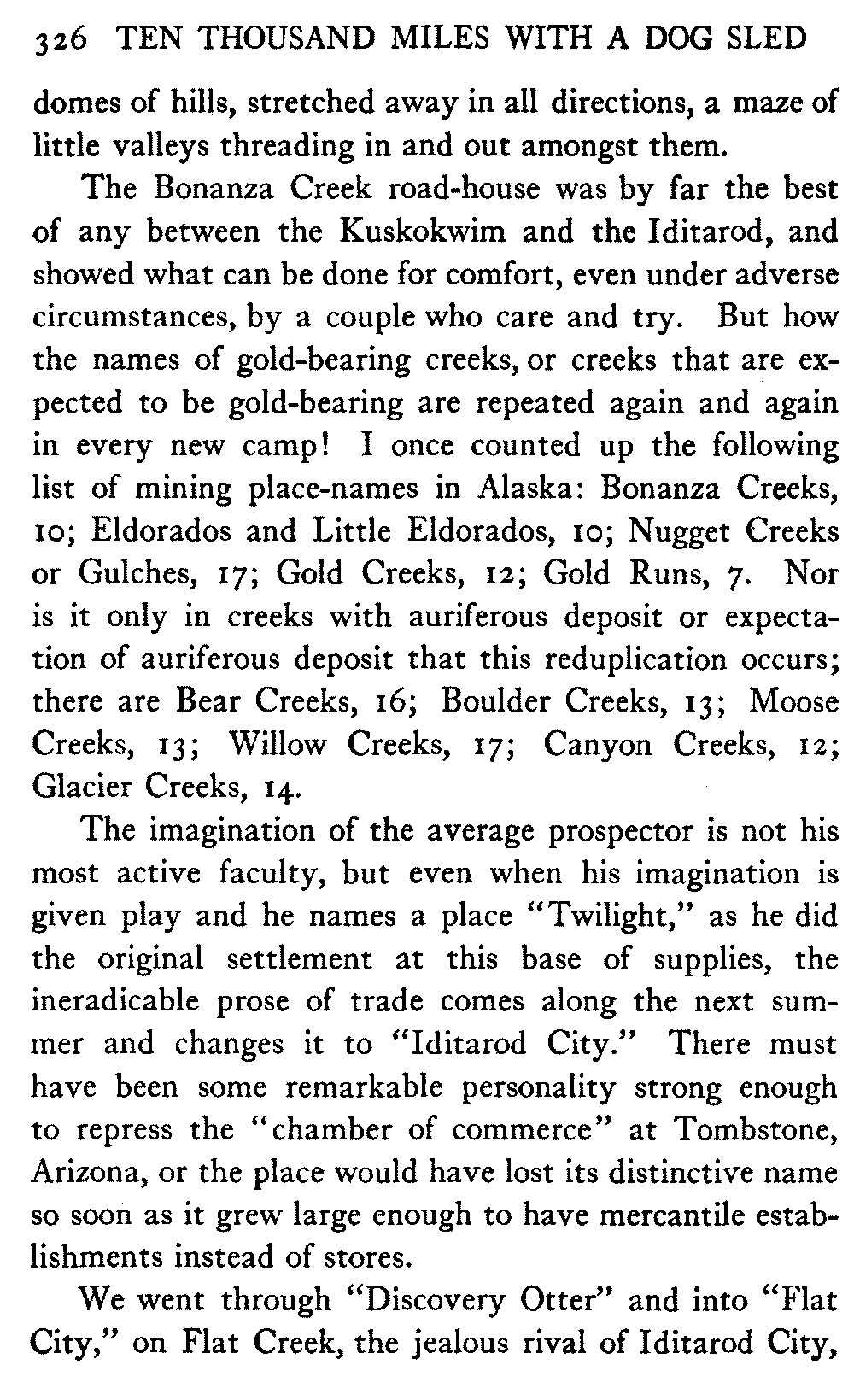 This volume deals with a series of journeys taken with a dog team over the winter trails in the interior of Alaska. The title might have claimed fourteen or fifteen thousand miles instead of ten, for the book was projected and the title adopted some years ago, and the journeys have continued. But ten thousand is a good round titular number, and is none the worse for being well within the mark.