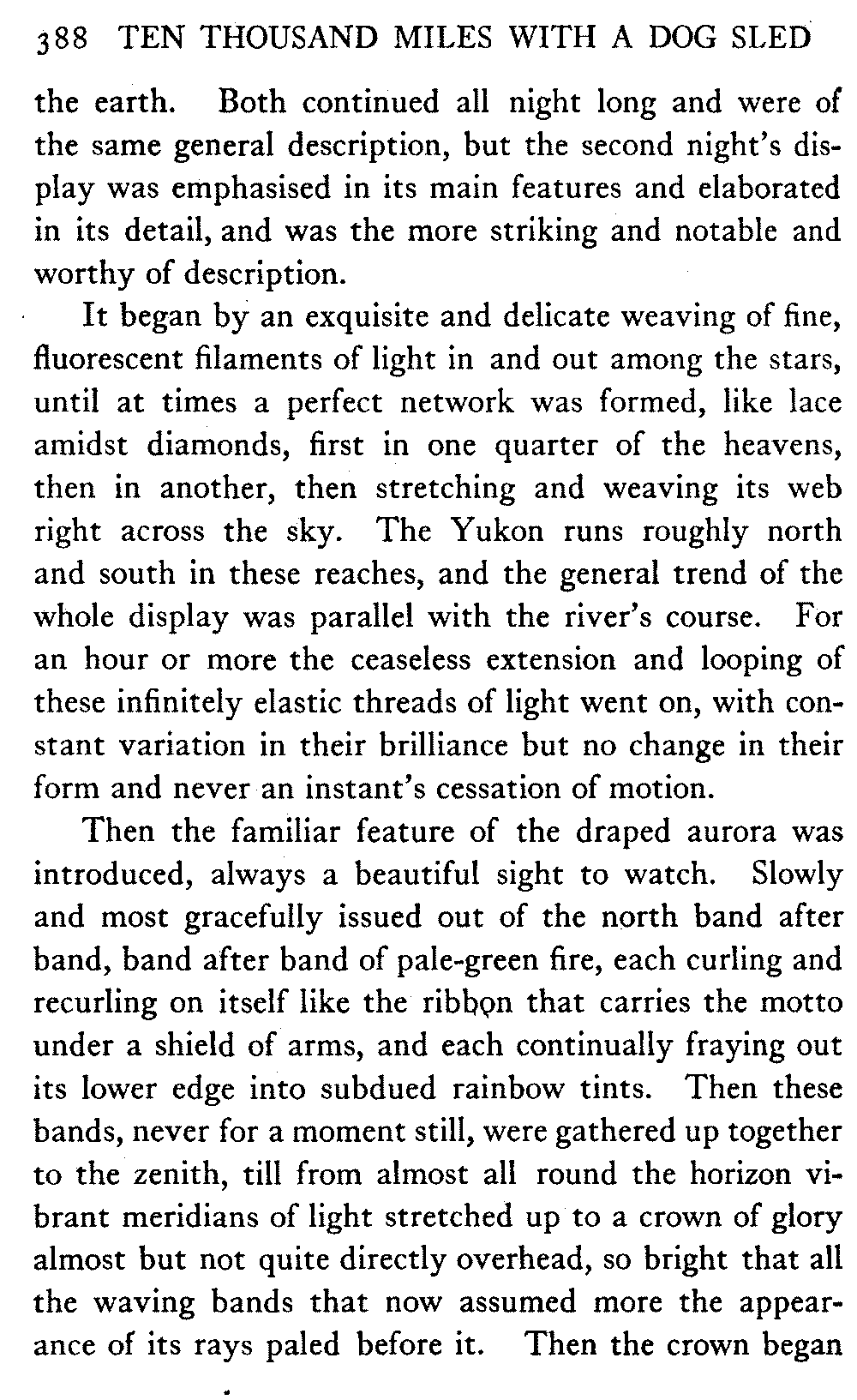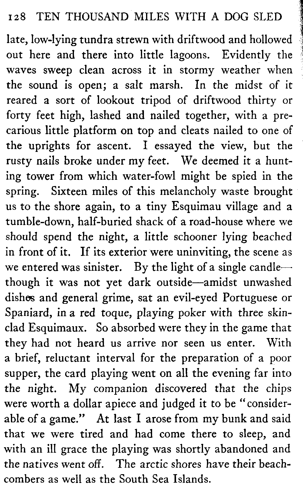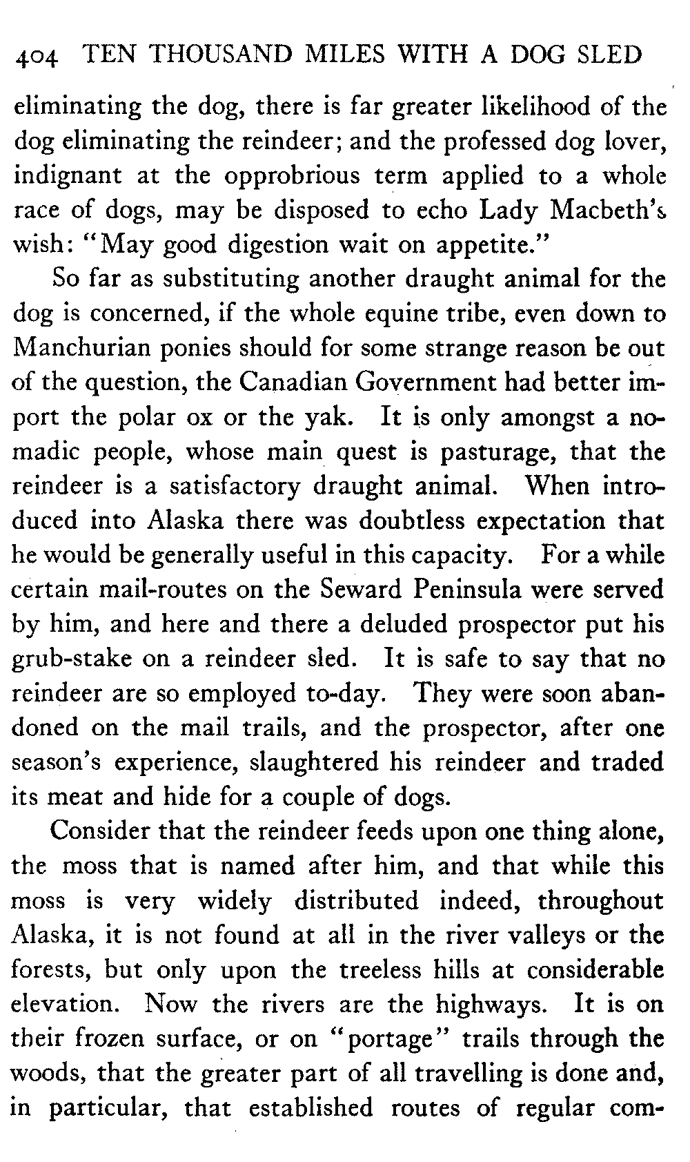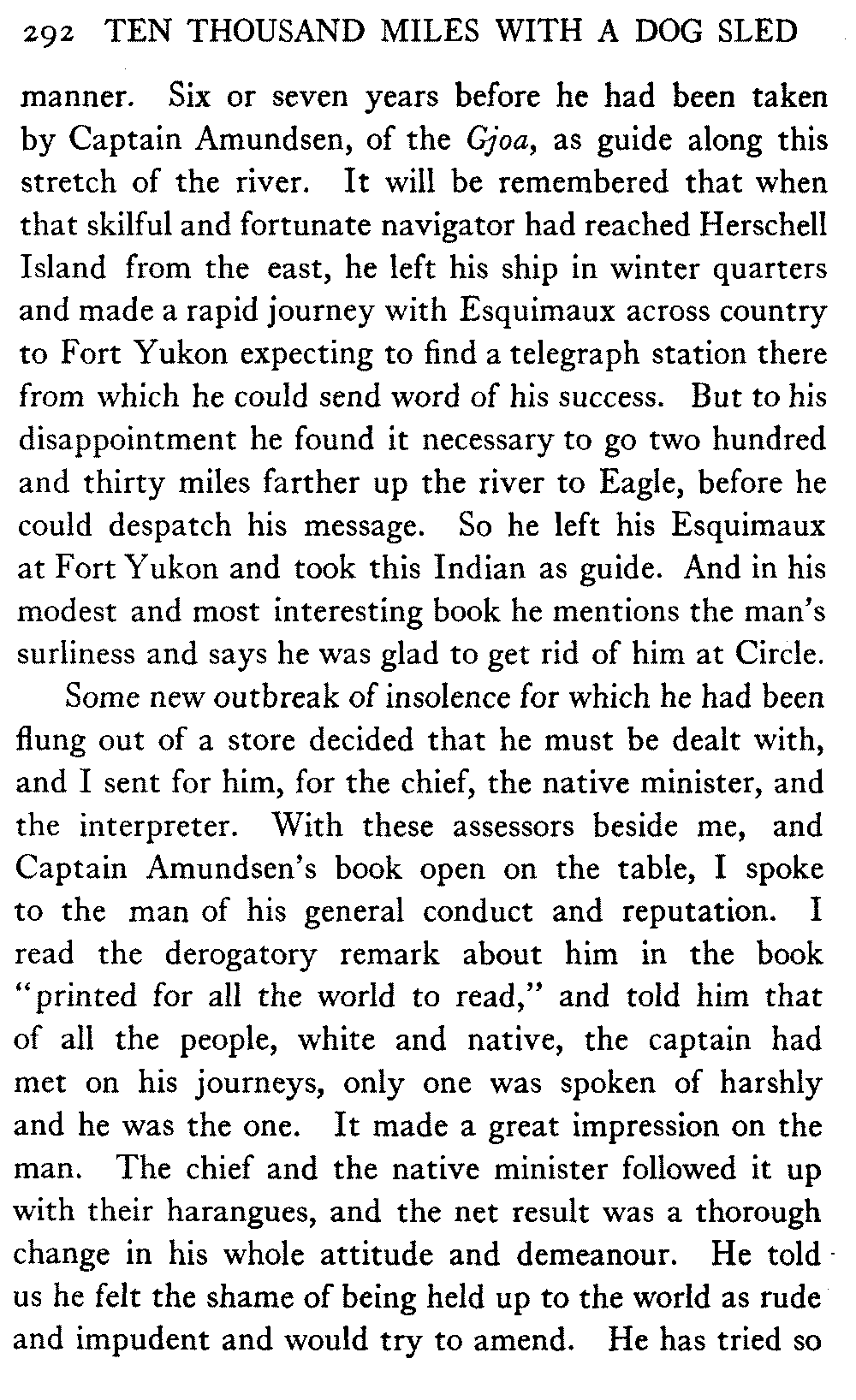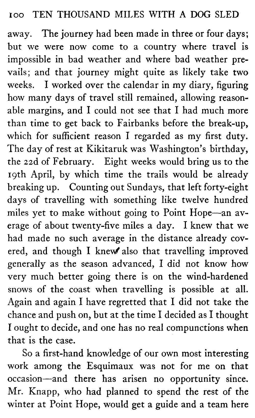 This volume deals with a series of journeys taken with a dog team over the winter trails in the interior of Alaska. The title might have claimed fourteen or fifteen thousand miles instead of ten, for the book was projected and the title adopted some years ago, and the journeys have continued. But ten thousand is a good round titular number, and is none the worse for being well within the mark.