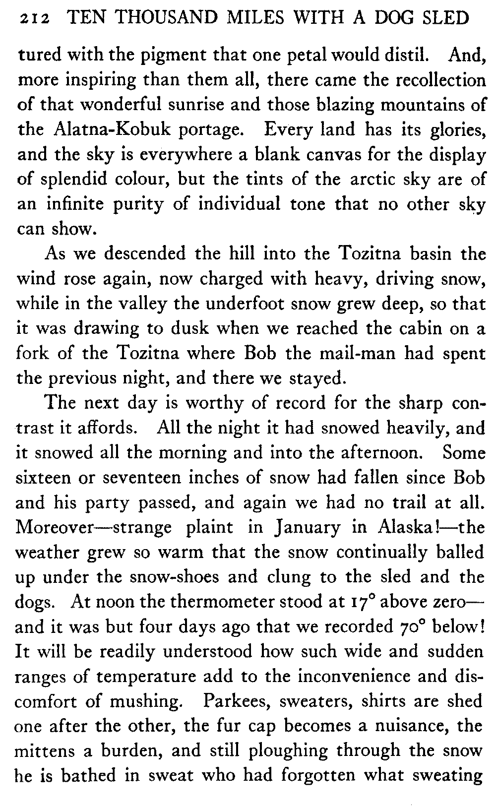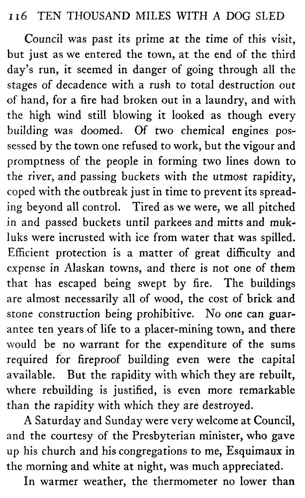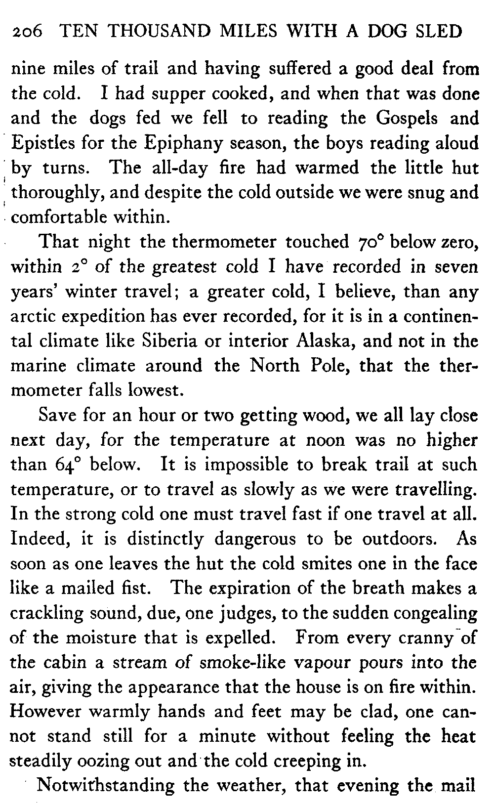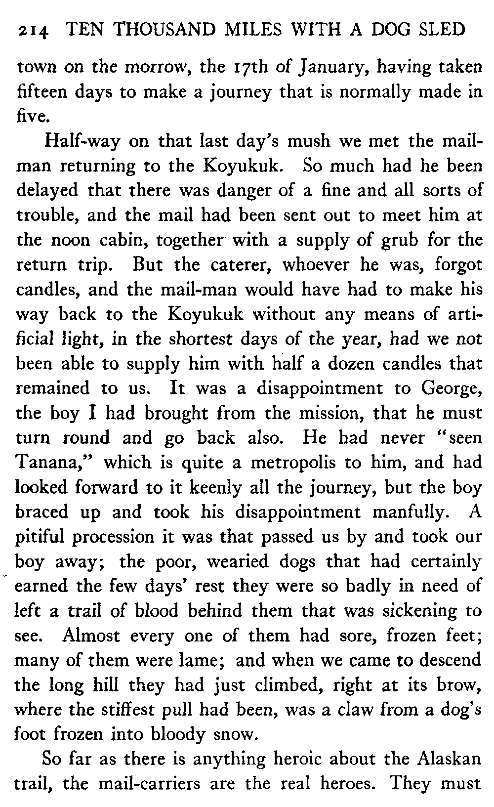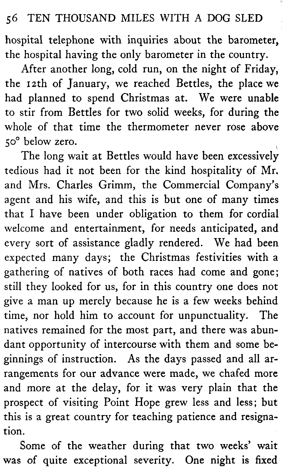 This volume deals with a series of journeys taken with a dog team over the winter trails in the interior of Alaska. The title might have claimed fourteen or fifteen thousand miles instead of ten, for the book was projected and the title adopted some years ago, and the journeys have continued. But ten thousand is a good round titular number, and is none the worse for being well within the mark.