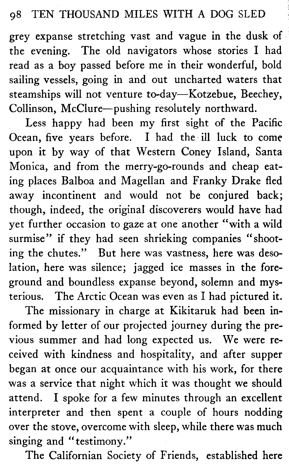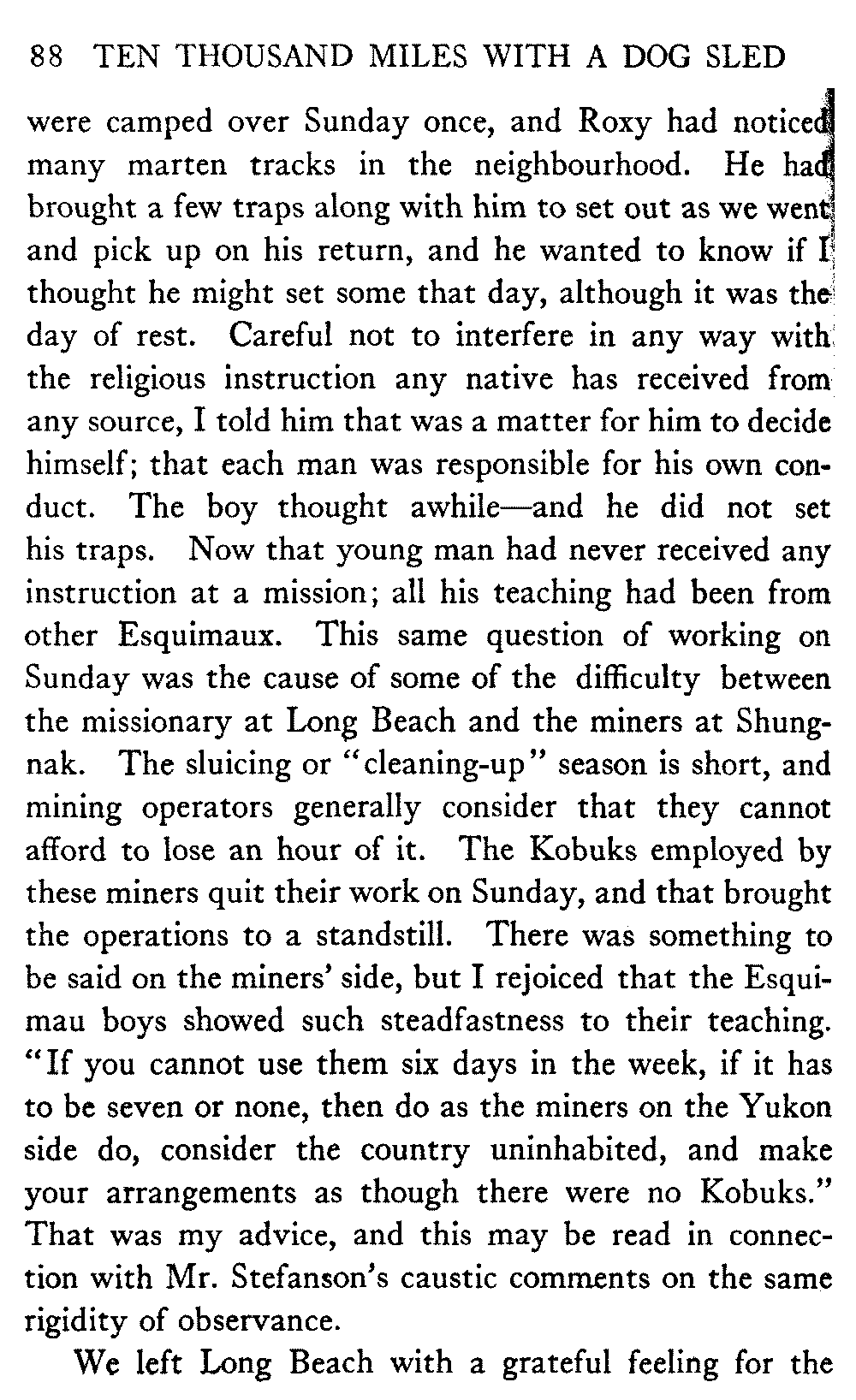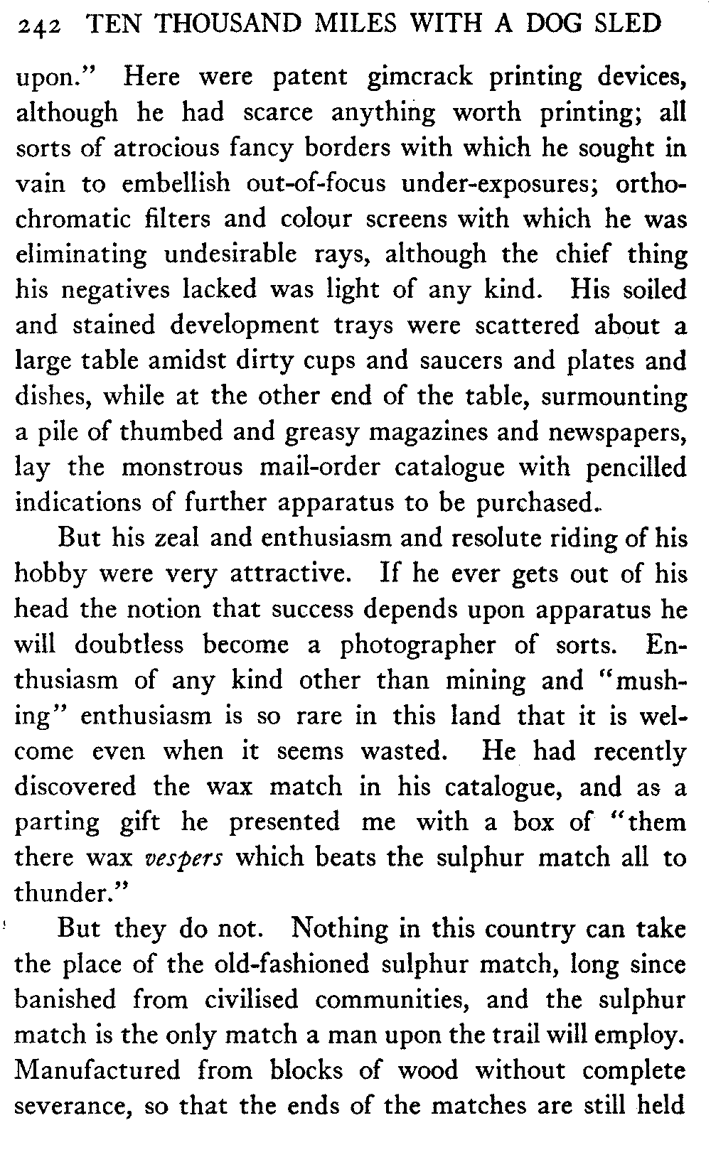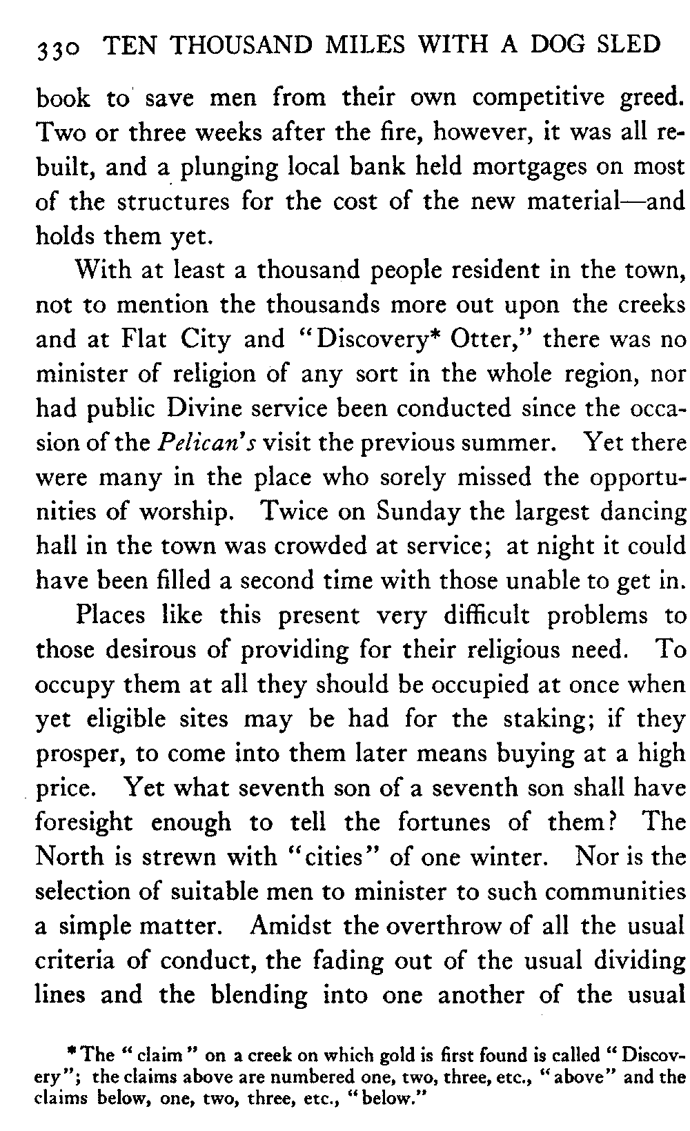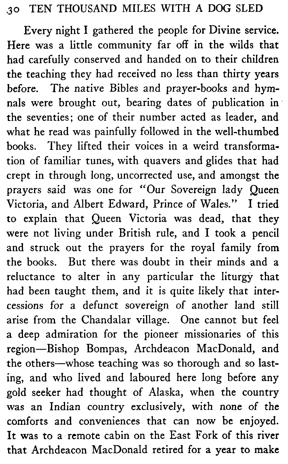 This volume deals with a series of journeys taken with a dog team over the winter trails in the interior of Alaska. The title might have claimed fourteen or fifteen thousand miles instead of ten, for the book was projected and the title adopted some years ago, and the journeys have continued. But ten thousand is a good round titular number, and is none the worse for being well within the mark.