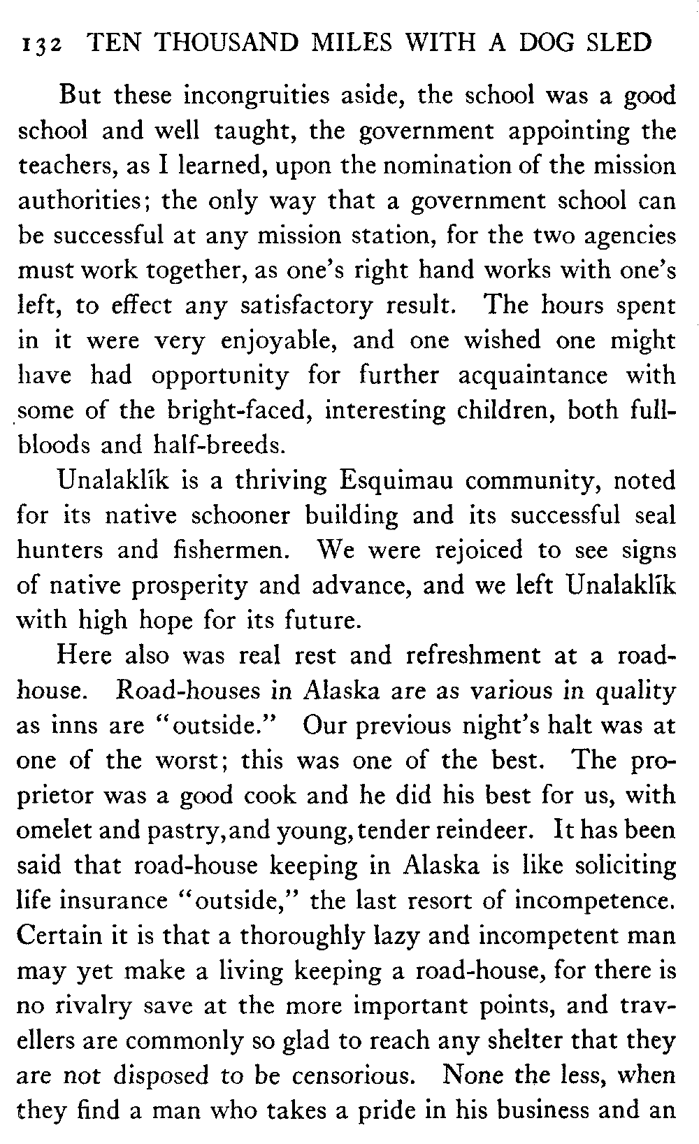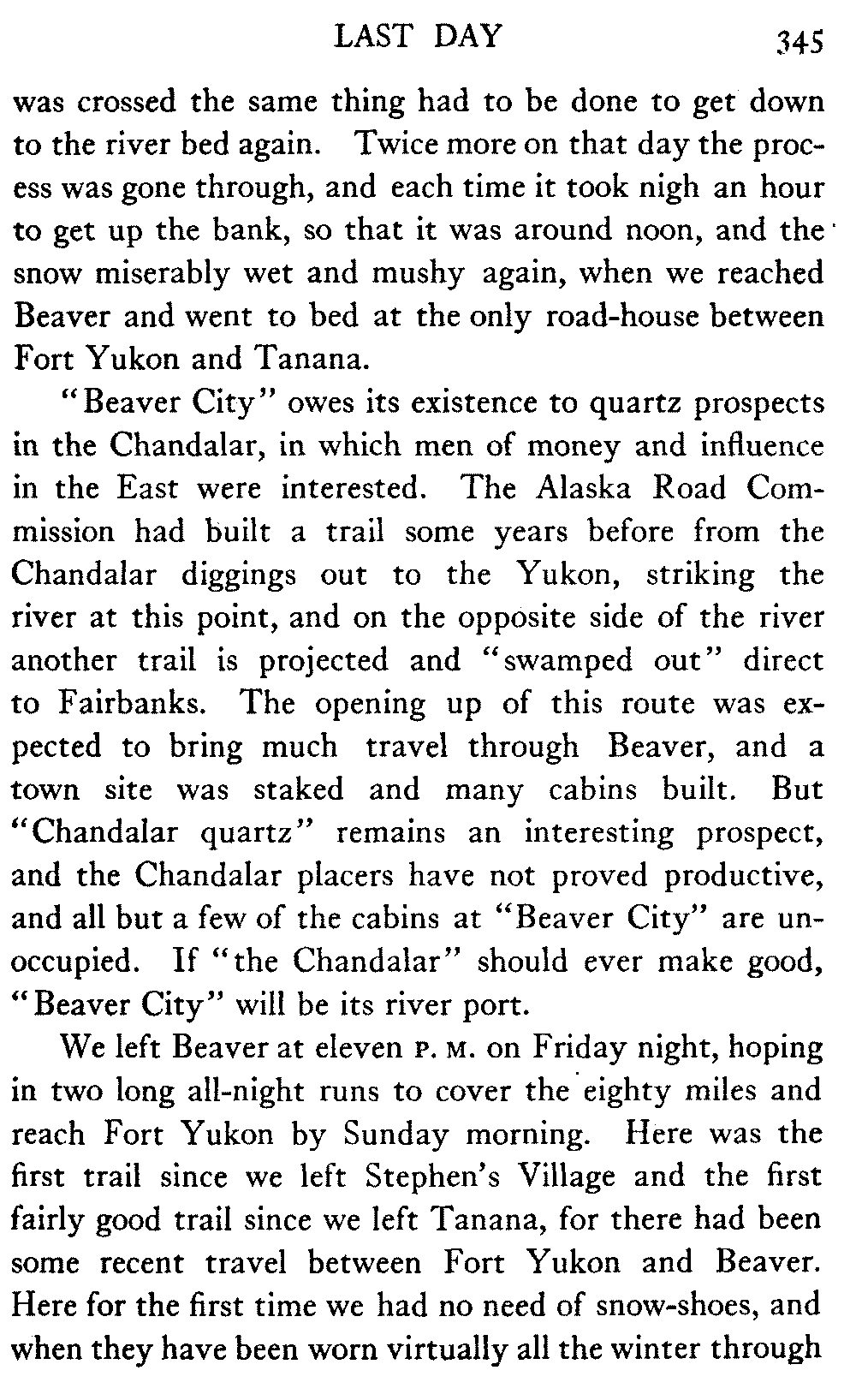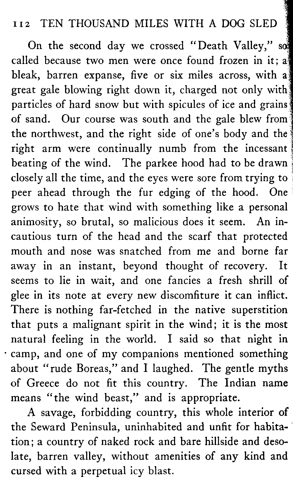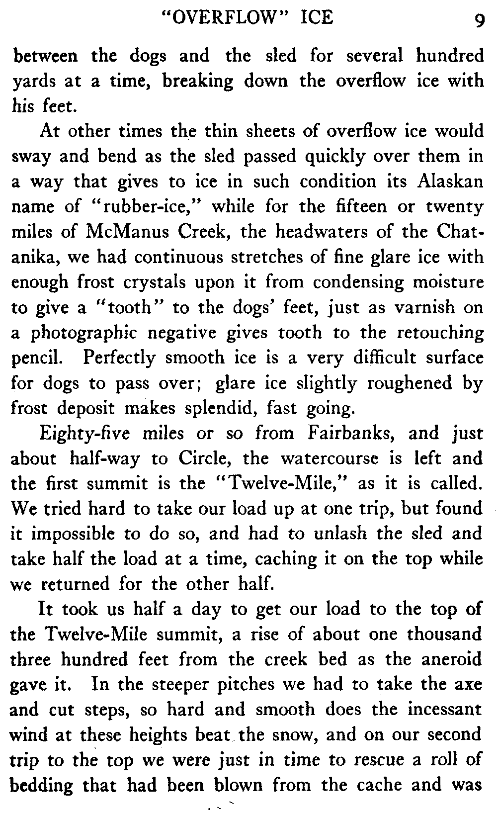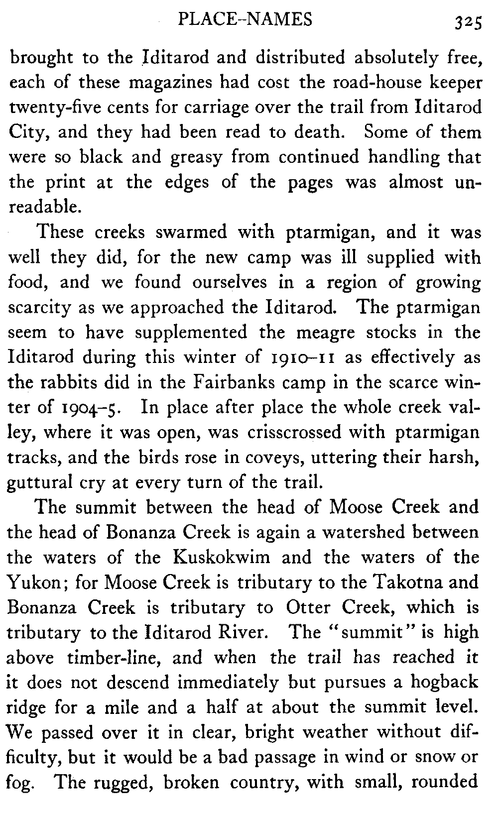 When Alaska is spoken of in this book the interior is meant, in which the writer has travelled almost continuously for the past eight years. The Seward Peninsula is the only other part of the country that the book touches. And as regards summer travel and the summer aspect of the country, there is material for another book should the reception of this one warrant its preparation.