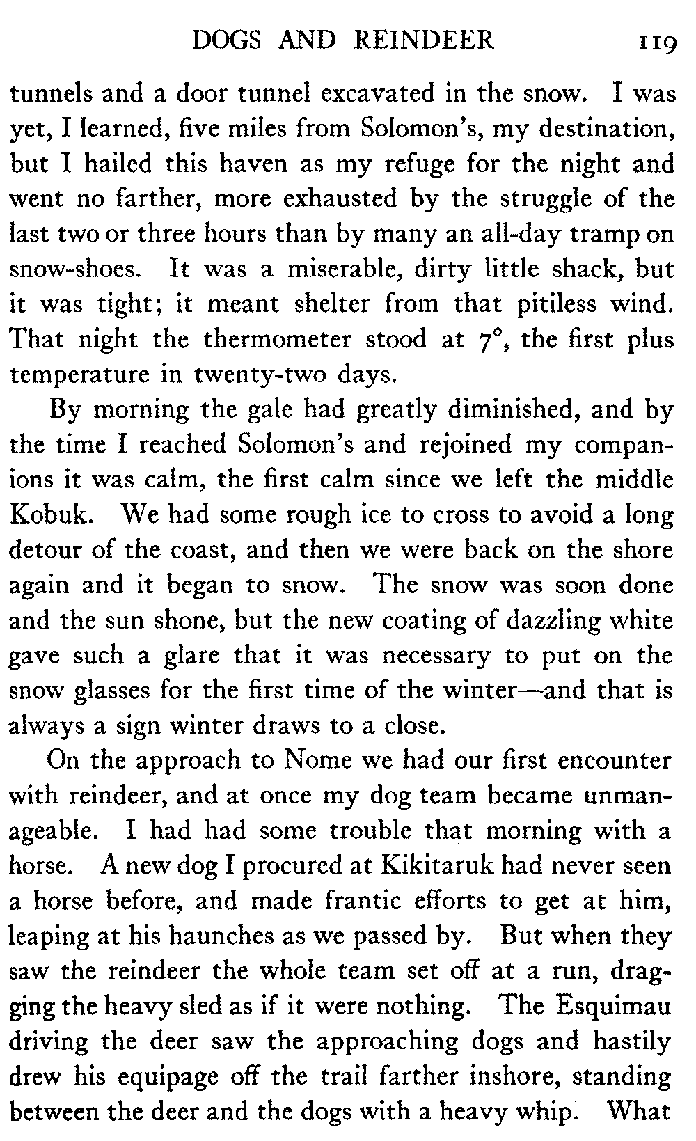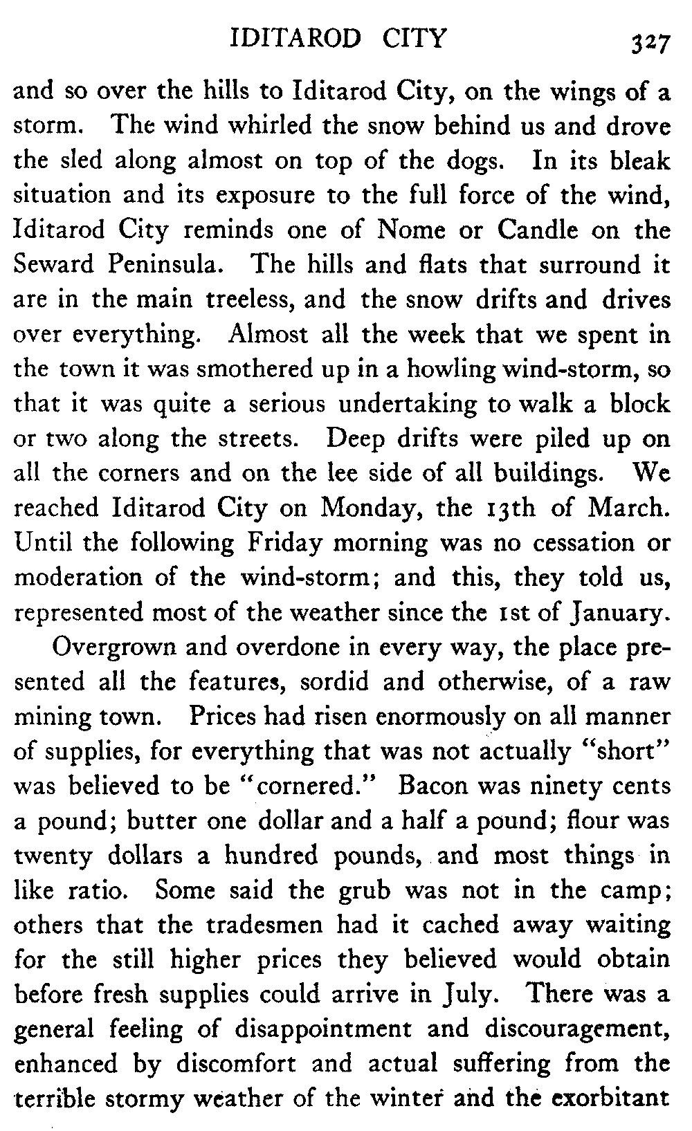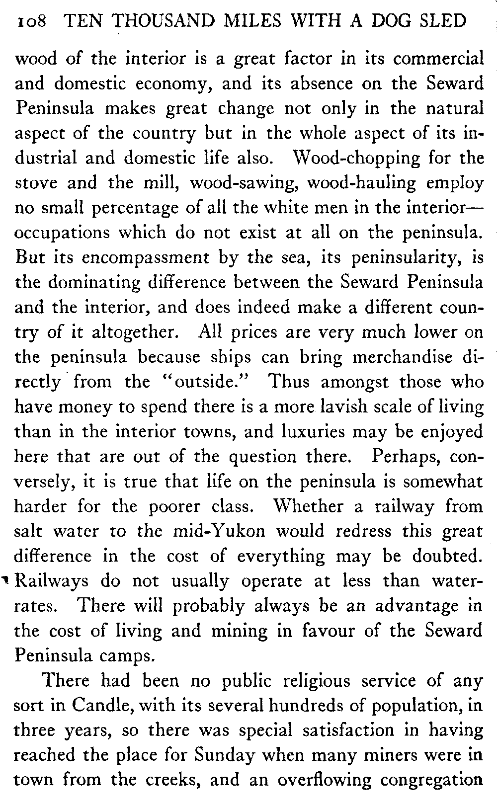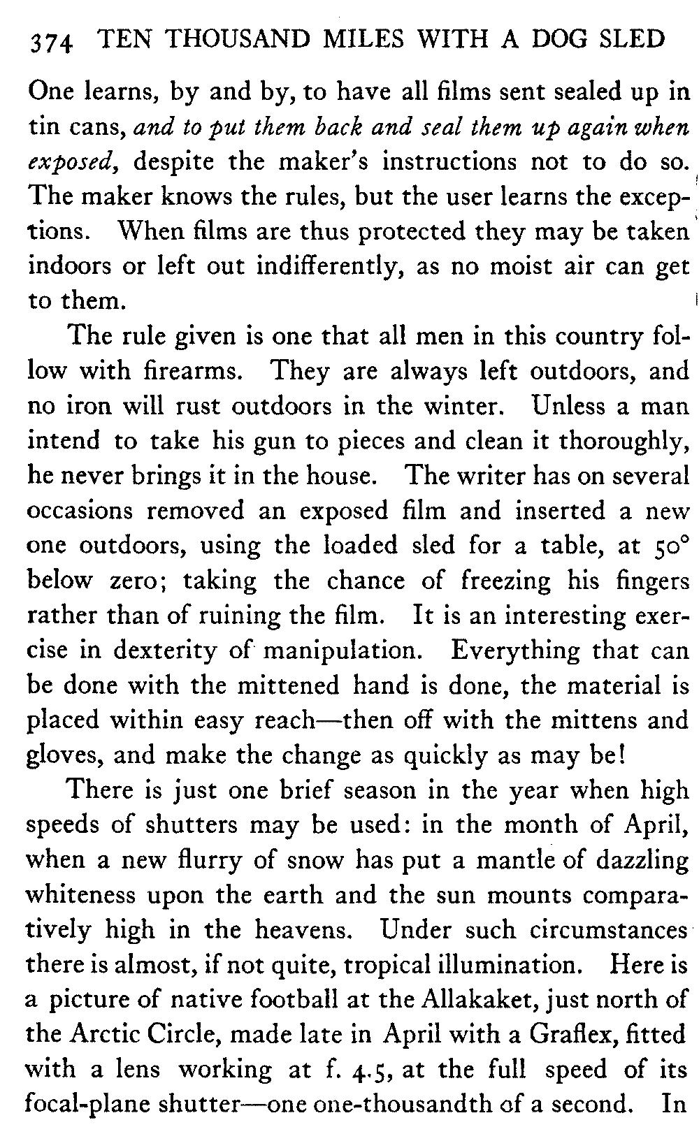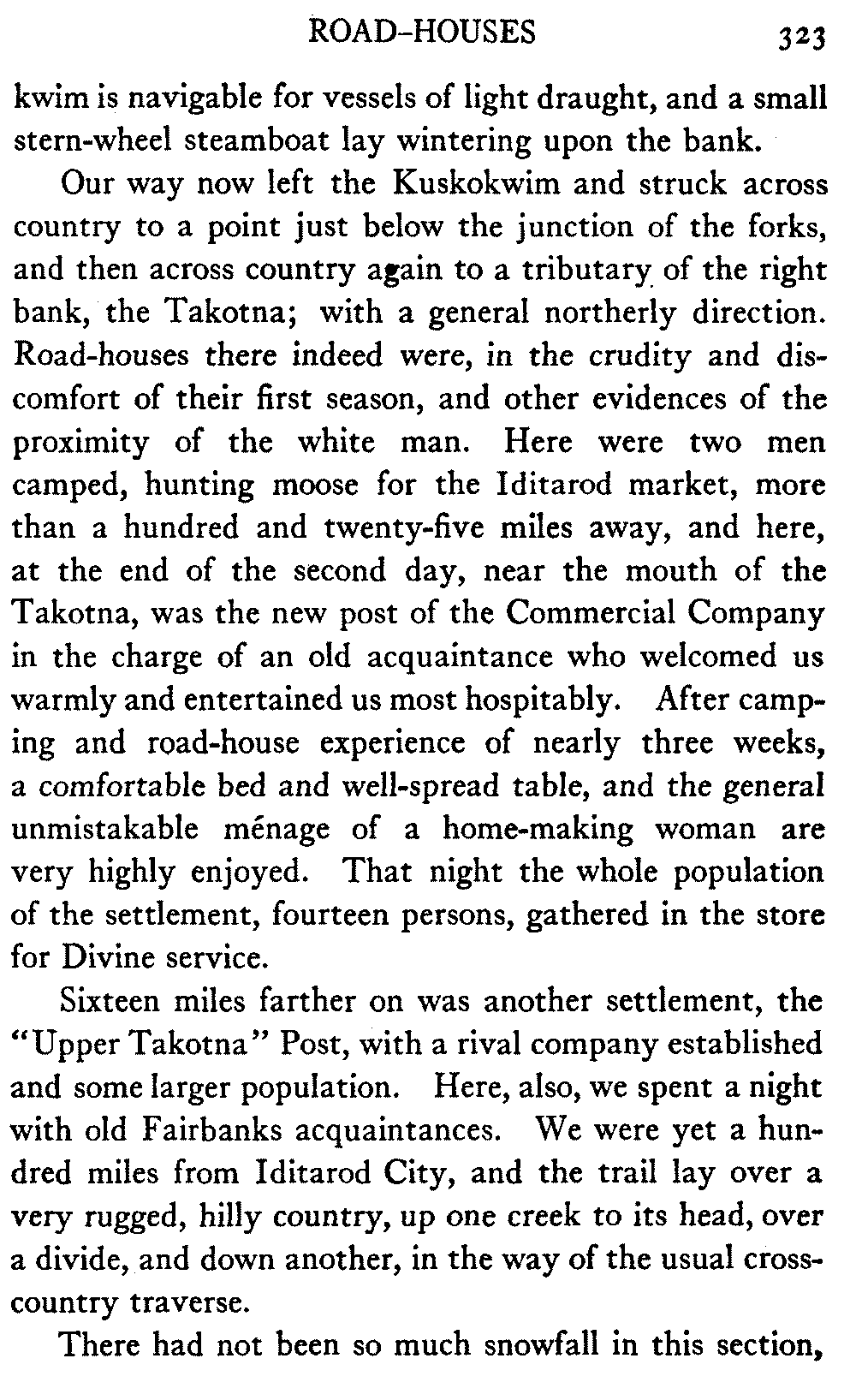 When Alaska is spoken of in this book the interior is meant, in which the writer has travelled almost continuously for the past eight years. The Seward Peninsula is the only other part of the country that the book touches. And as regards summer travel and the summer aspect of the country, there is material for another book should the reception of this one warrant its preparation.