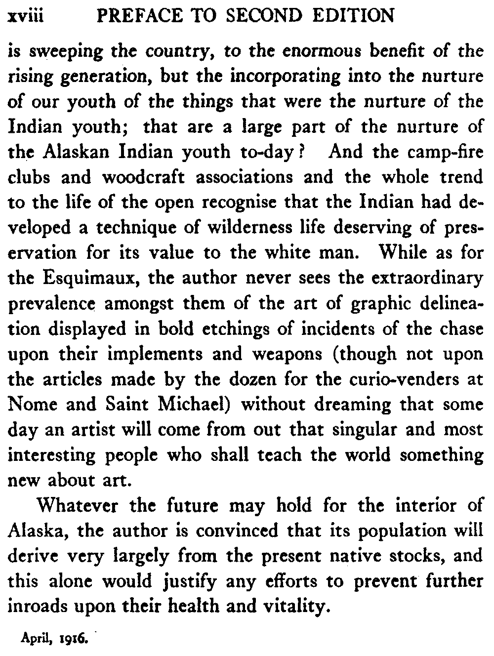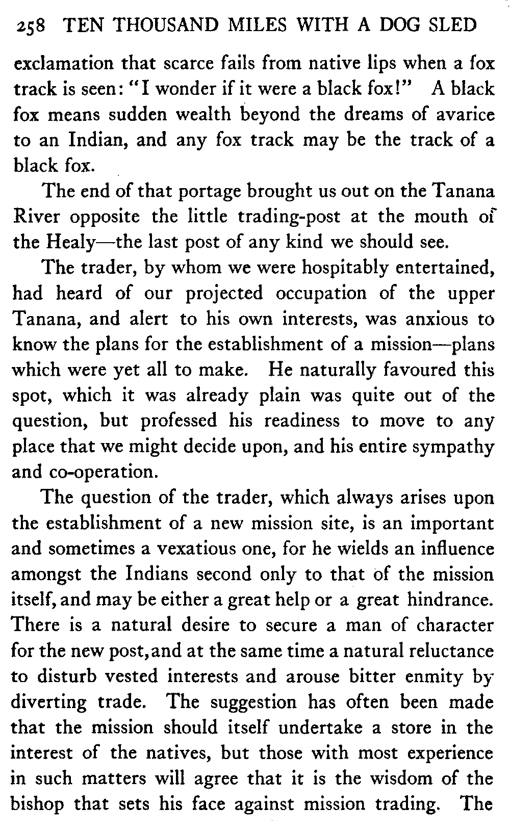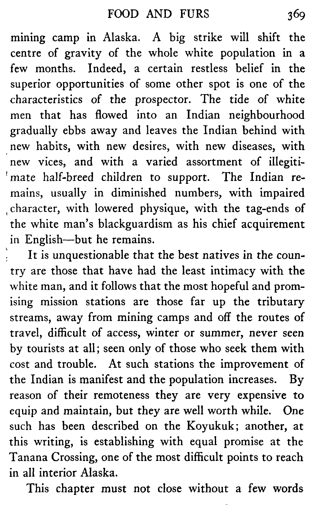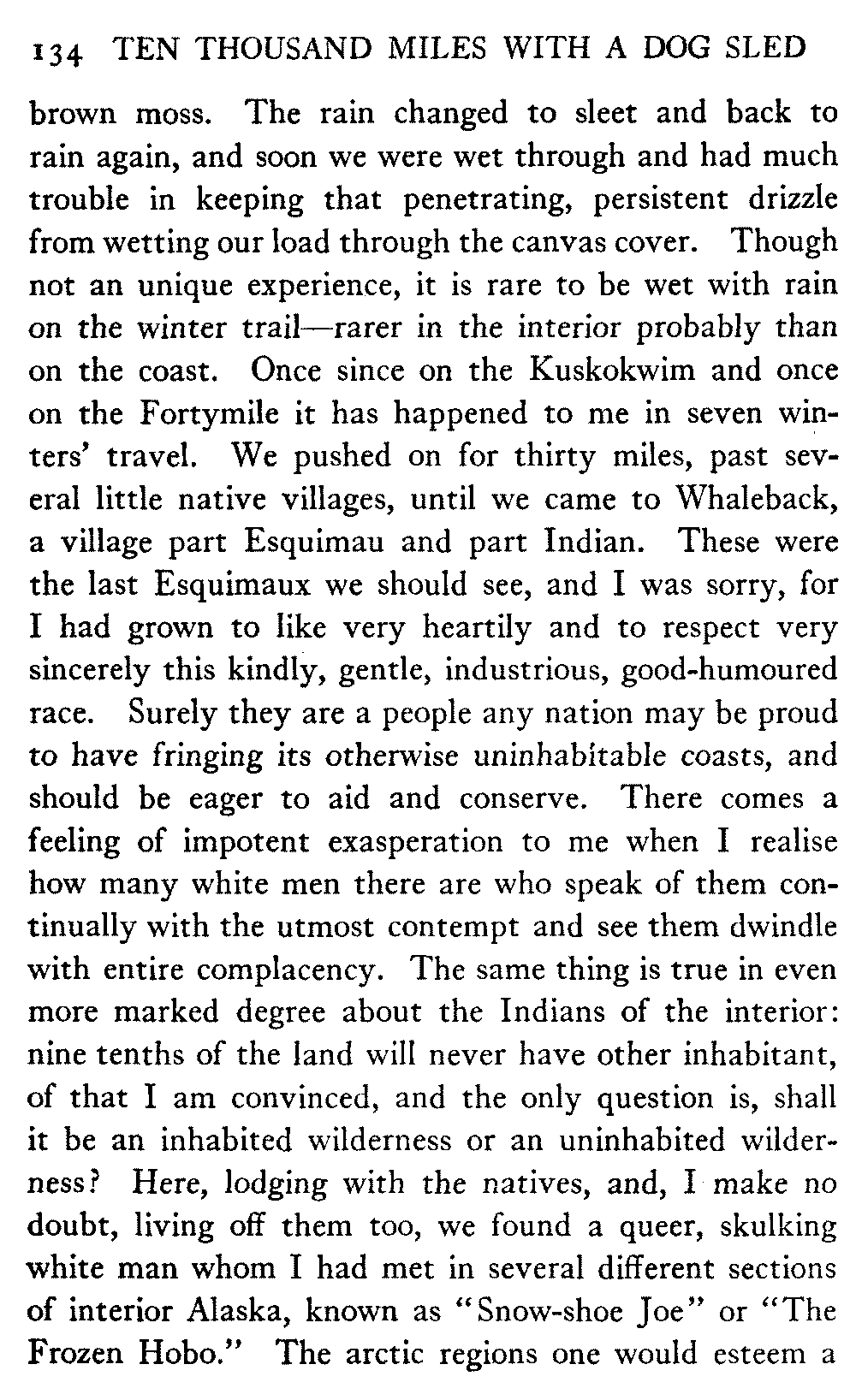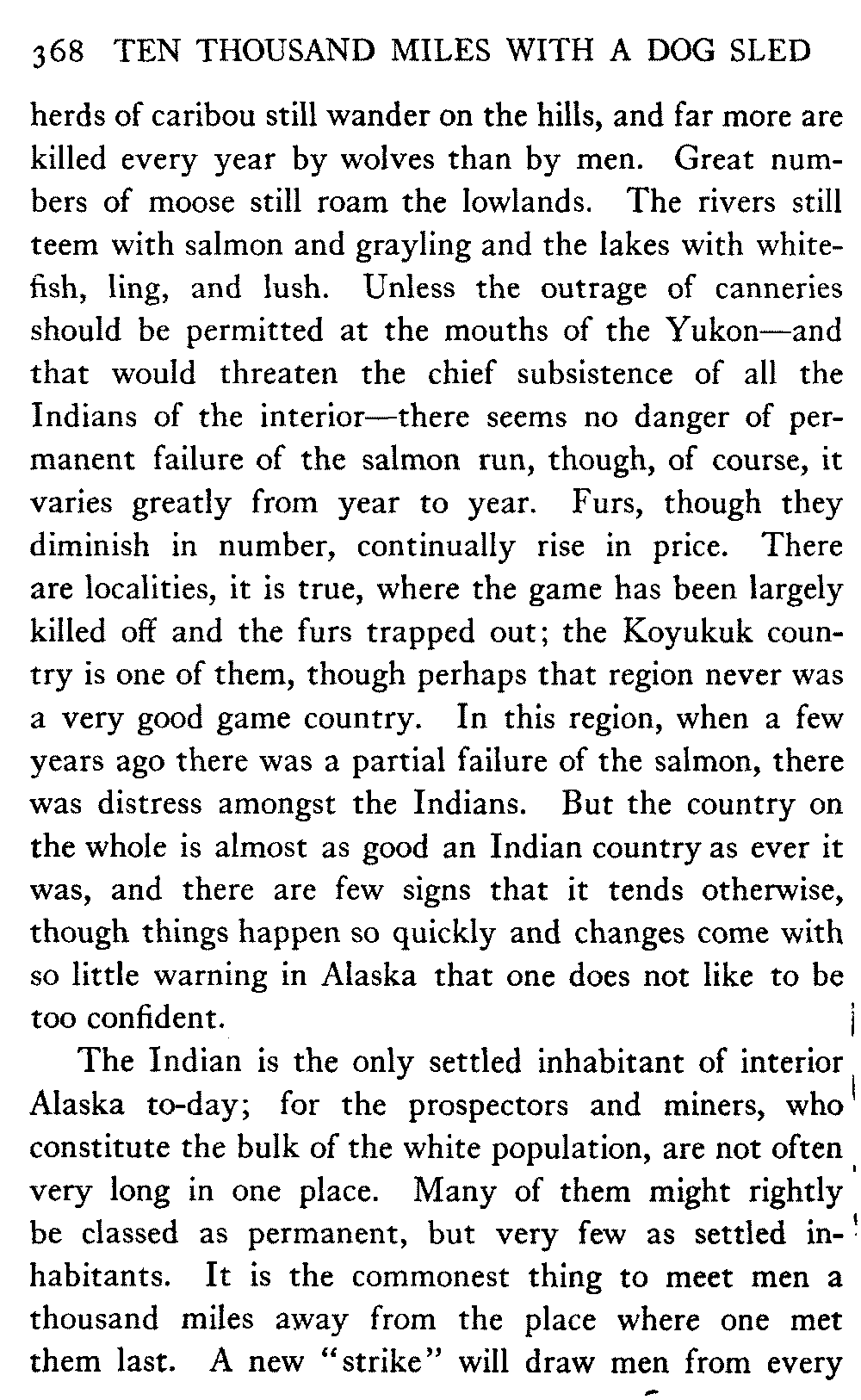 So this book goes forth with a plea in the front of it, which will find incidental support and expression throughout it, for the natives of interior Alaska, that they be not wantonly destroyed off the face of the earth.
