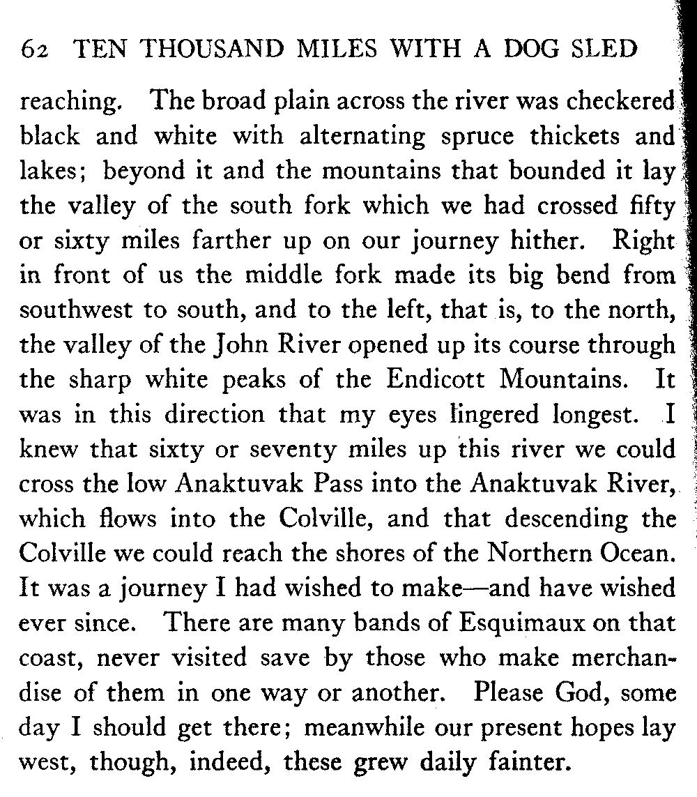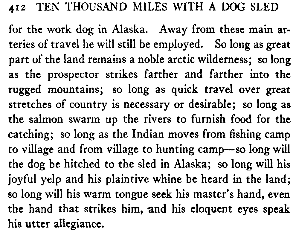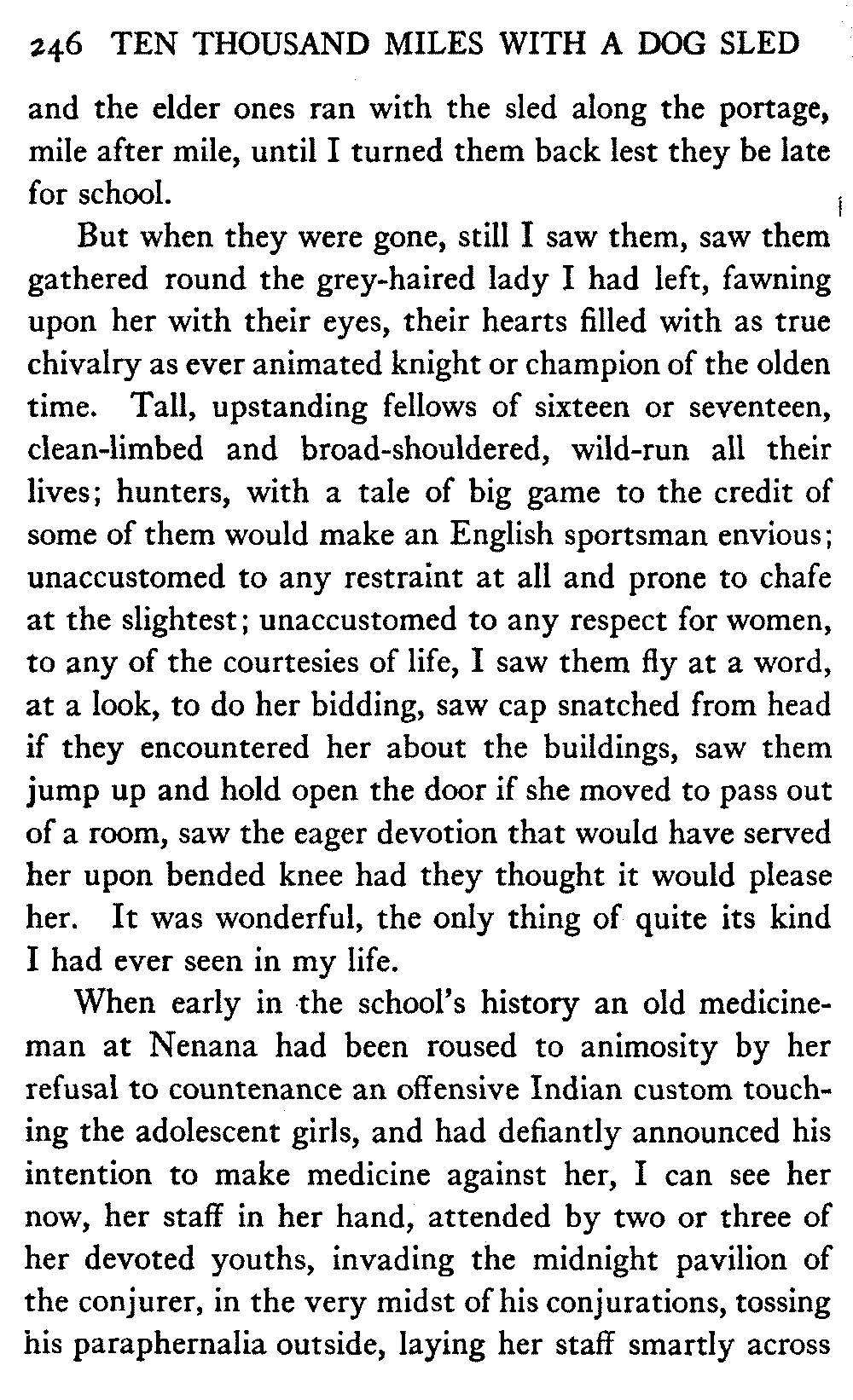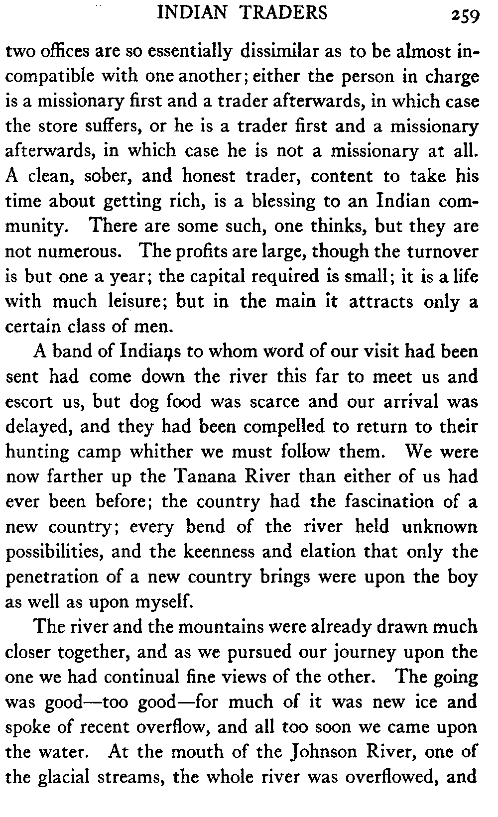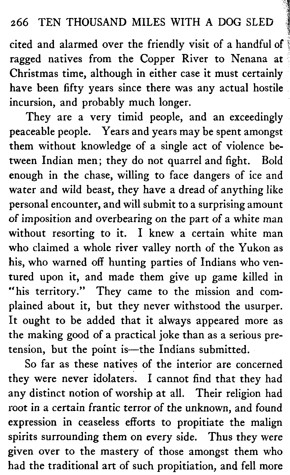 So this book goes forth with a plea in the front of it, which will find incidental support and expression throughout it, for the natives of interior Alaska, that they be not wantonly destroyed off the face of the earth.