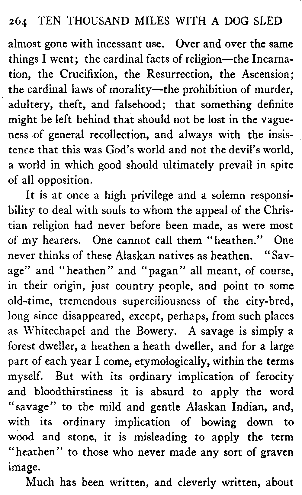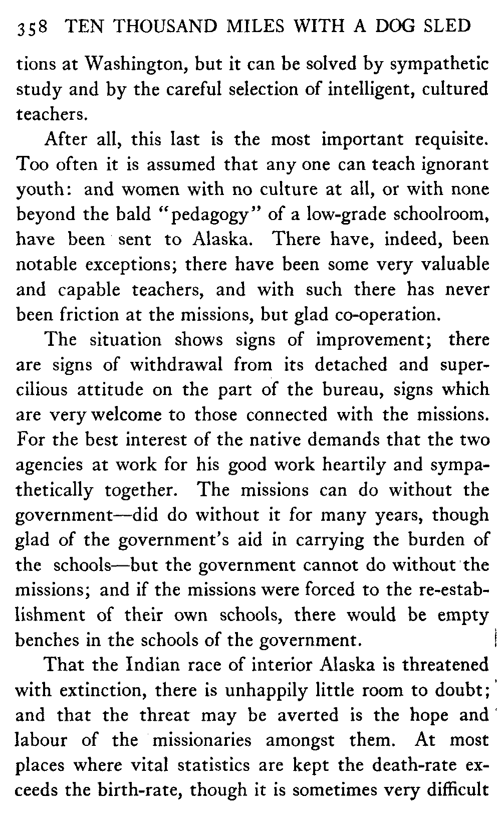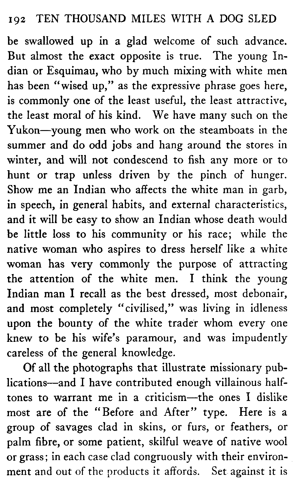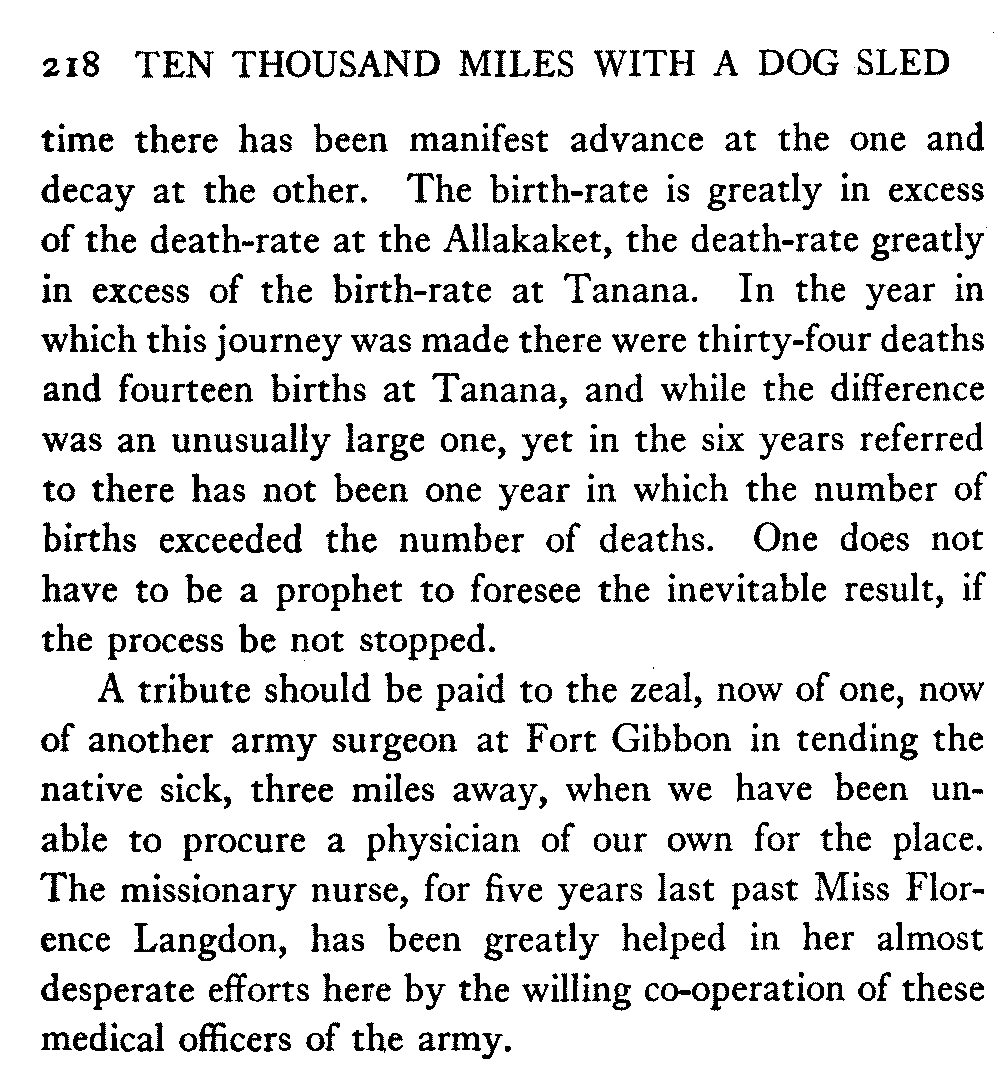 So this book goes forth with a plea in the front of it, which will find incidental support and expression throughout it, for the natives of interior Alaska, that they be not wantonly destroyed off the face of the earth.